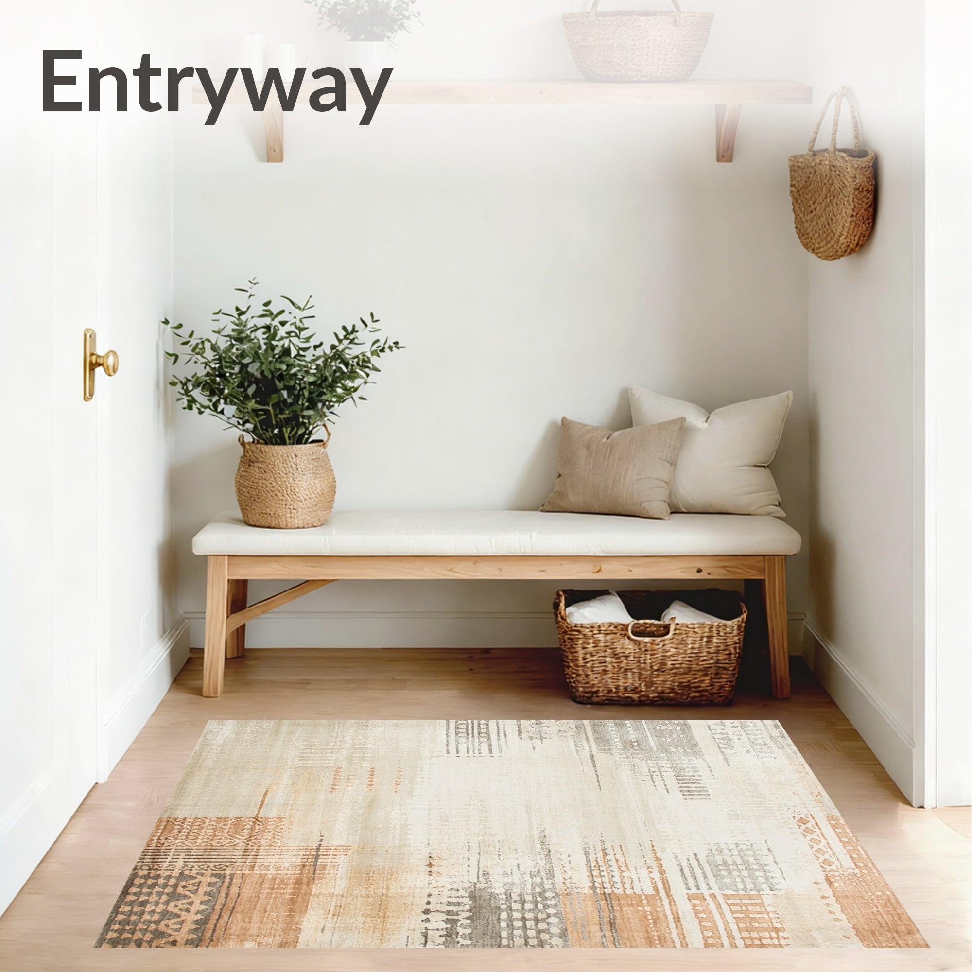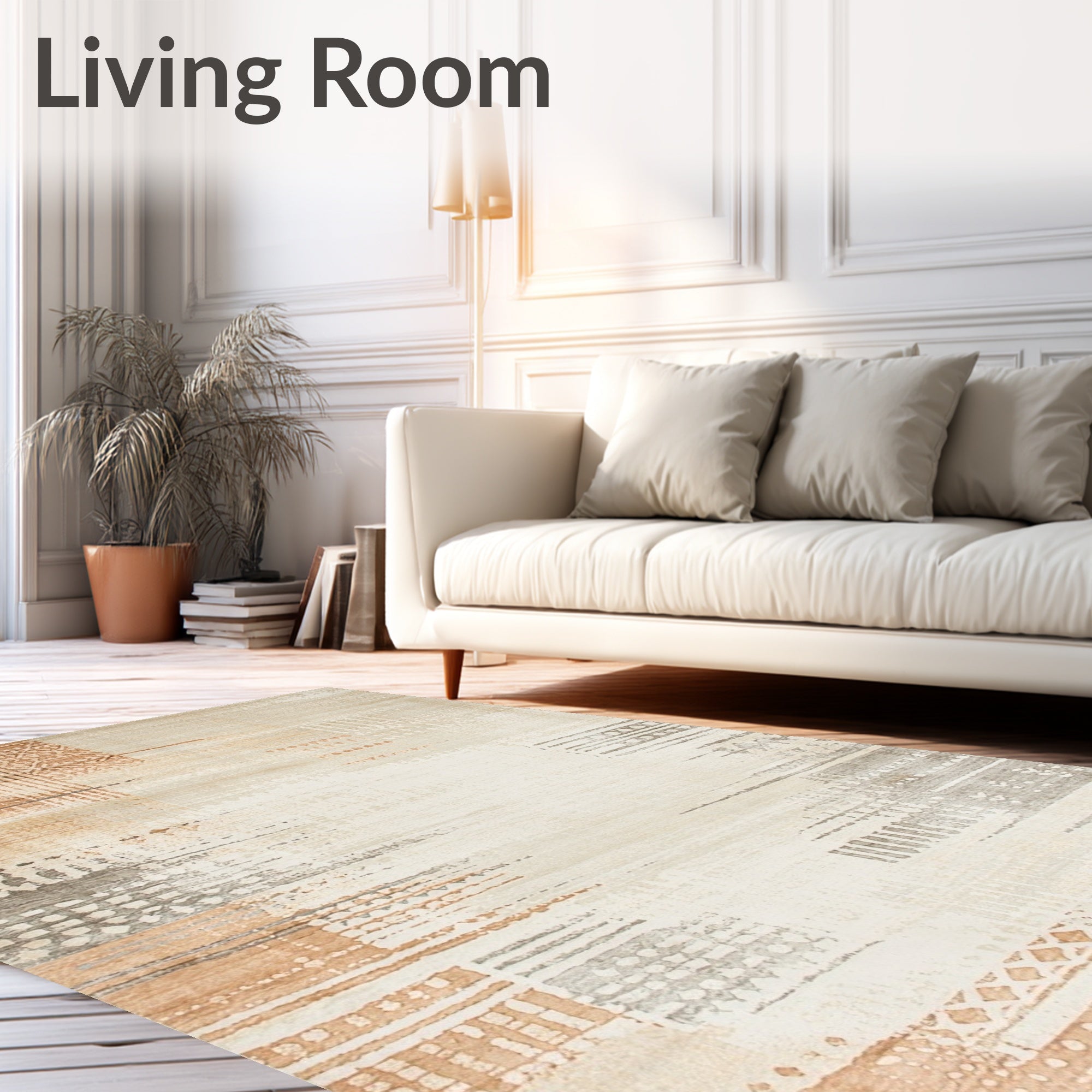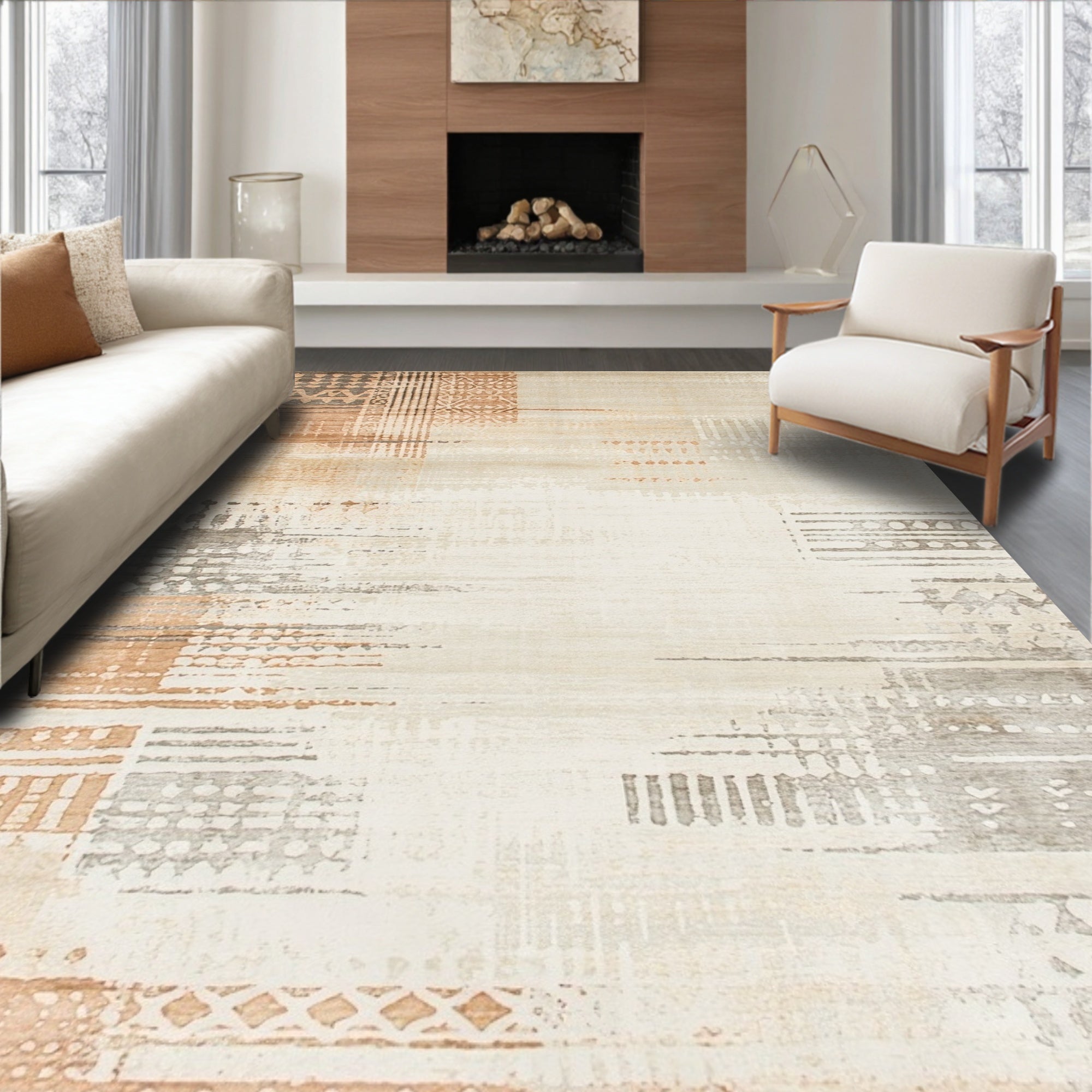 Ultra Soft Area Rug, Non Slip, Stain Resistant, Washable Area Rugs for Living Room, Bedroom, Elegant Distressed with Subtle Tribal Inspired Abstract Motifs(Beige) Overview: