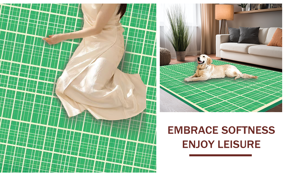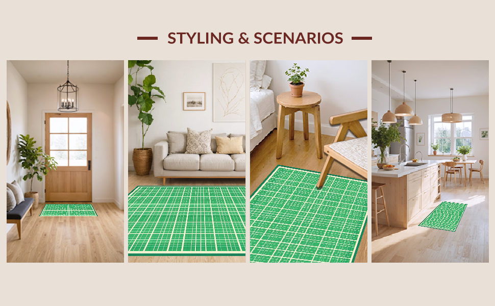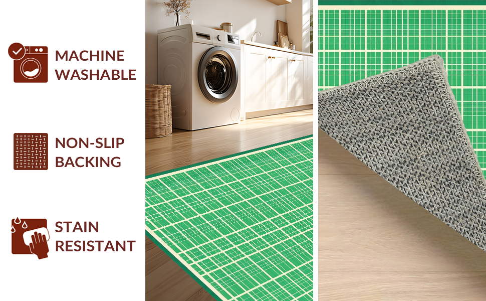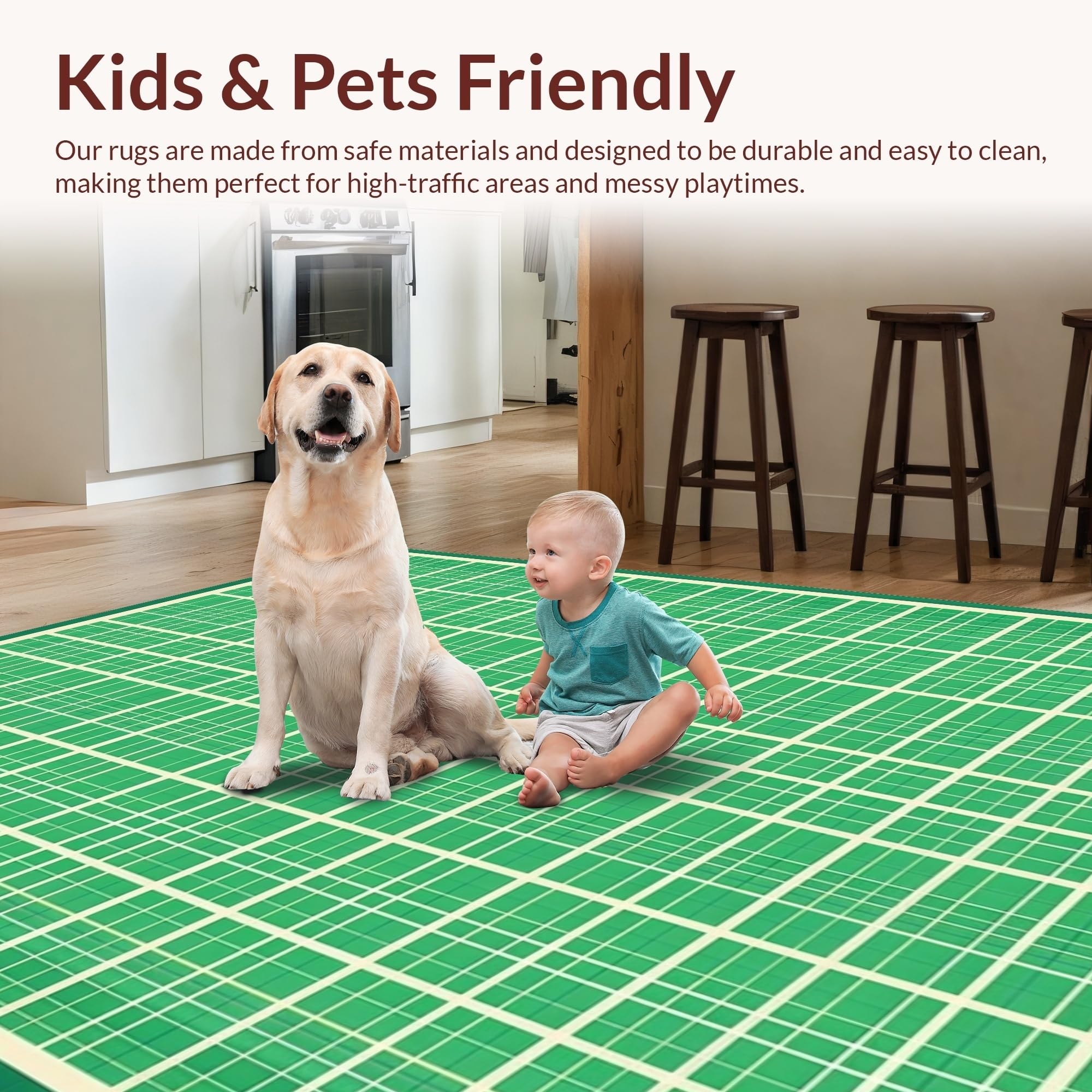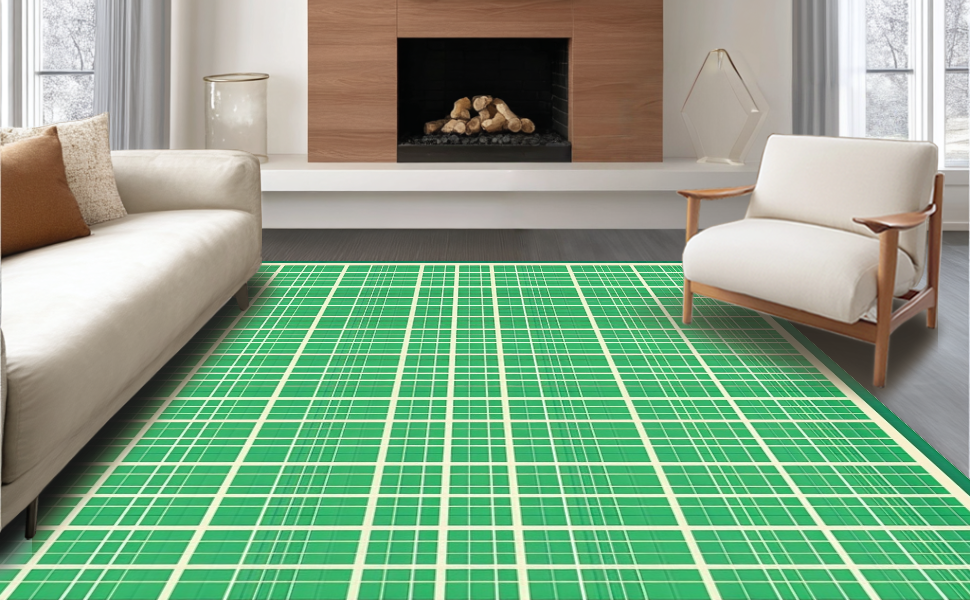 Ultra Soft Area Rug, Non Slip, Stain Resistant, Washable Area Rugs for Living Room, Bedroom, Elegant Dominique Green Tiled Motif(Green) Overview: