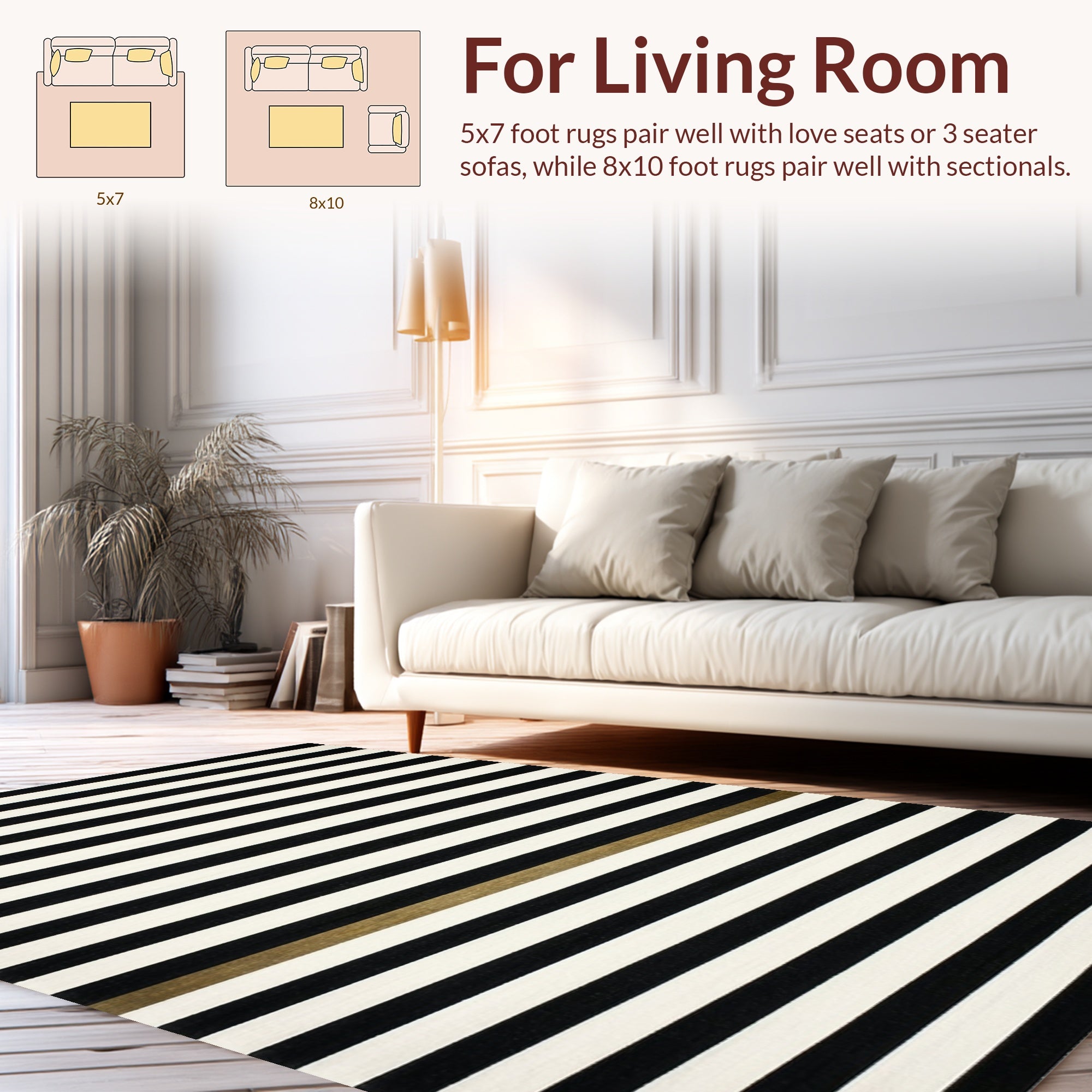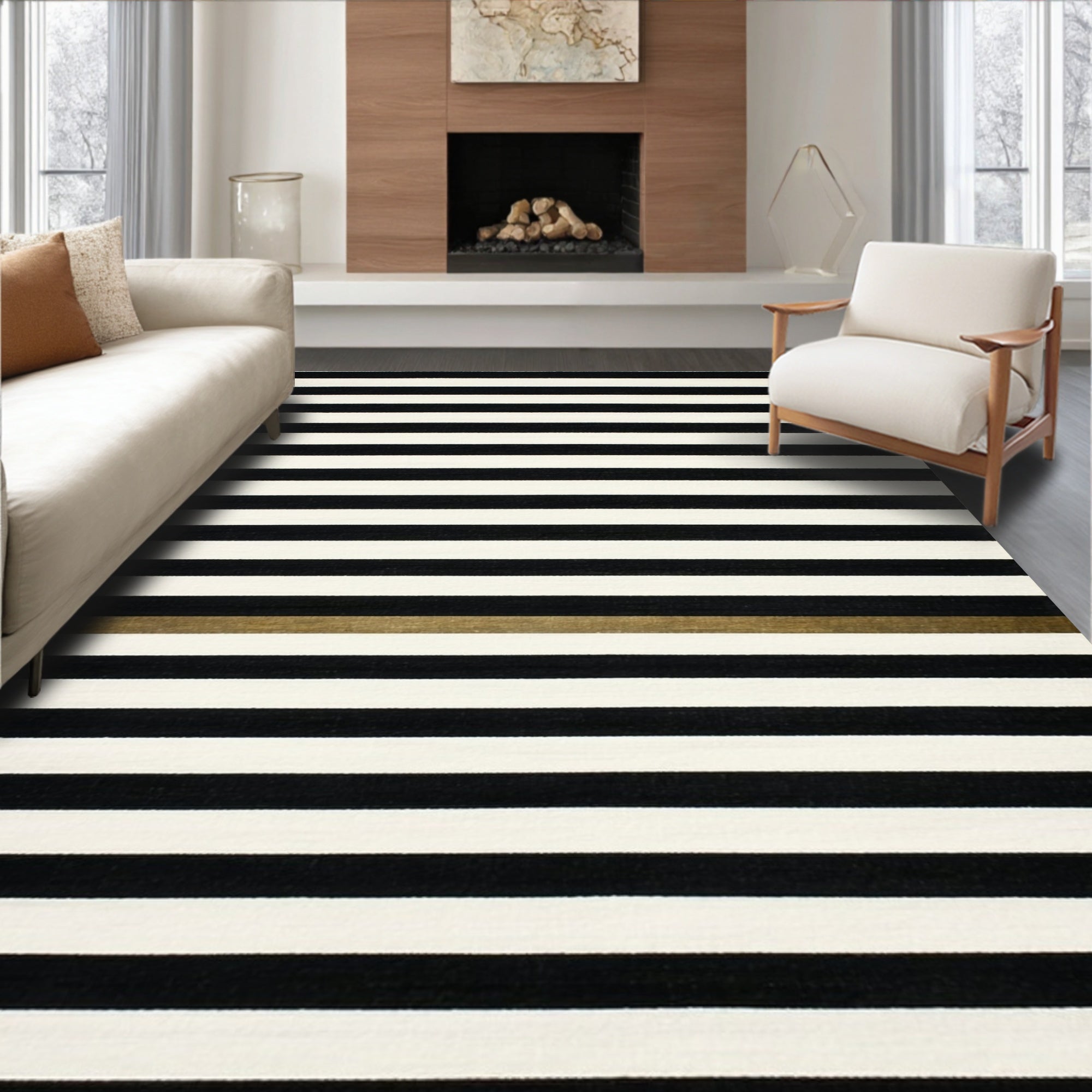 Ultra Soft Area Rug, Non Slip, Stain Resistant, Washable Area Rugs for Living Room, Bedroom, Elegant Dual Tone Horizontal Line Pattern Home Decor Textile Floor Covering(Black) Overview:
