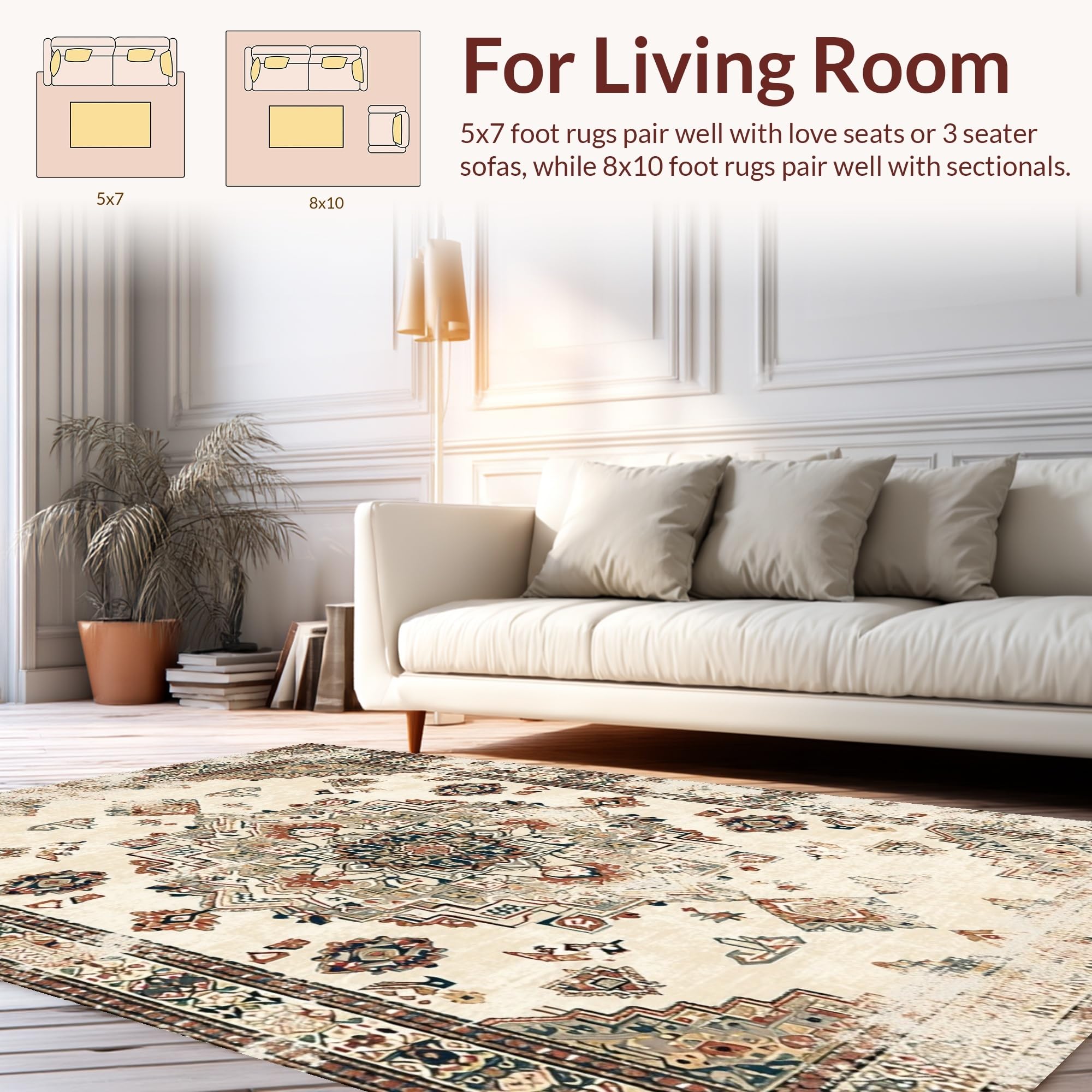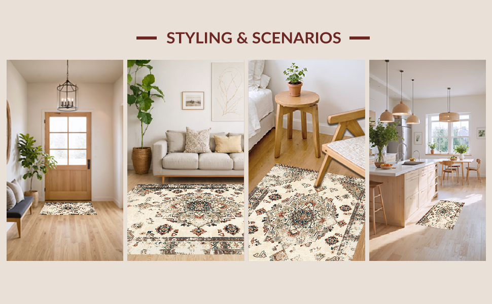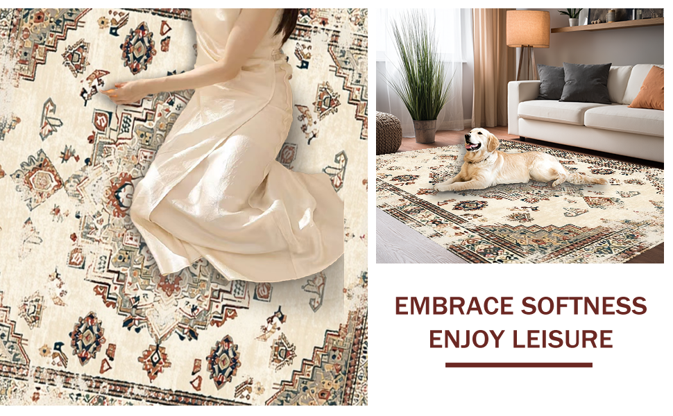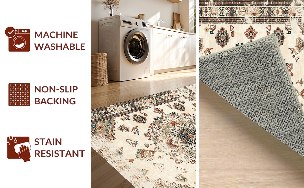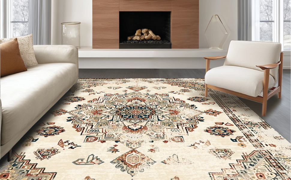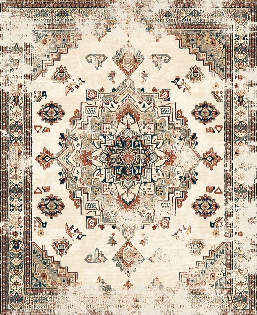 Ultra Soft Area Rug, Non Slip, Stain Resistant, Washable Area Rugs for Living Room, Bedroom, Elegant Earth Tone Distressed Motif(Beige) Overview: