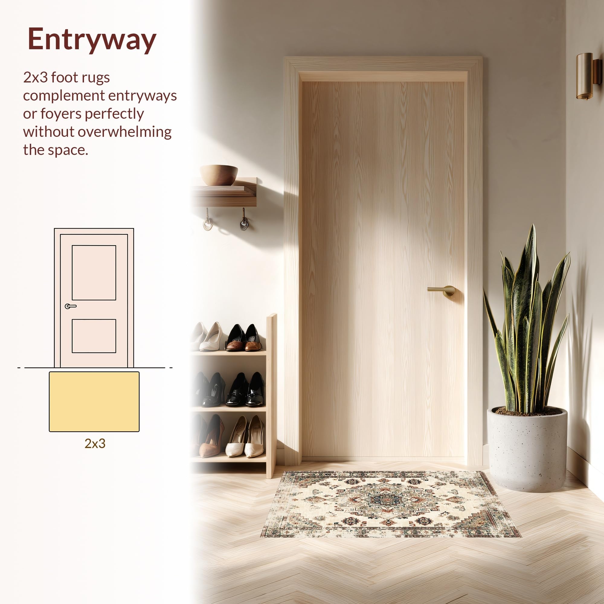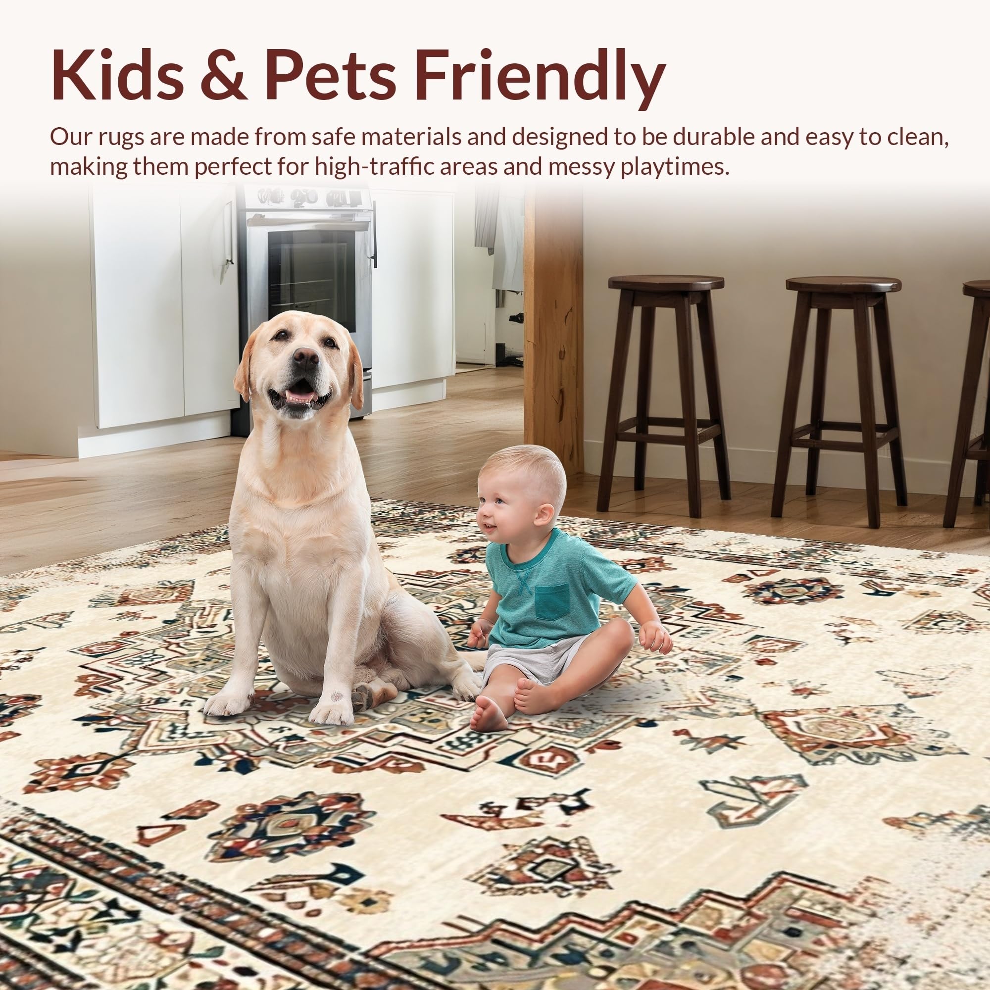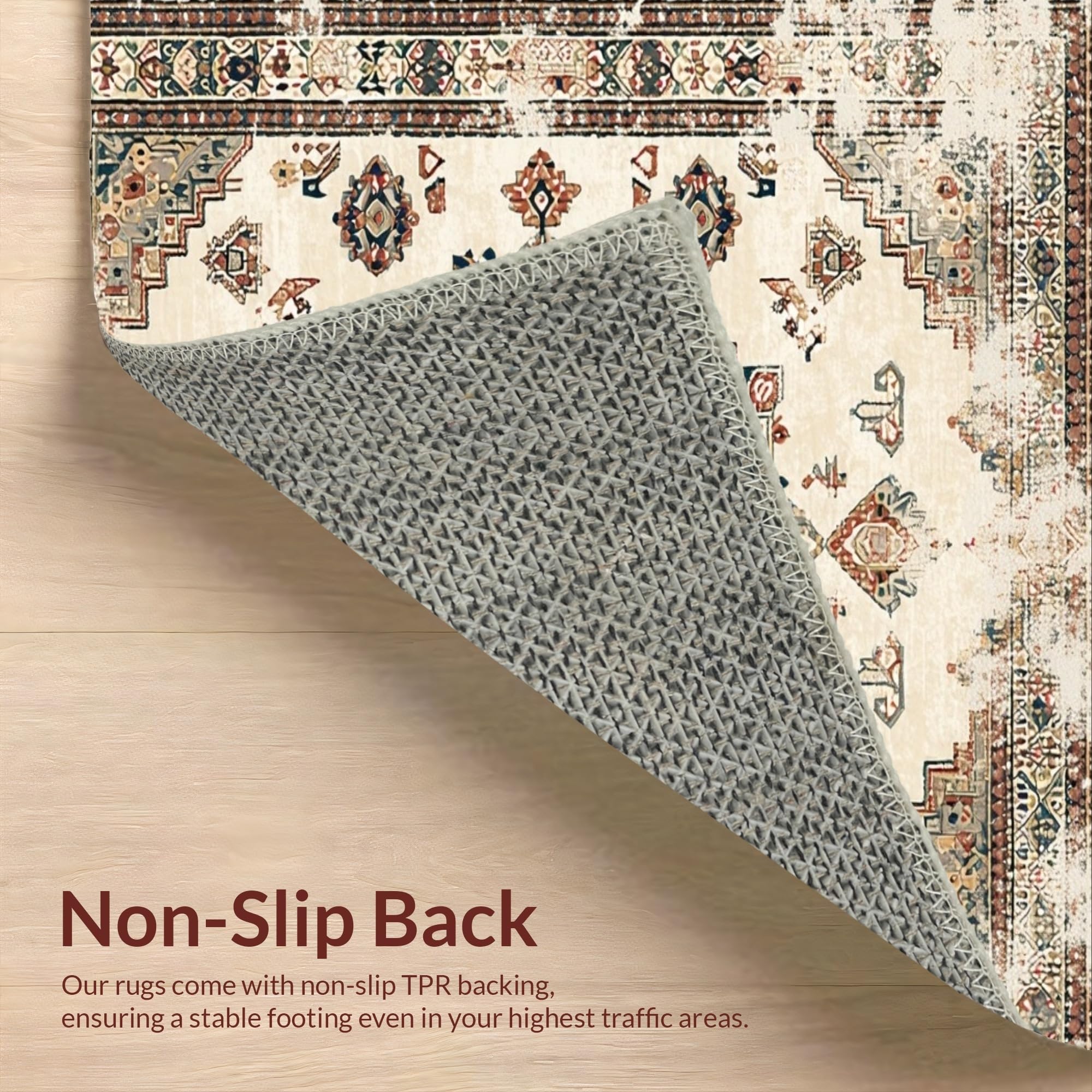Ultra Soft Area Rug, Non Slip, Stain Resistant, Washable Area Rugs for Living Room, Bedroom, Elegant Earth Tone Distressed Motif(Beige) Overview: