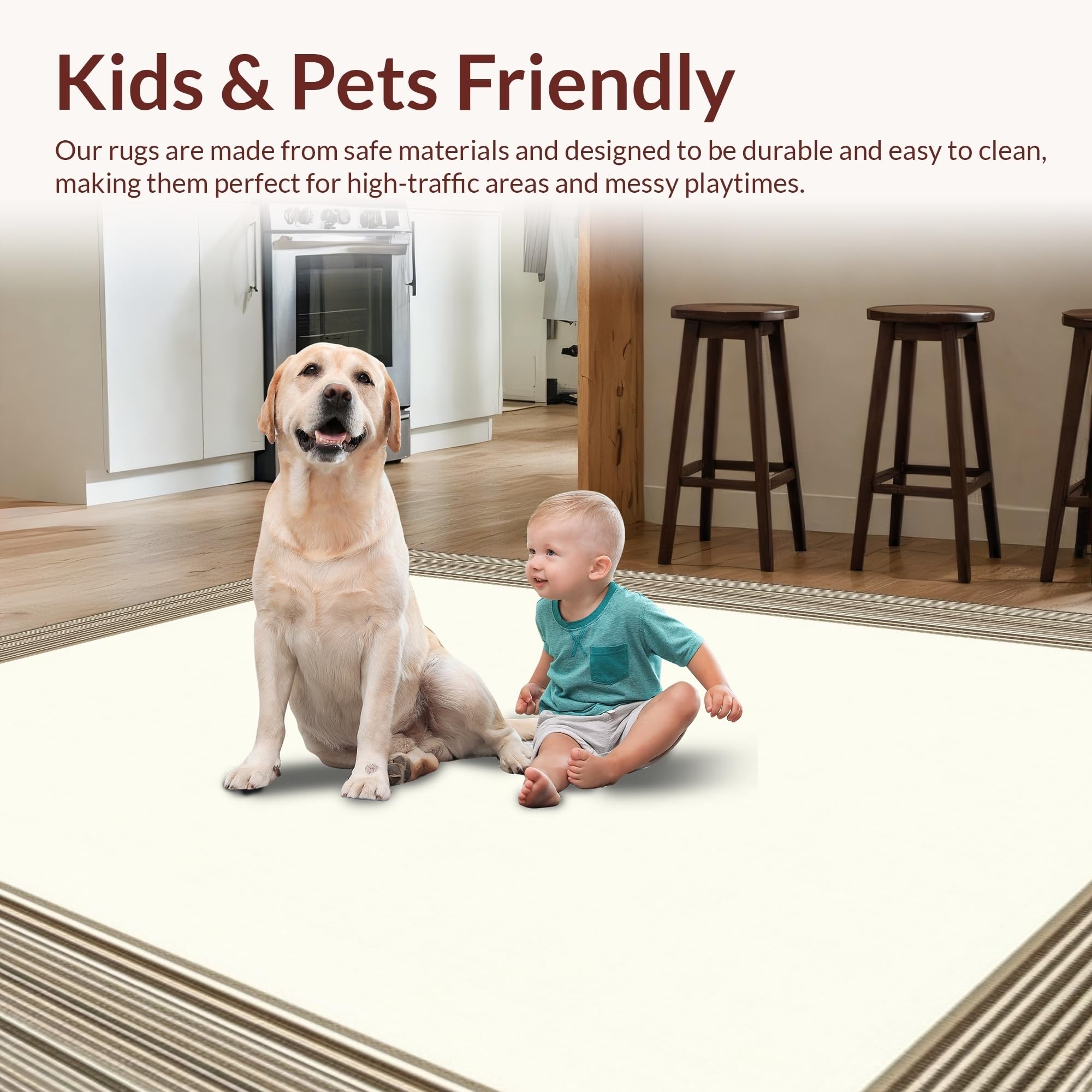 Ultra Soft Area Rug, Non Slip, Stain Resistant, Washable Area Rugs for Living Room, Bedroom, Elegant Earth Tone Round Design(Beige) Overview: