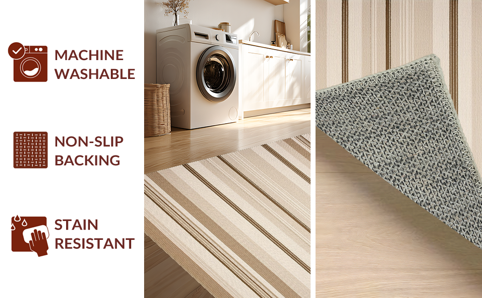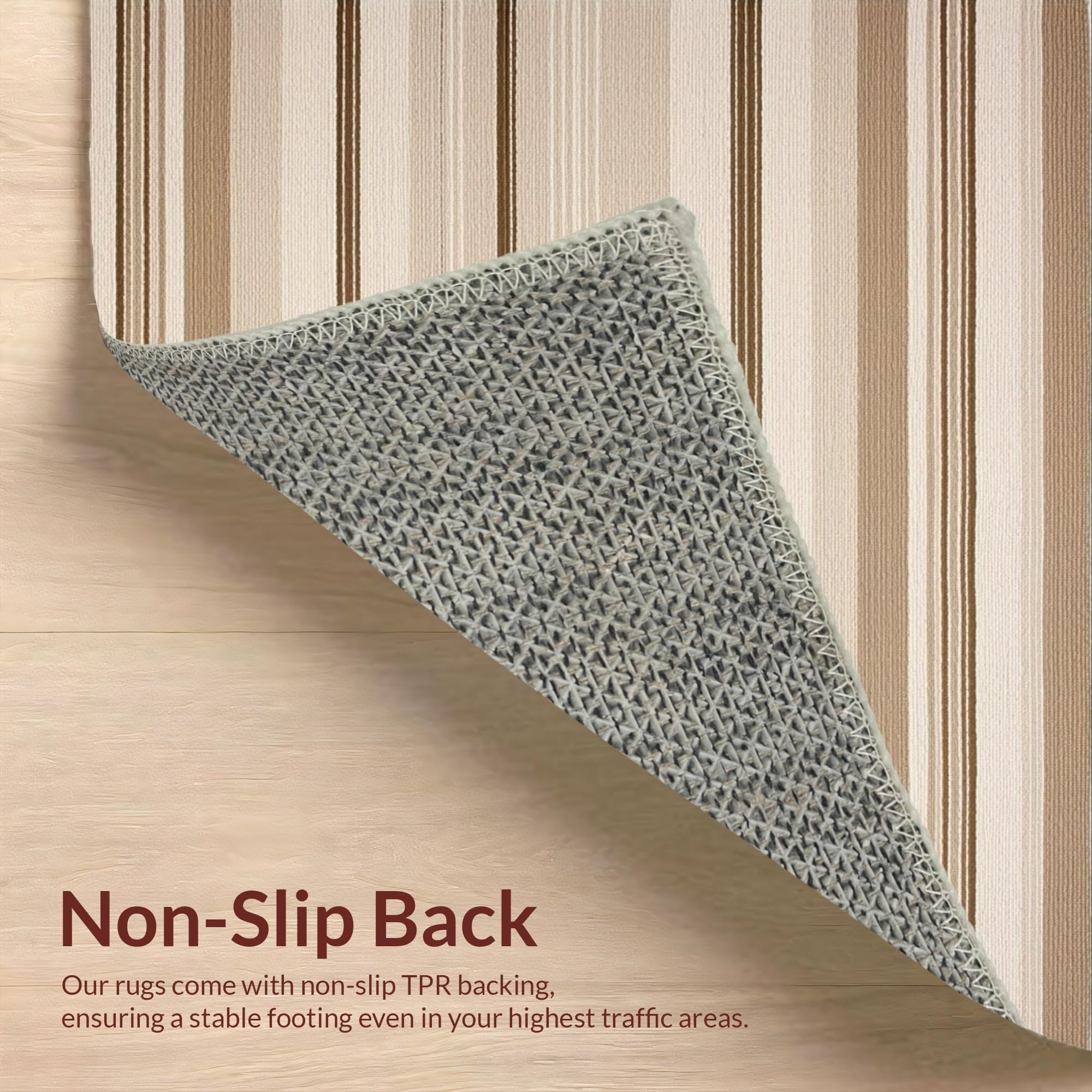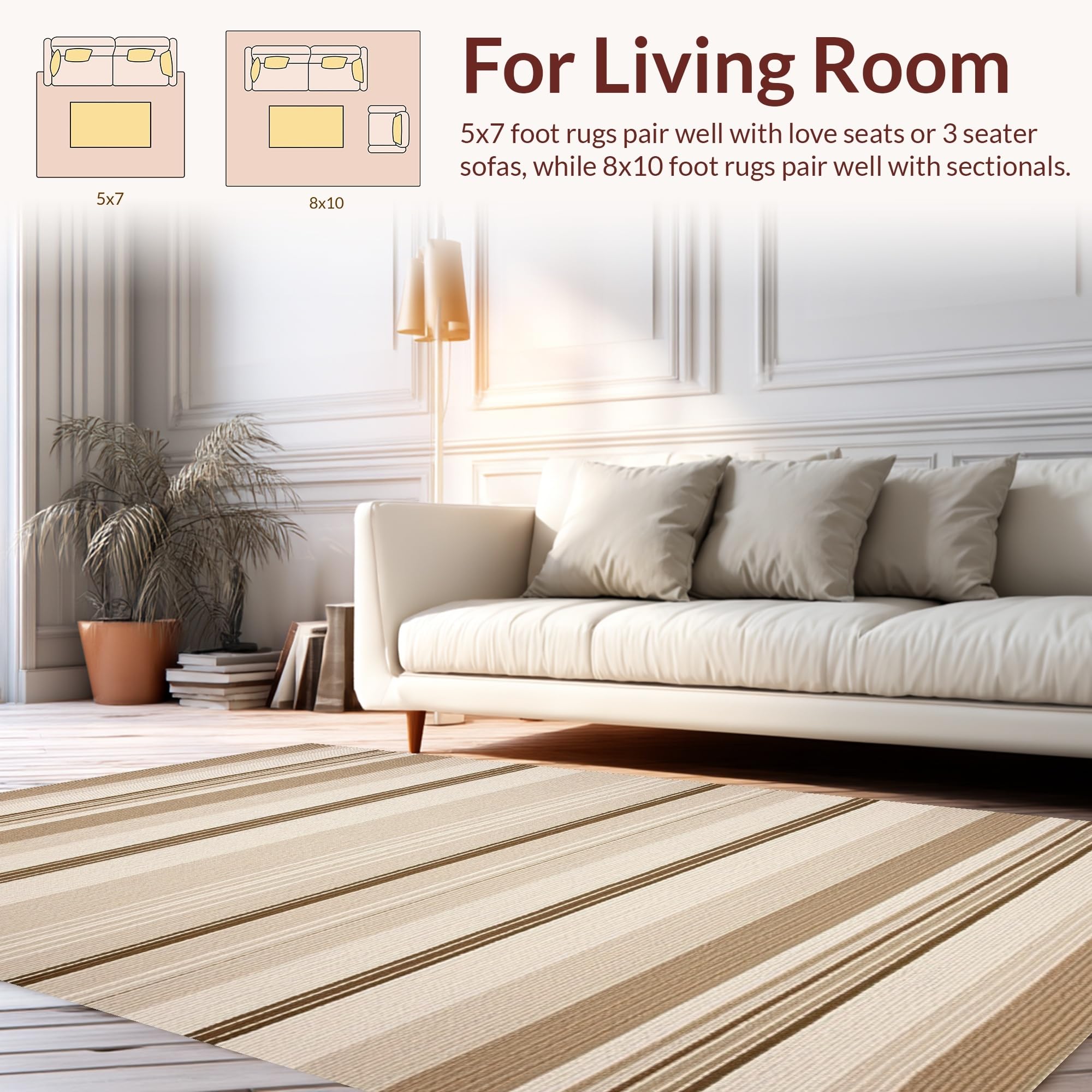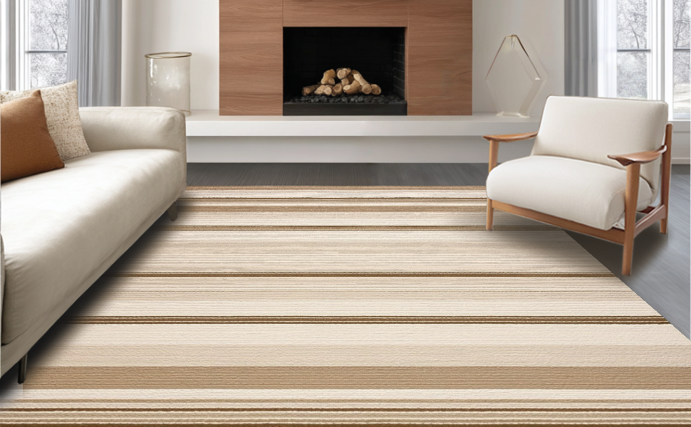 Ultra Soft Area Rug, Non Slip, Stain Resistant, Washable Area Rugs for Living Room, Bedroom, Elegant Earth Tone Stripes(Beige) Overview: