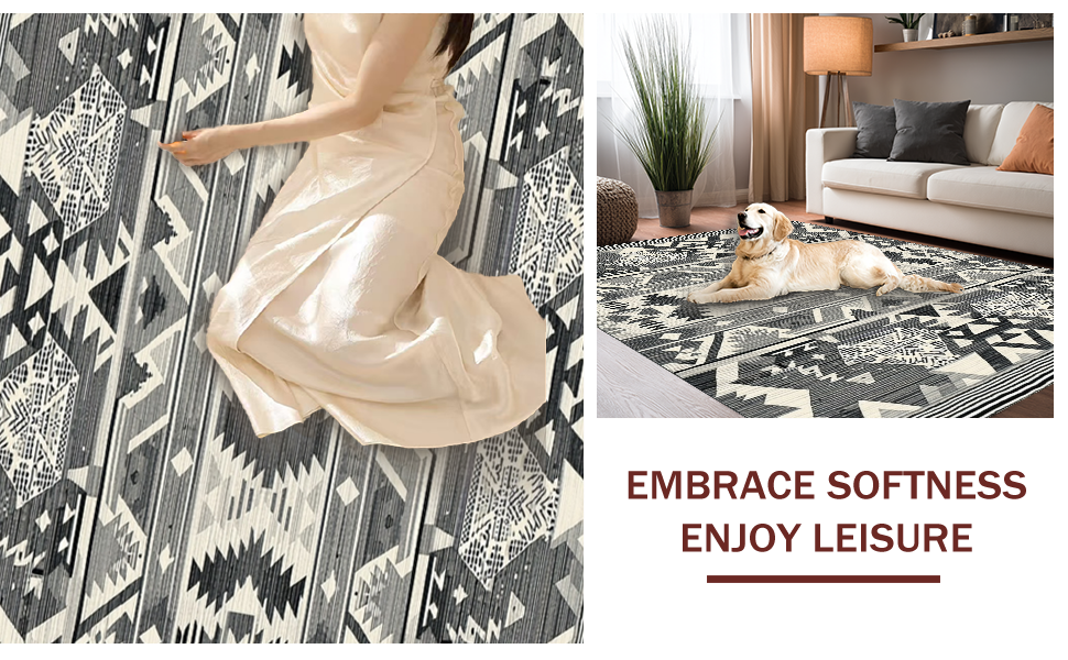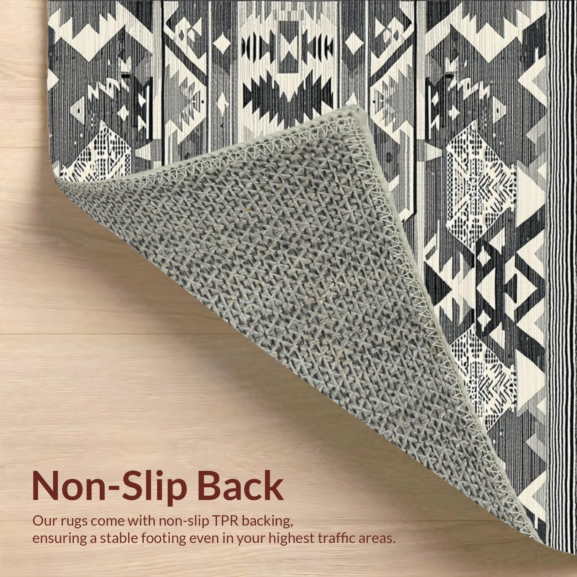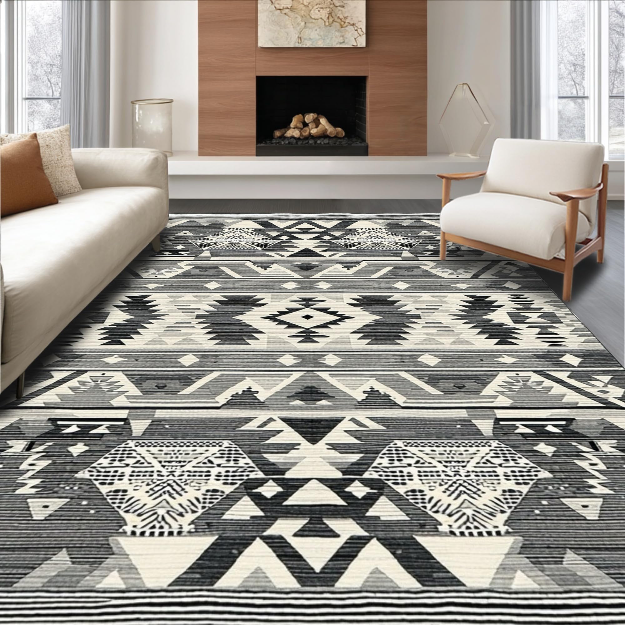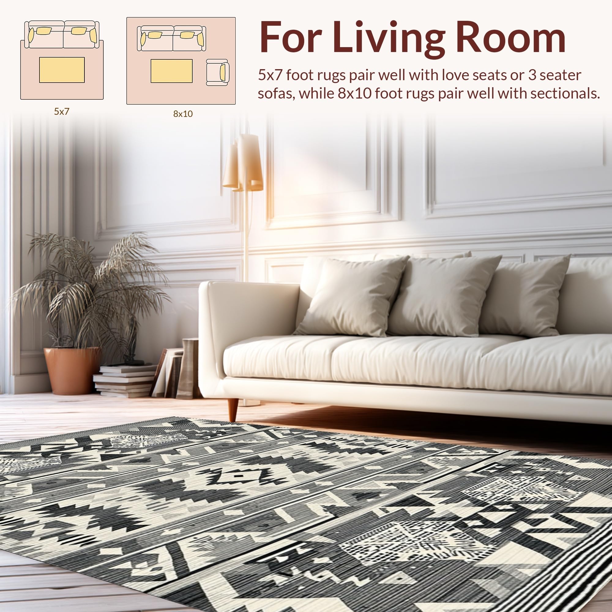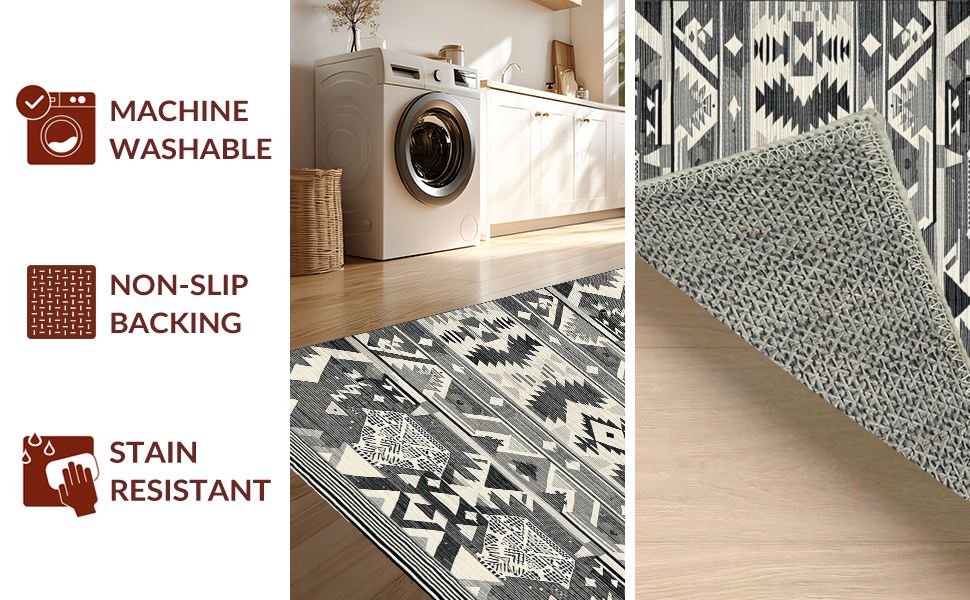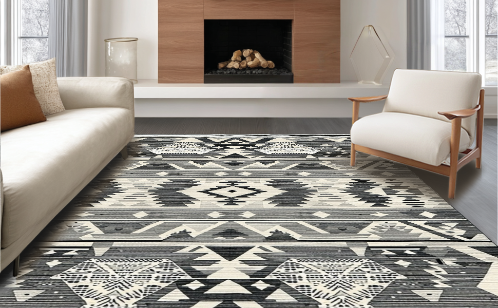 Ultra Soft Area Rug, Non Slip, Stain Resistant, Washable Area Rugs for Living Room, Bedroom, Elegant Earth Toned Geometric Features(Black) Overview: