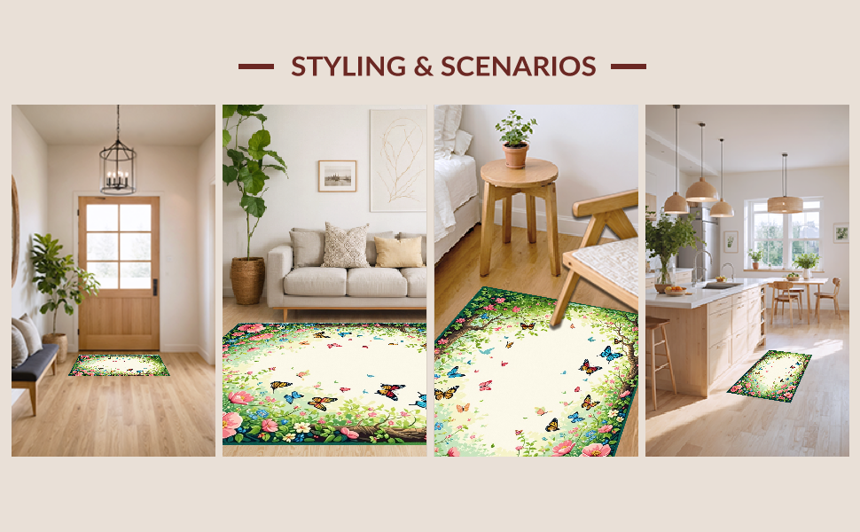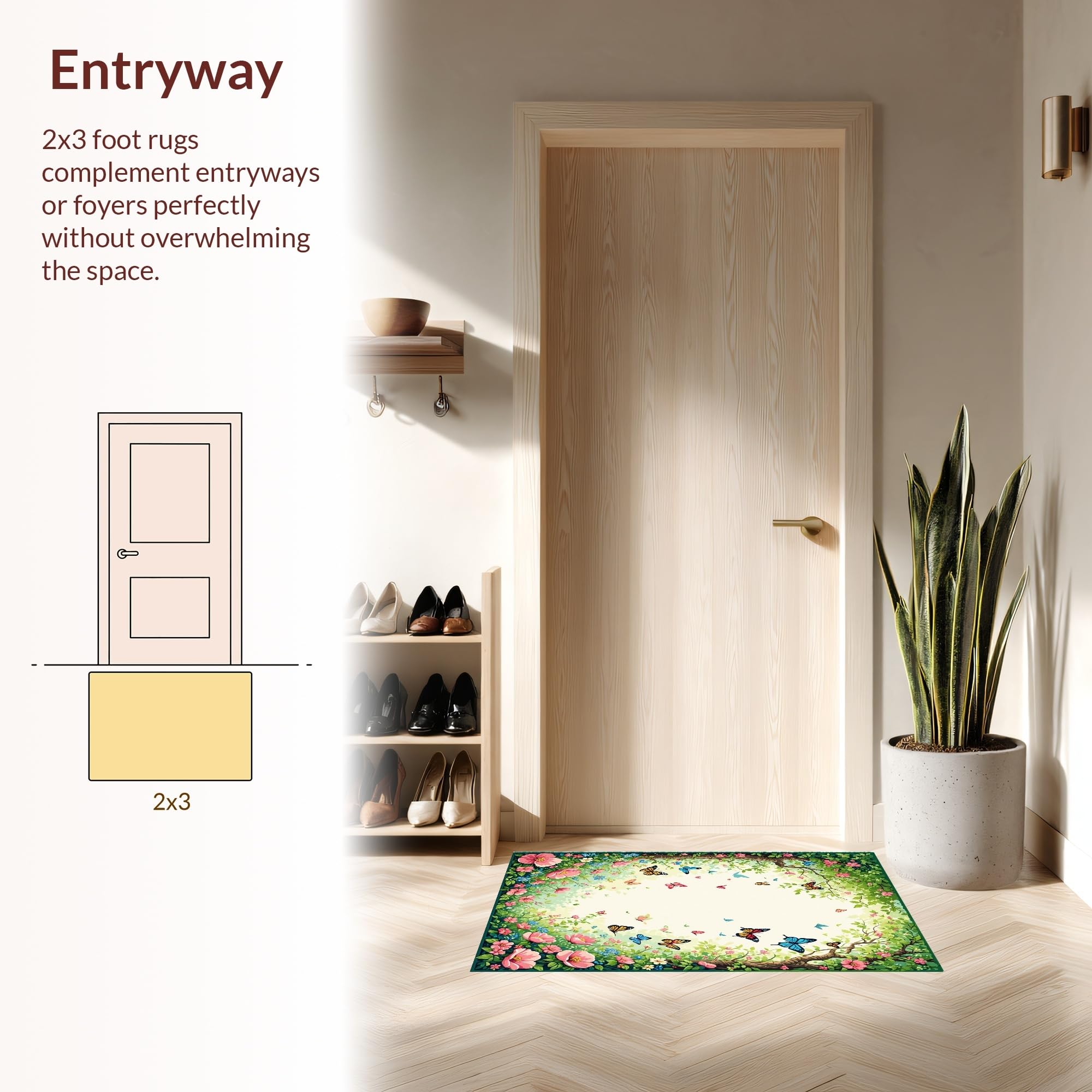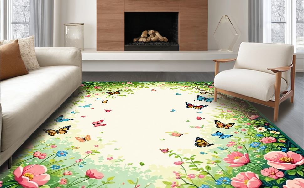 Ultra Soft Area Rug, Non Slip, Stain Resistant, Washable Area Rugs for Living Room, Bedroom, Elegant Earthy Blooming Pattern(Green) Overview: