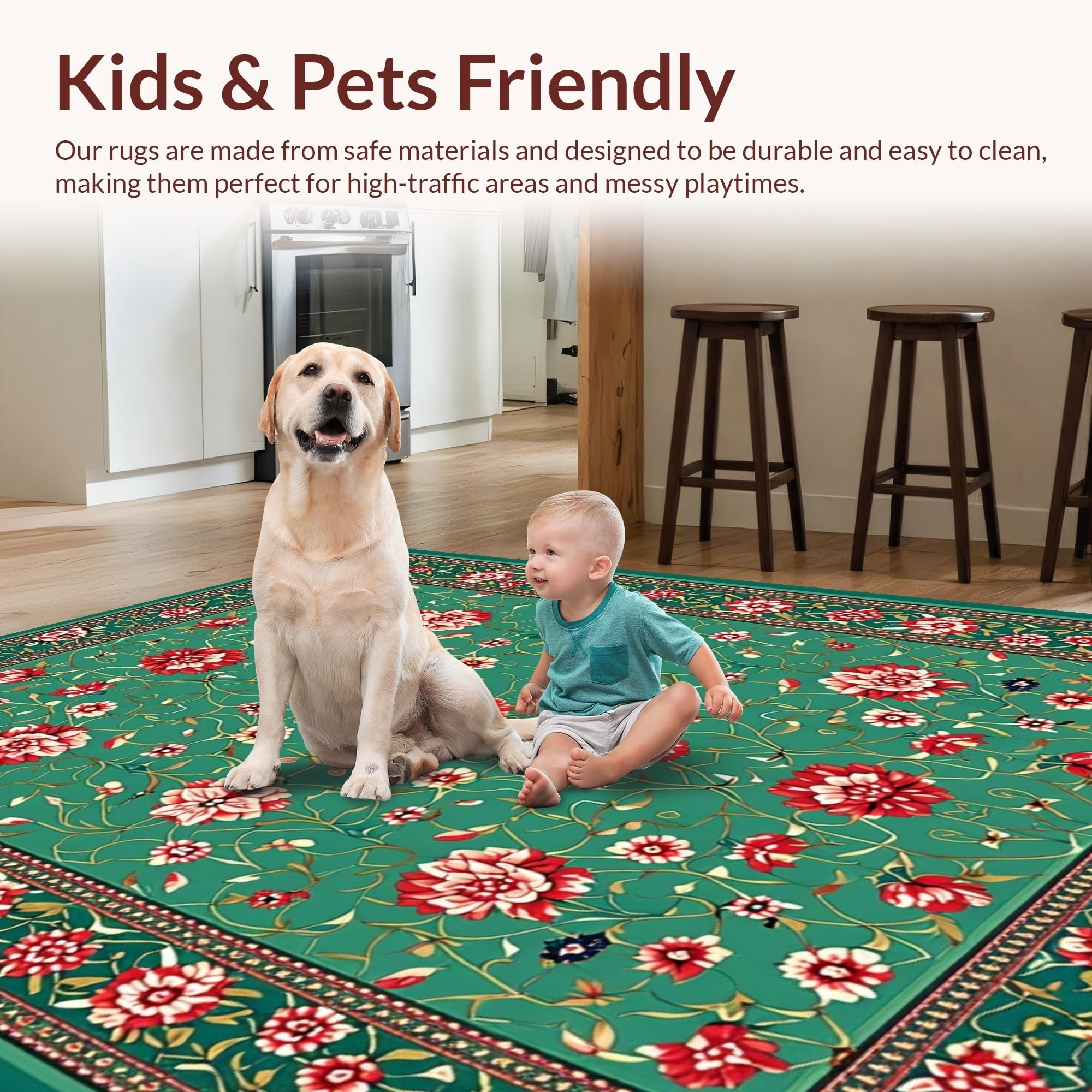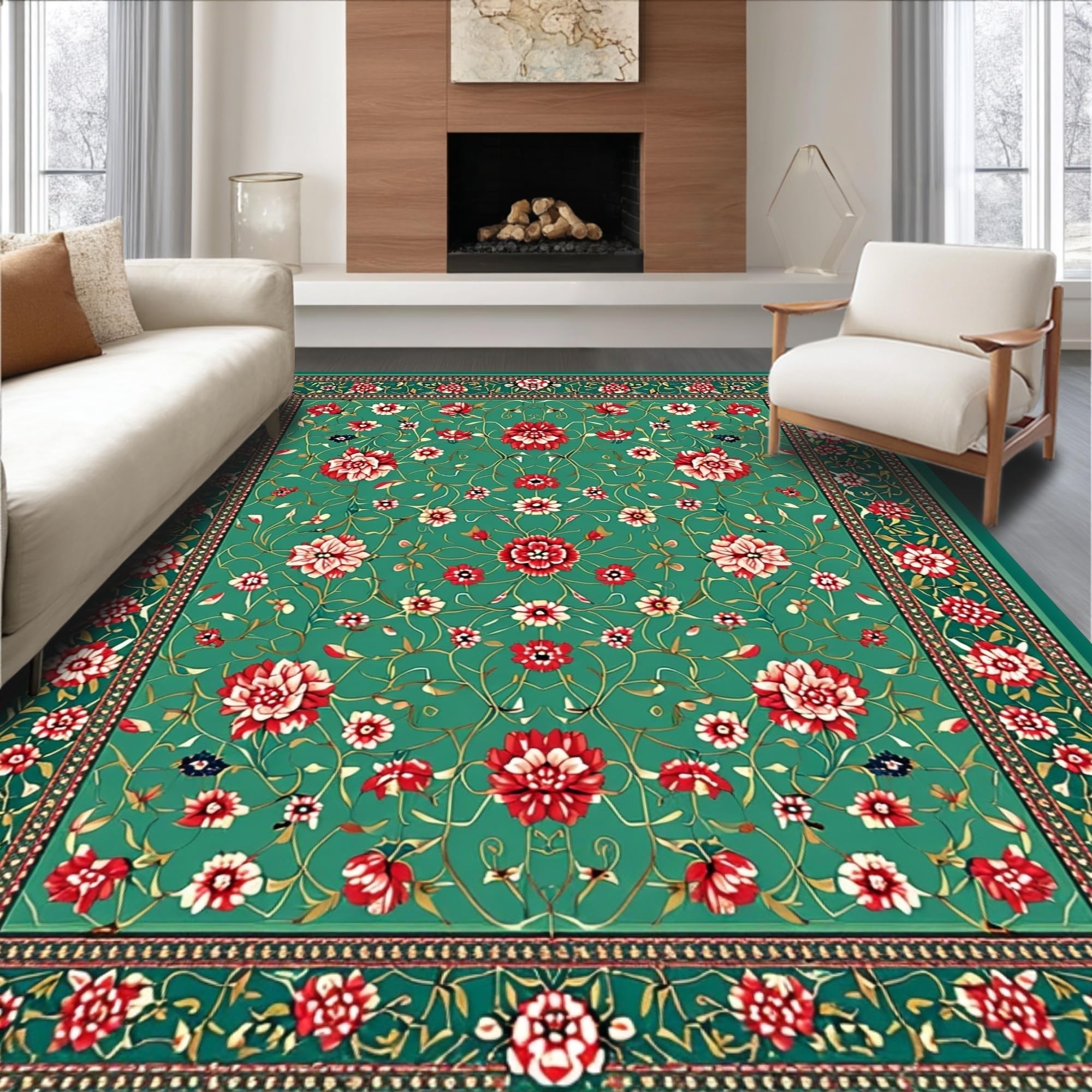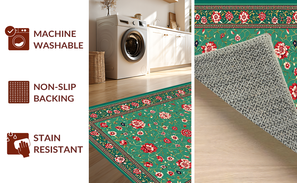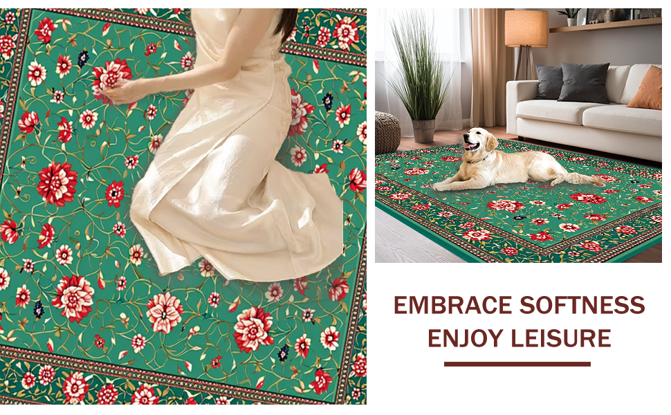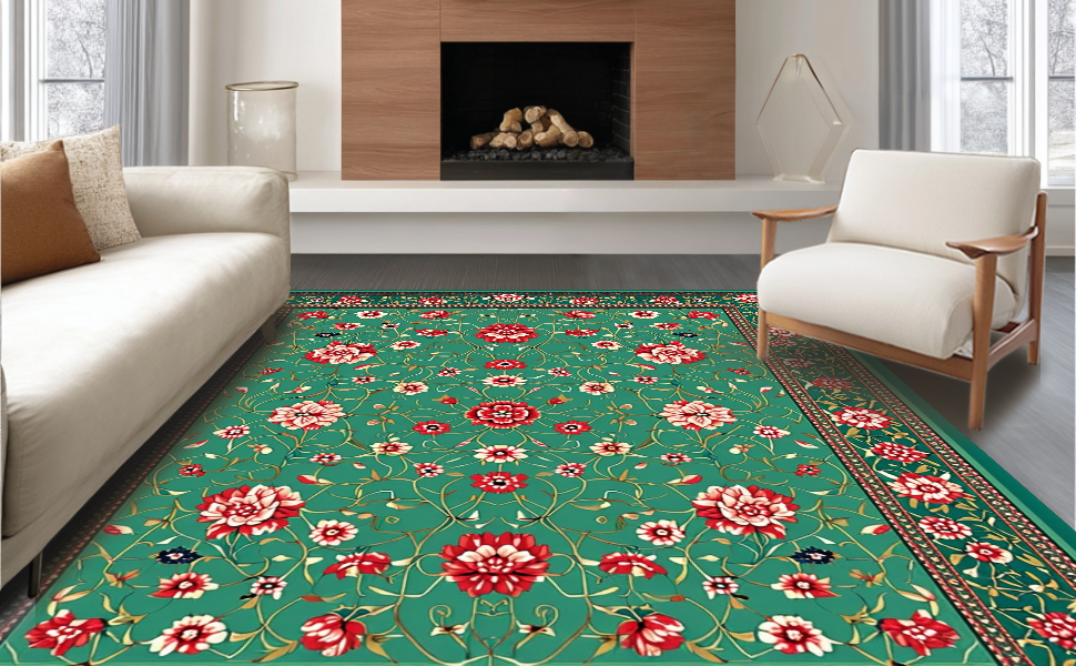 Ultra Soft Area Rug, Non Slip, Stain Resistant, Washable Area Rugs for Living Room, Bedroom, Elegant Earthy Botanical Aesthetic(Green) Overview: