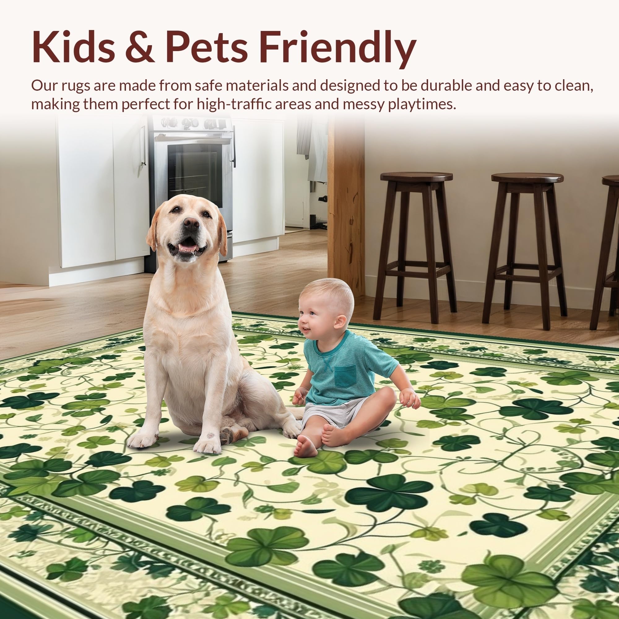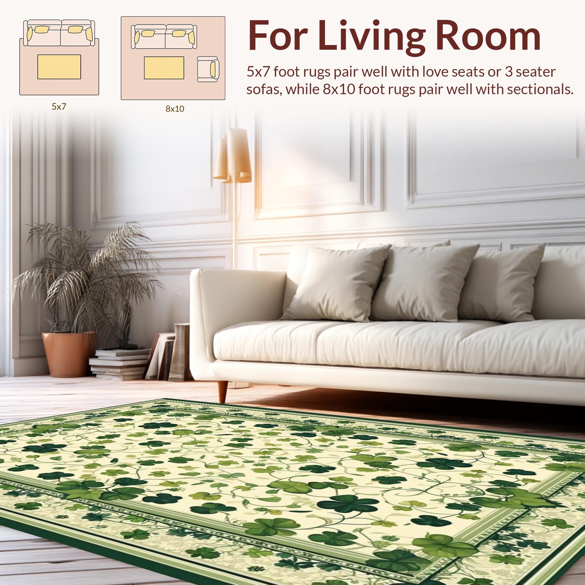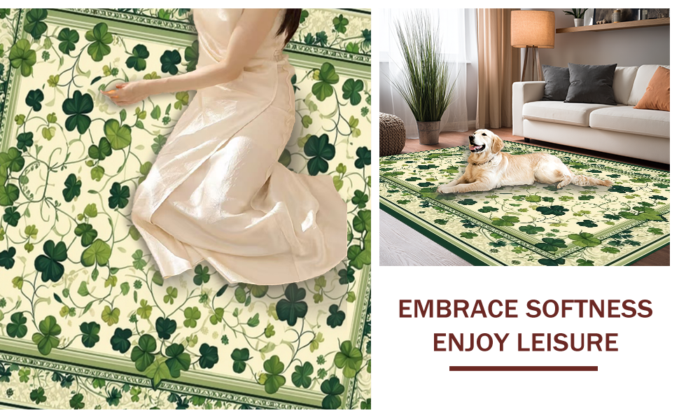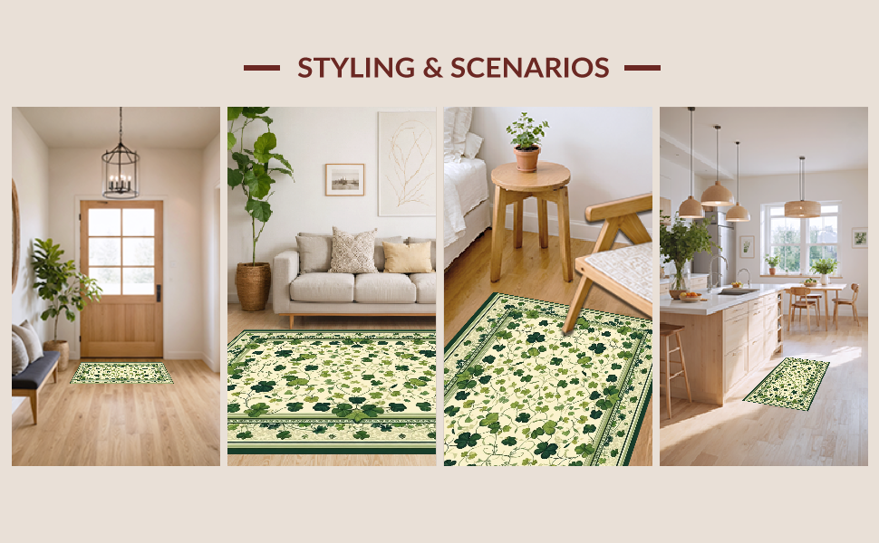 Ultra Soft Area Rug, Non Slip, Stain Resistant, Washable Area Rugs for Living Room, Bedroom, Elegant Earthy Botanical Design(Green) Overview: