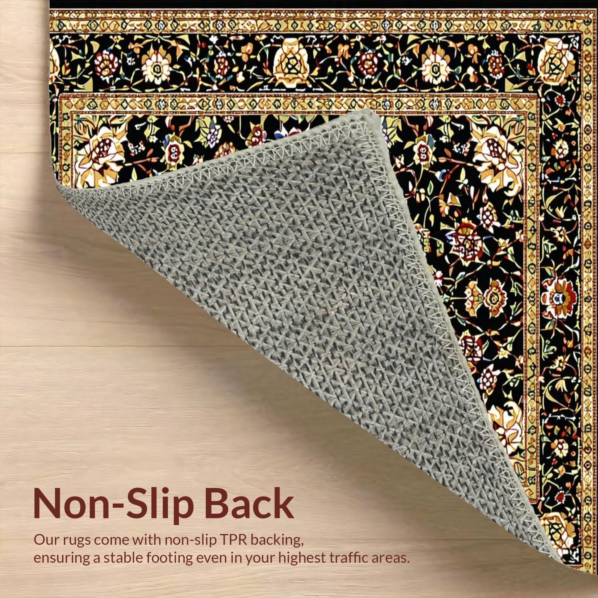 Ultra Soft Area Rug, Non Slip, Stain Resistant, Washable Area Rugs for Living Room, Bedroom, Elegant Earthy Botanical Motif(Black) Overview: