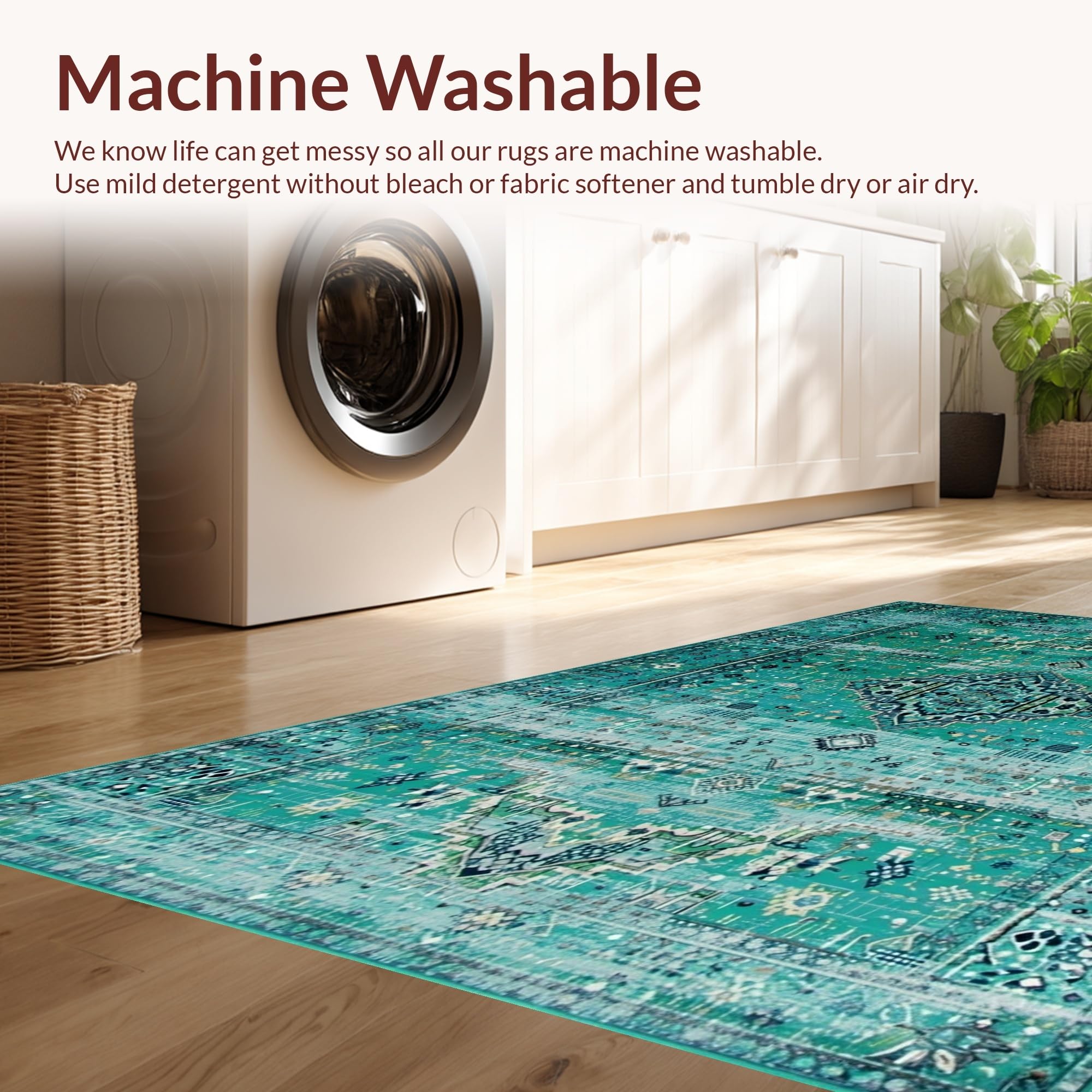 - Machine Washable: Our rugs can be easily thrown in the wash machine.