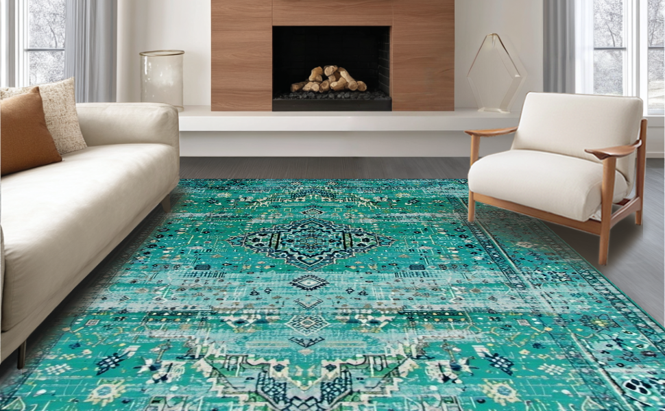 Ultra Soft Area Rug, Non Slip, Stain Resistant, Washable Area Rugs for Living Room, Bedroom, Elegant Earthy Circular Tapestry(Blue) Overview: