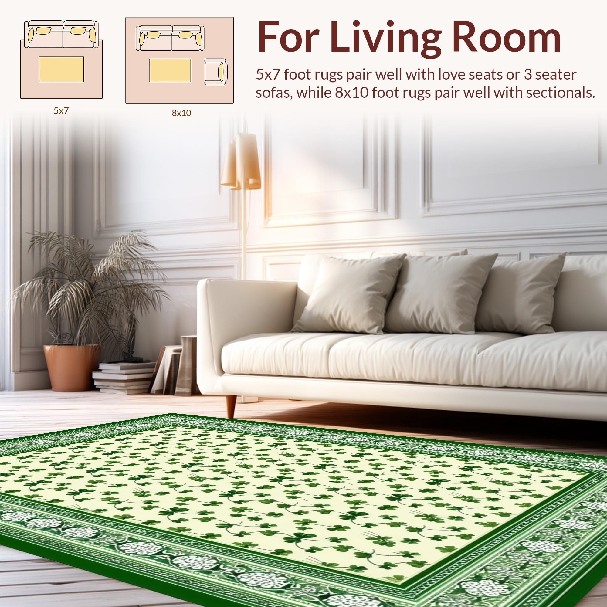 Ultra Soft Area Rug, Non Slip, Stain Resistant, Washable Area Rugs for Living Room, Bedroom, Elegant Earthy Floral Accents(Green) Overview: