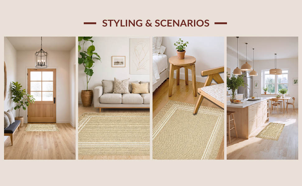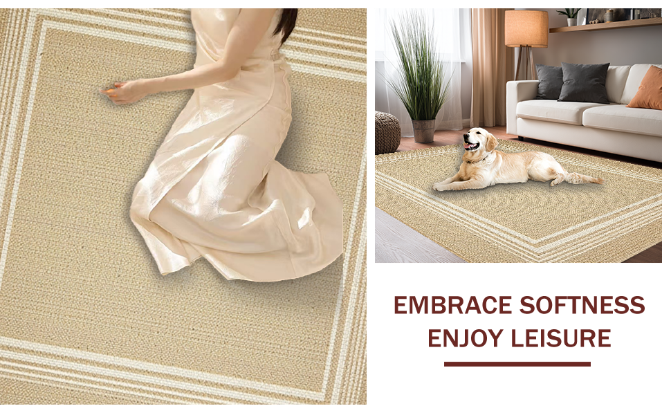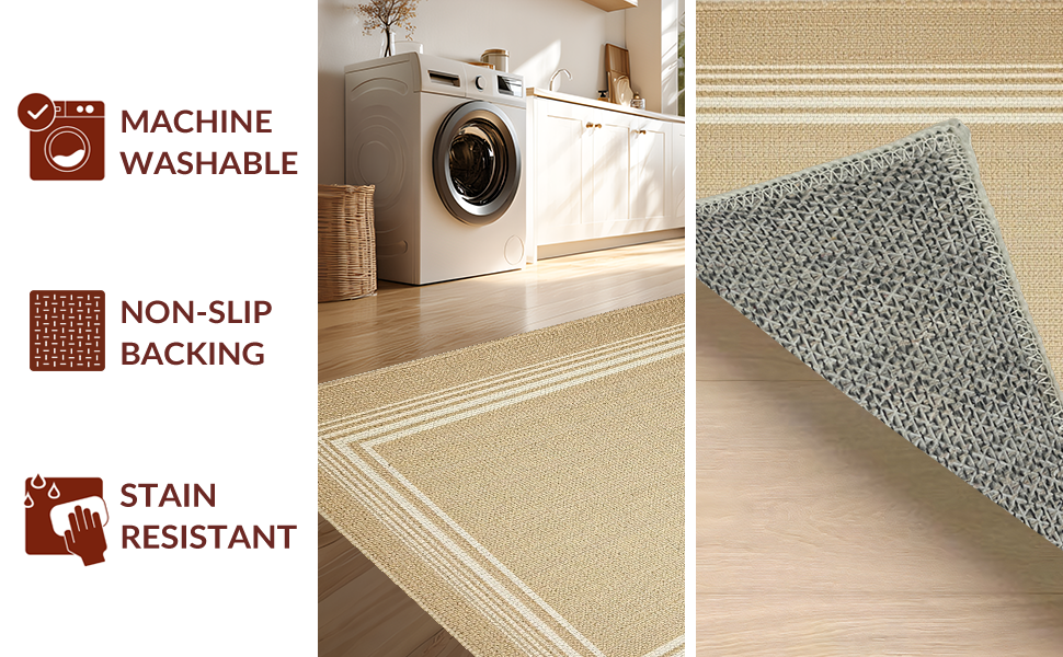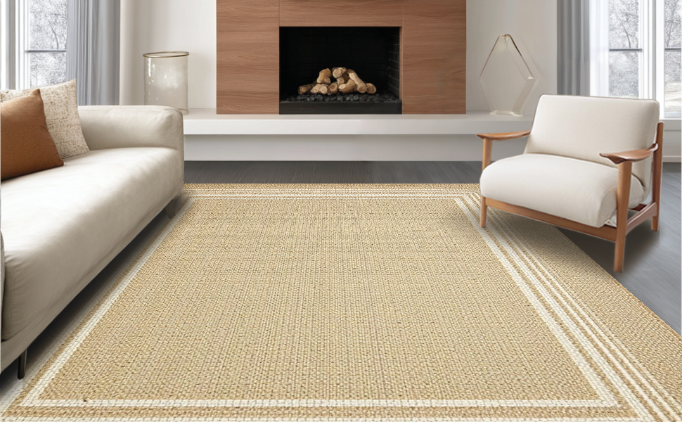 Ultra Soft Area Rug, Non Slip, Stain Resistant, Washable Area Rugs for Living Room, Bedroom, Elegant Earthy Herringbone Aesthetic(Beige) Overview: