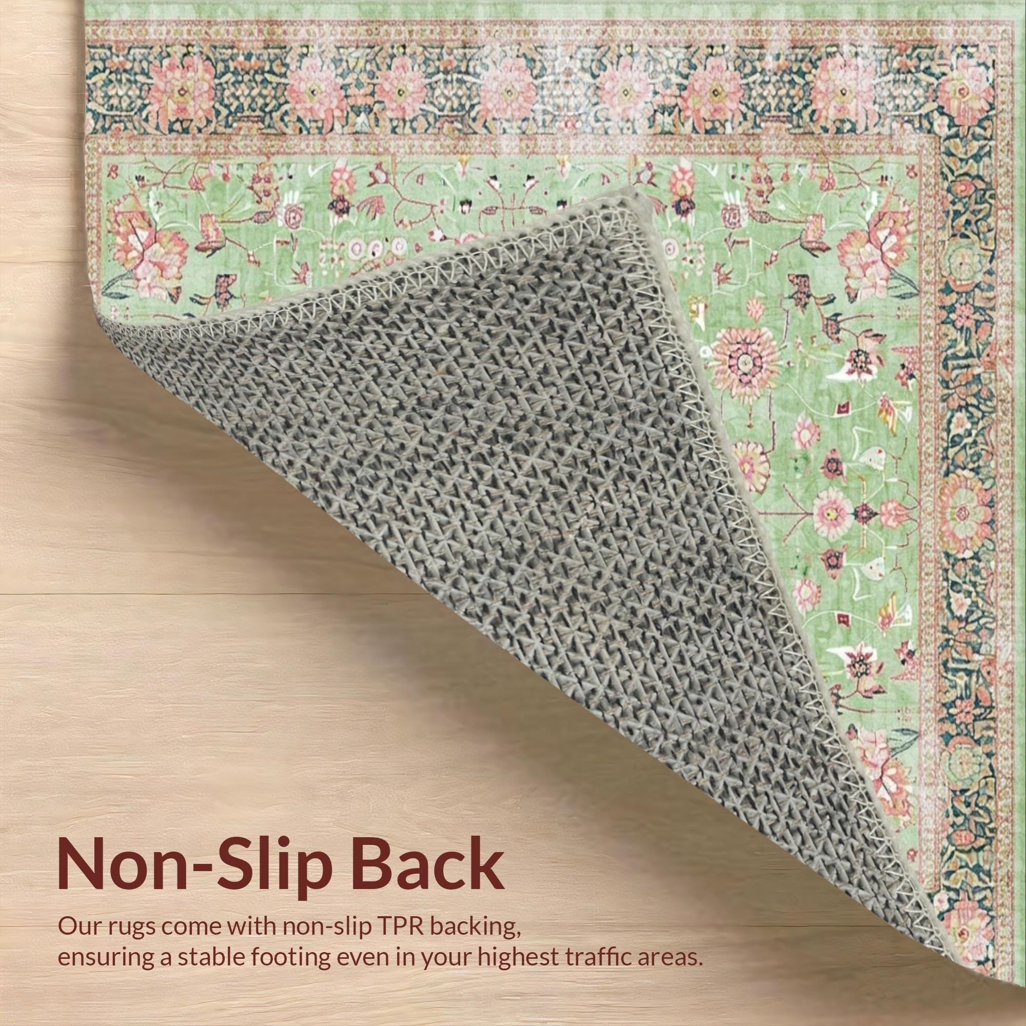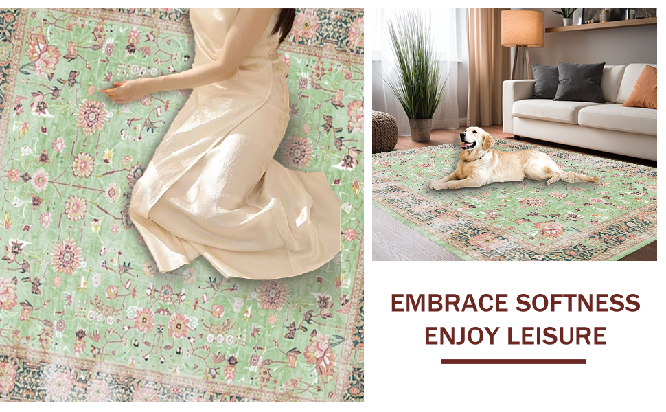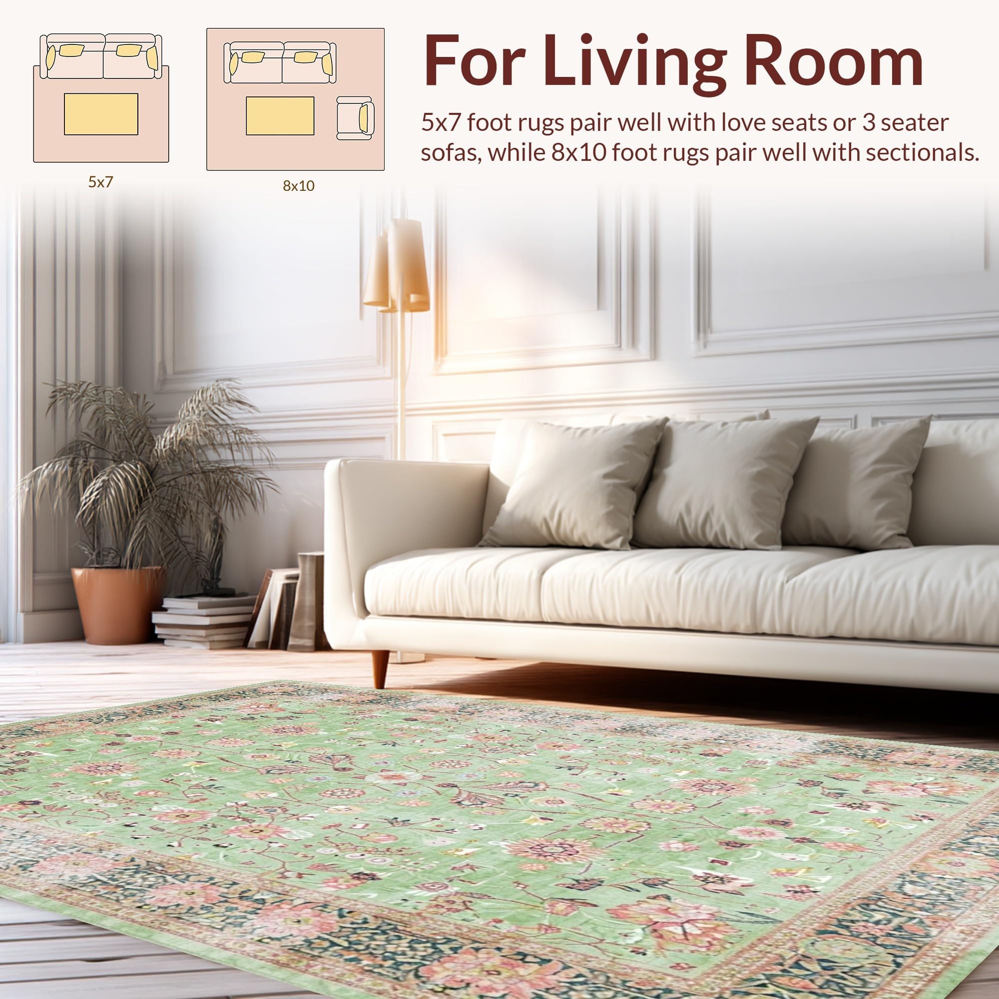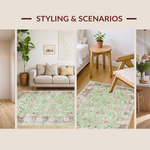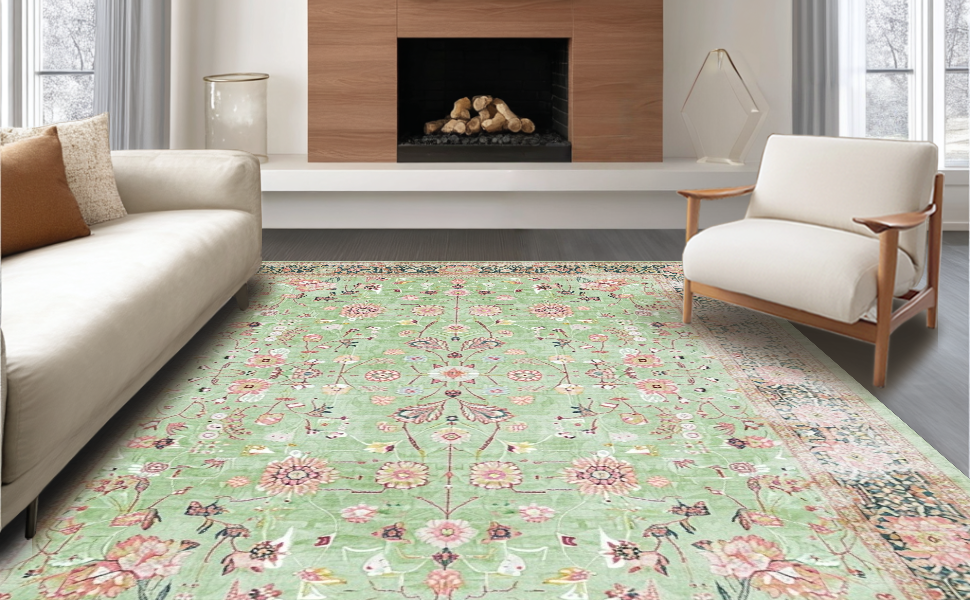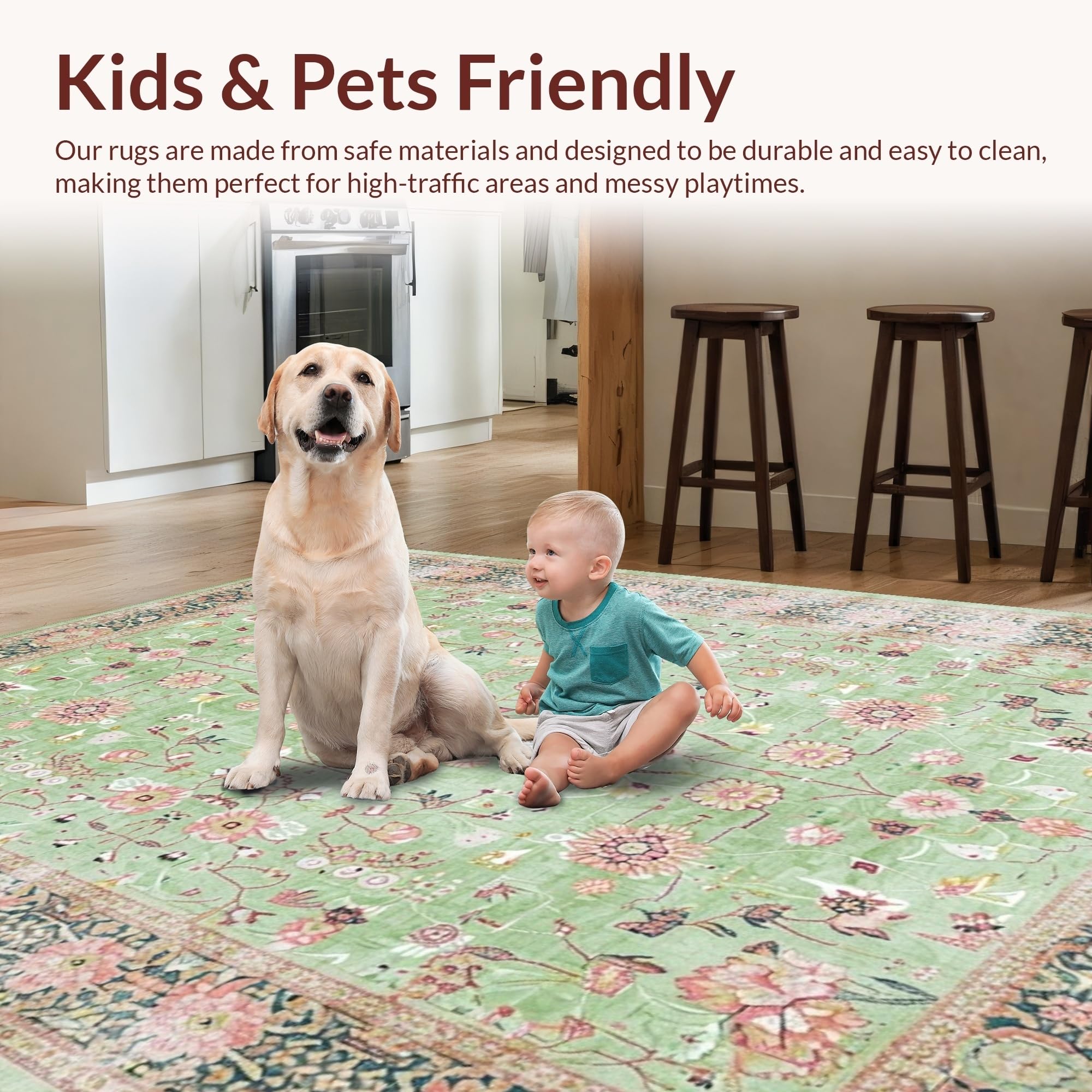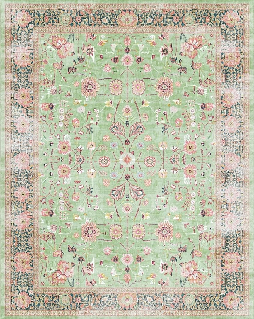 Ultra Soft Area Rug, Non Slip, Stain Resistant, Washable Area Rugs for Living Room, Bedroom, Elegant Earthy Ogee Style(Green) Overview: