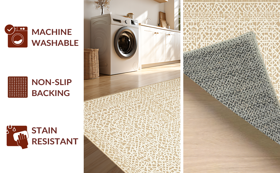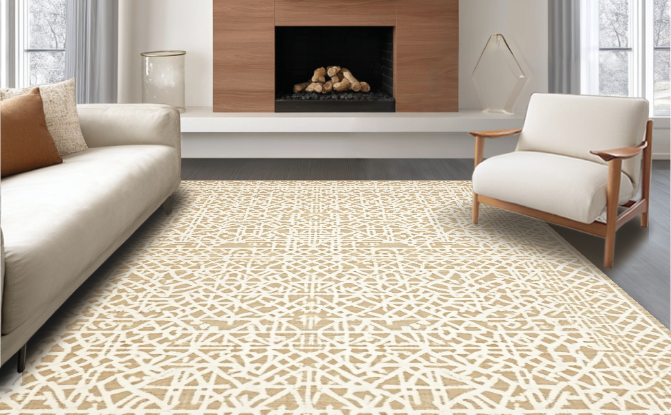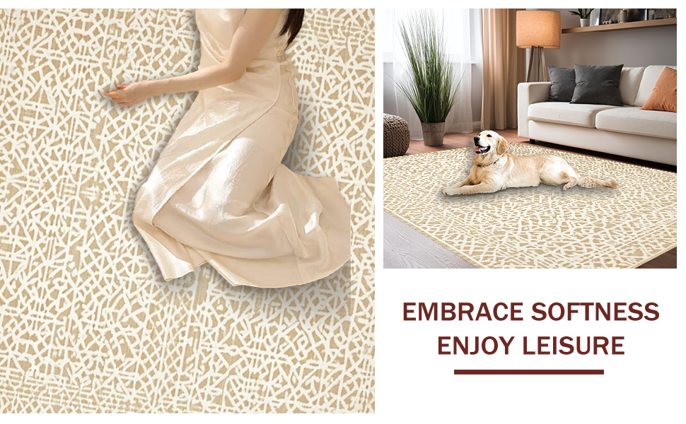 Ultra Soft Area Rug, Non Slip, Stain Resistant, Washable Area Rugs for Living Room, Bedroom, Elegant Earthy Shag Pattern(Beige) Overview: