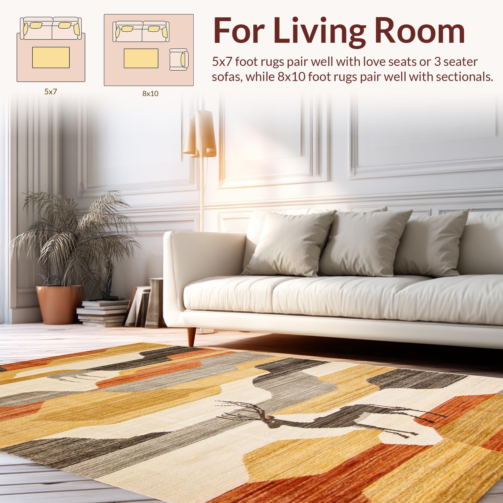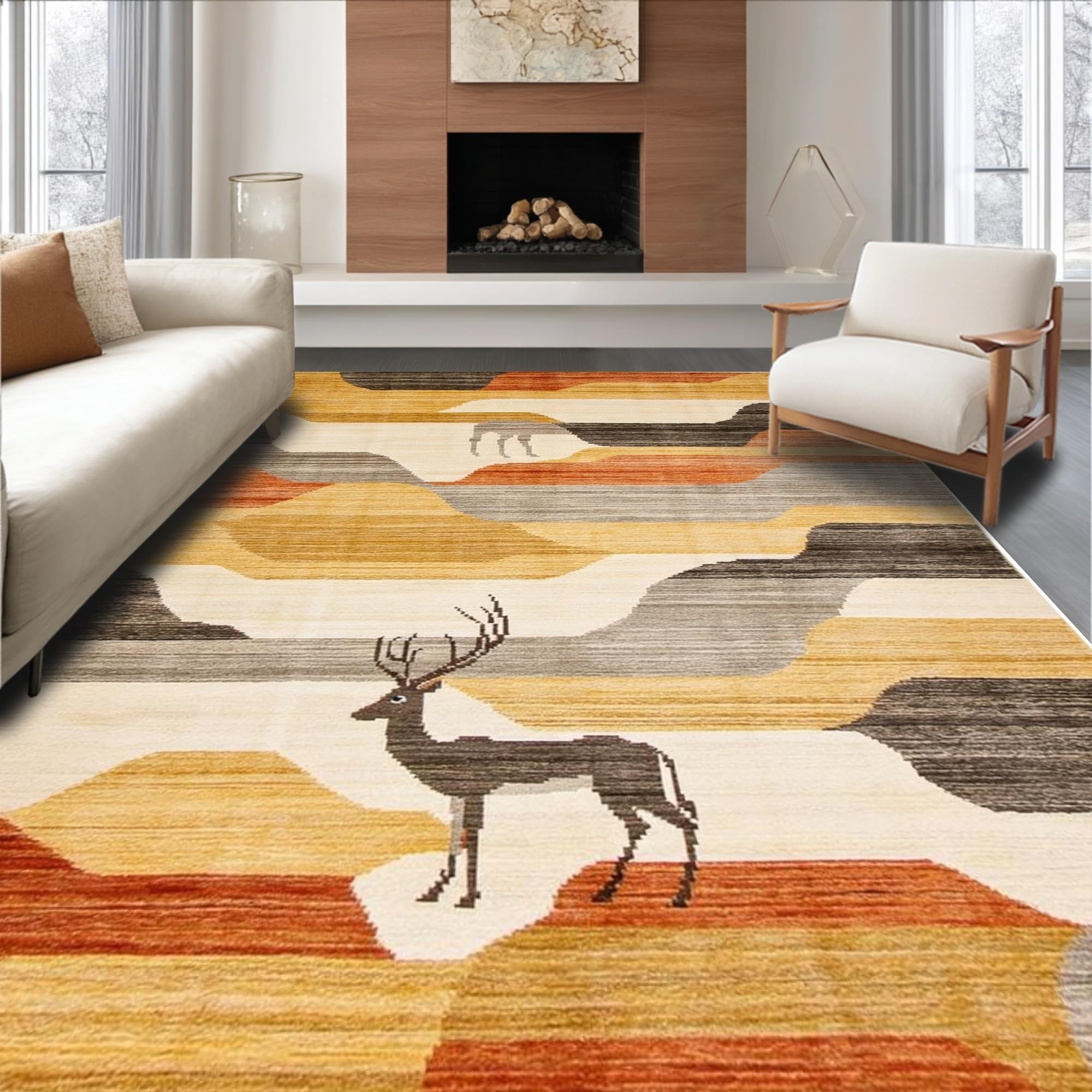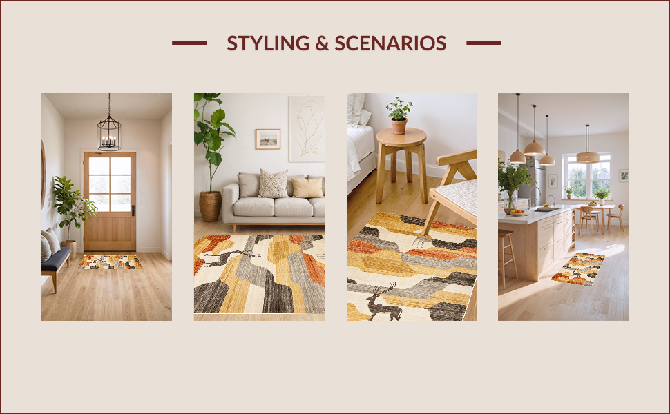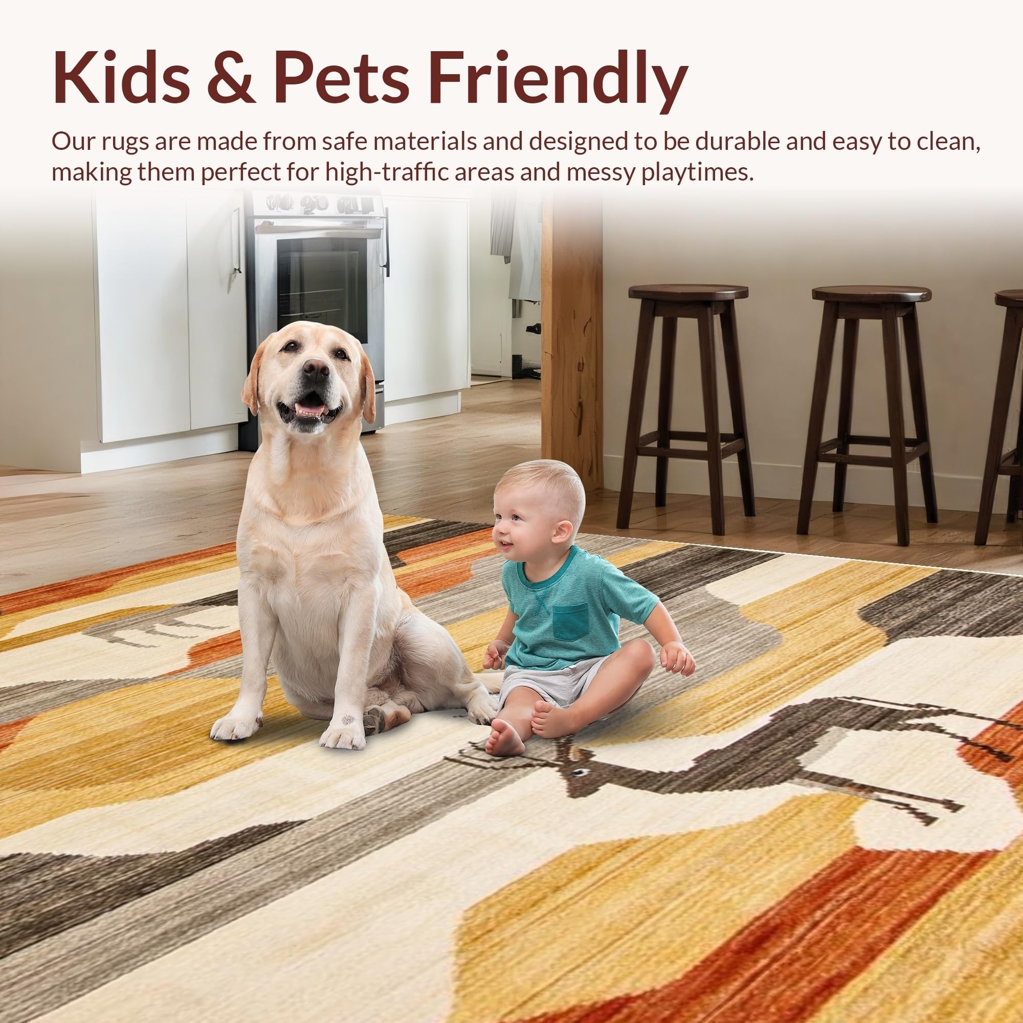 Ultra Soft Area Rug, Non Slip, Stain Resistant, Washable Area Rugs for Living Room, Bedroom, Elegant Earthy Toned Print(Beige) Overview: