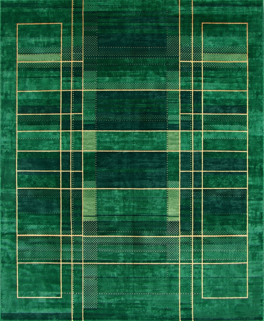 Elegant Emerald Green and Gold Abstract Area with Bold Shapes(Green)