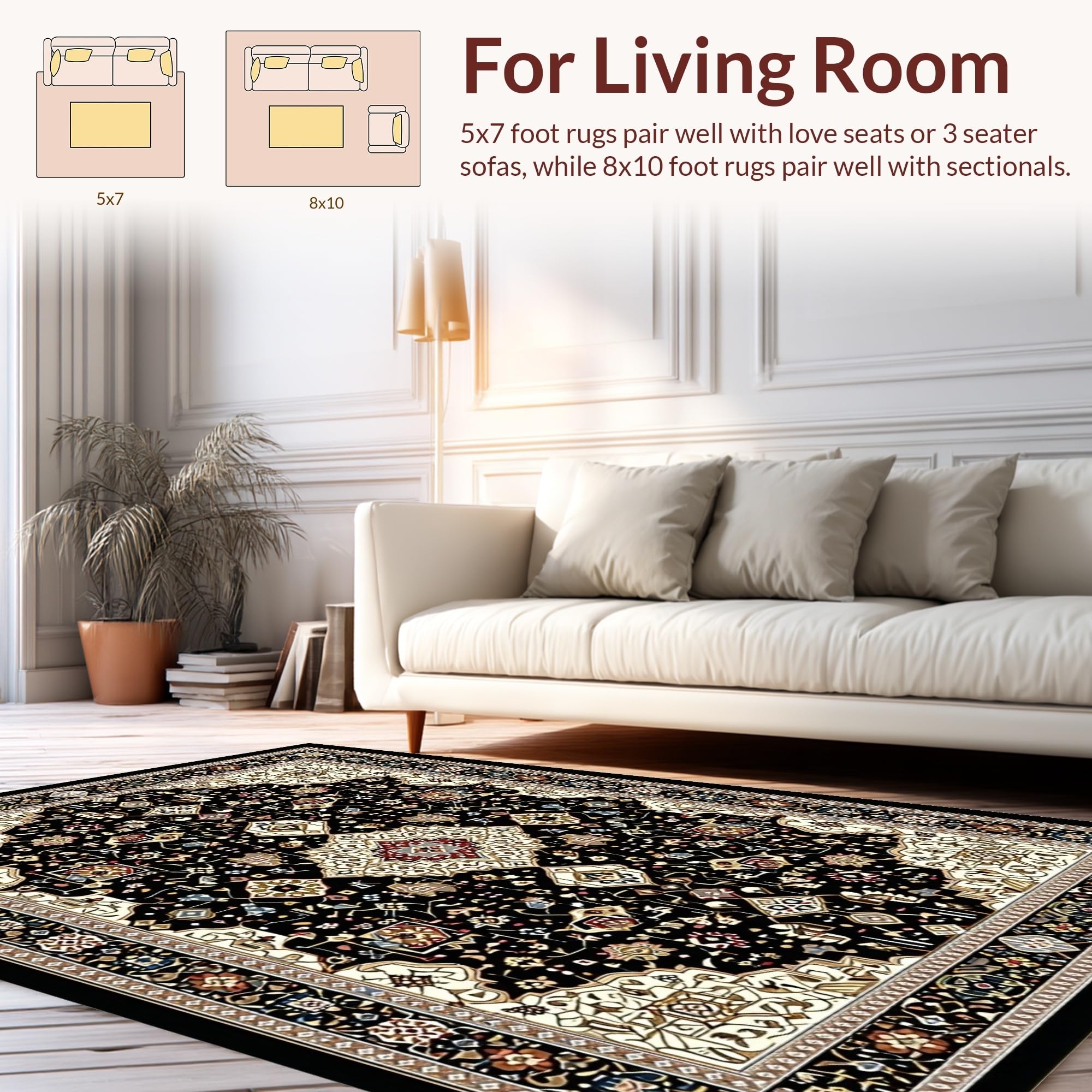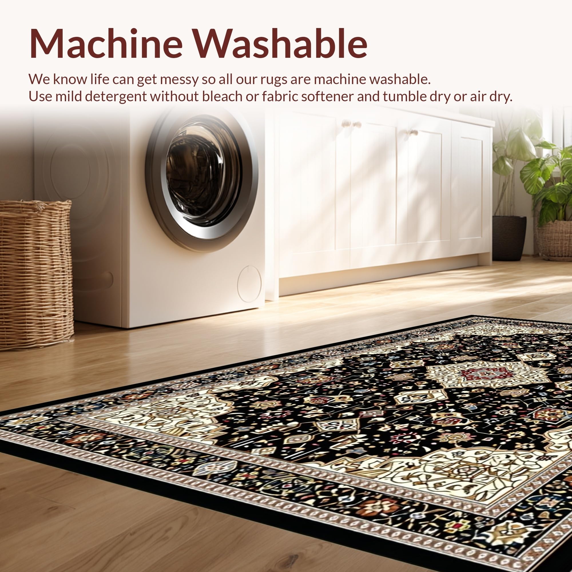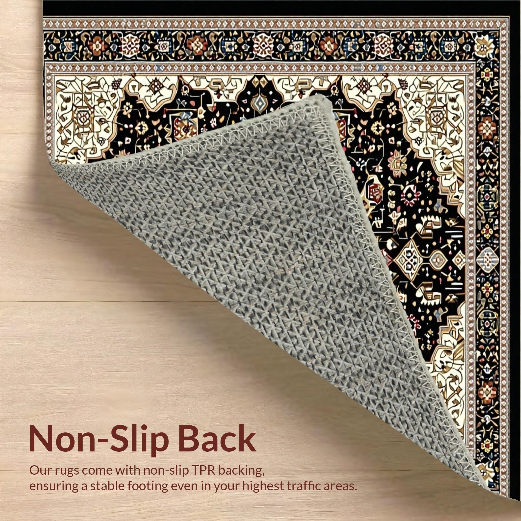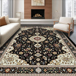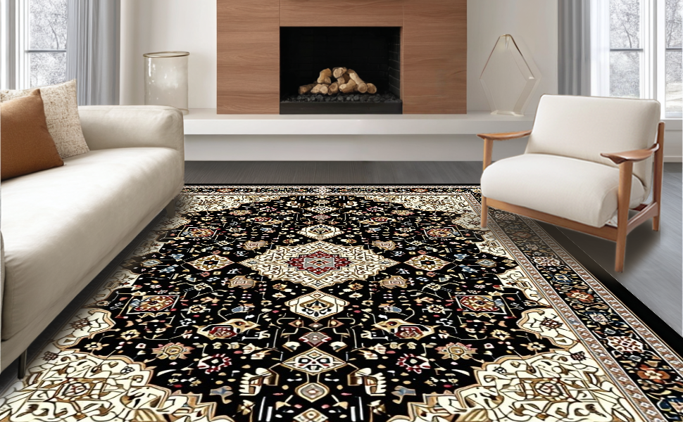 Ultra Soft Area Rug, Non Slip, Stain Resistant, Washable Area Rugs for Living Room, Bedroom, Elegant Ethnic Medallion Motif(Black) Overview: