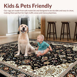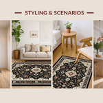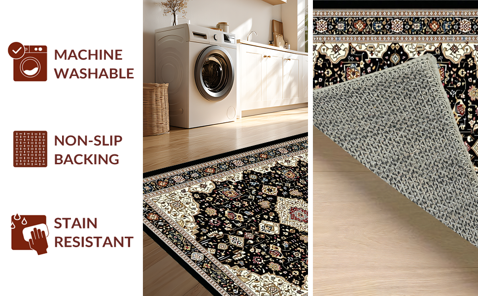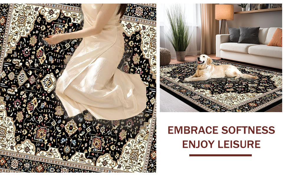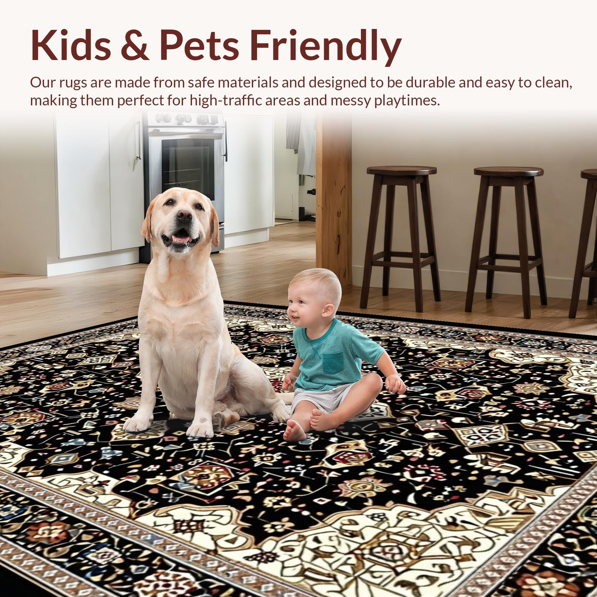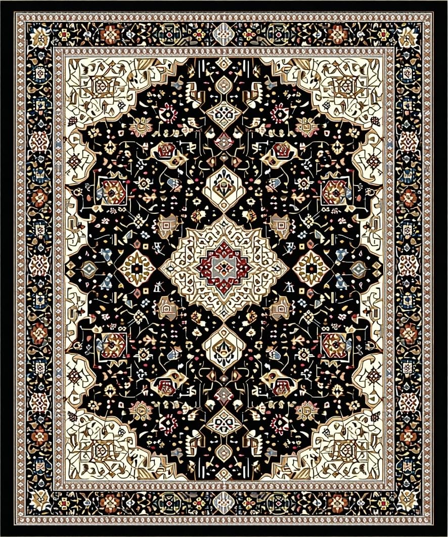 Ultra Soft Area Rug, Non Slip, Stain Resistant, Washable Area Rugs for Living Room, Bedroom, Elegant Ethnic Medallion Motif(Black) Overview:
