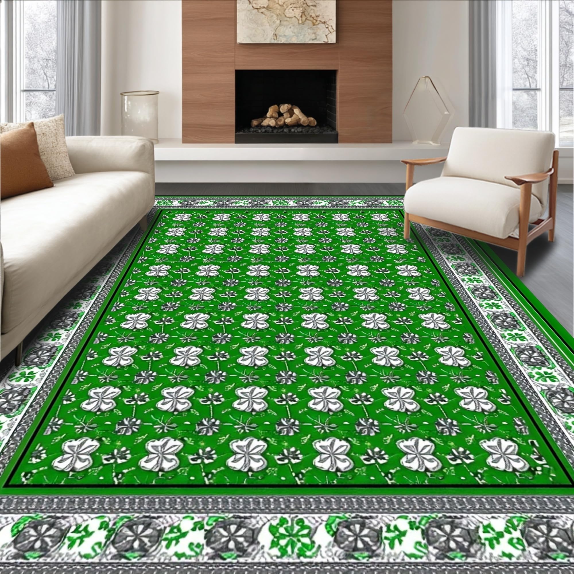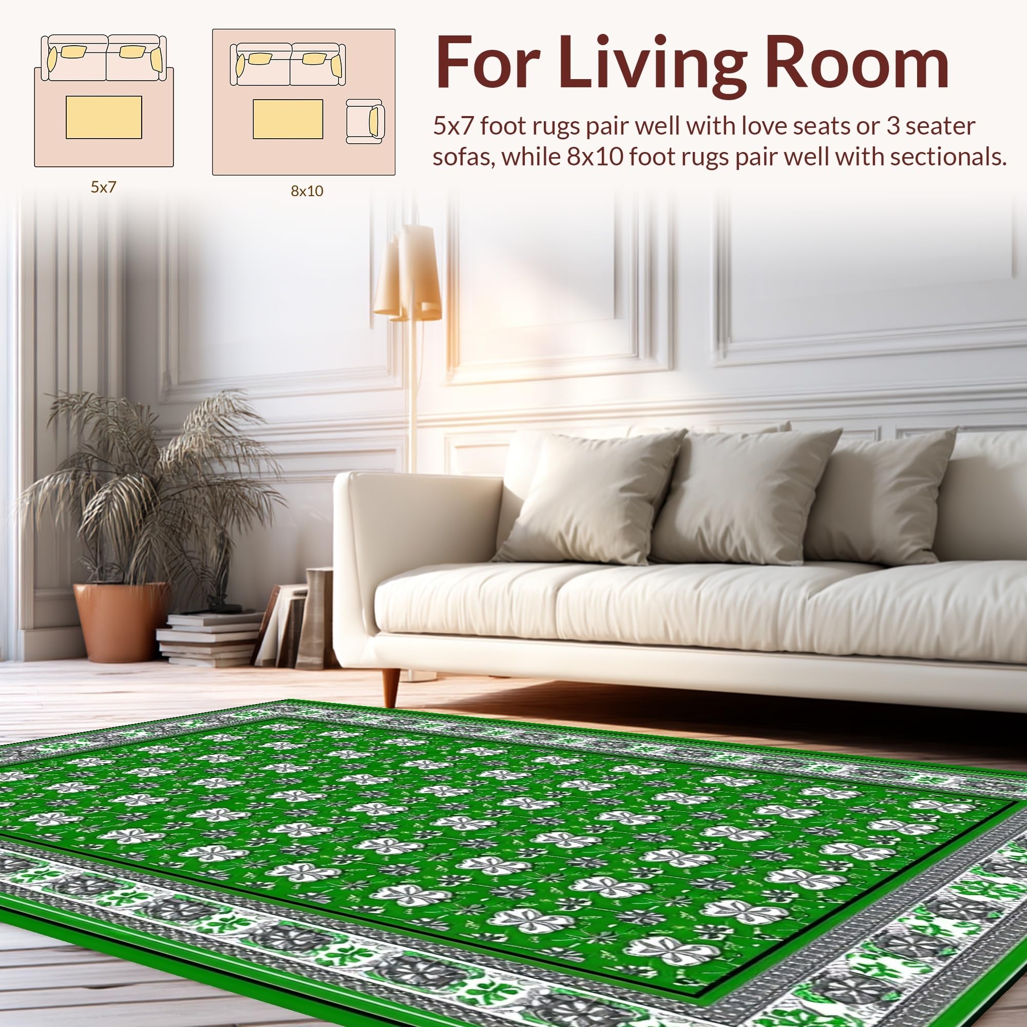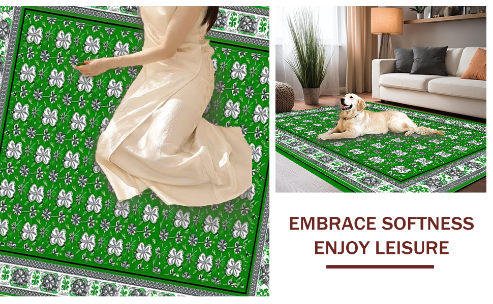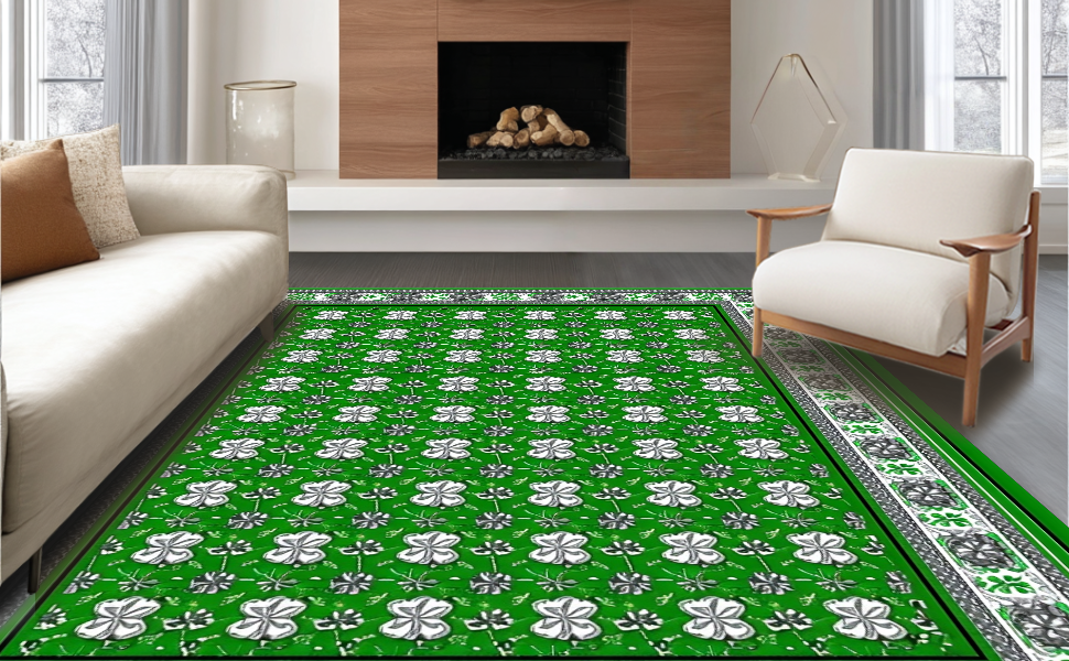 Ultra Soft Area Rug, Non Slip, Stain Resistant, Washable Area Rugs for Living Room, Bedroom, Elegant Eucalyptus Leaf Motif(Green) Overview: