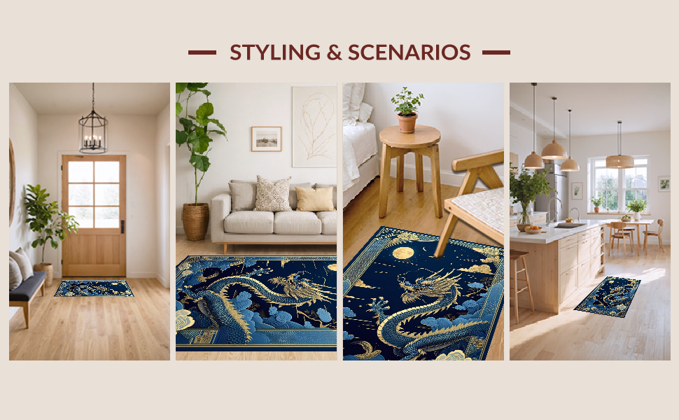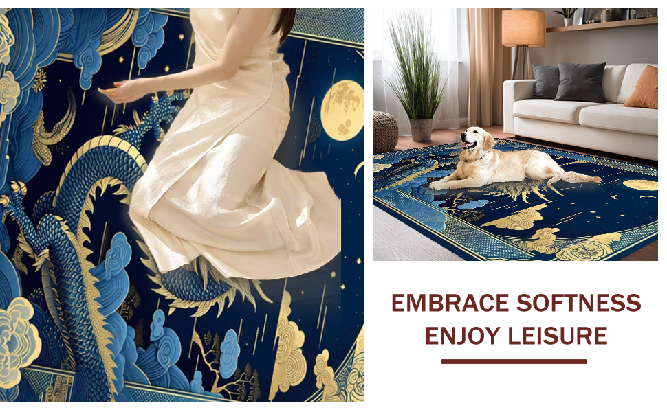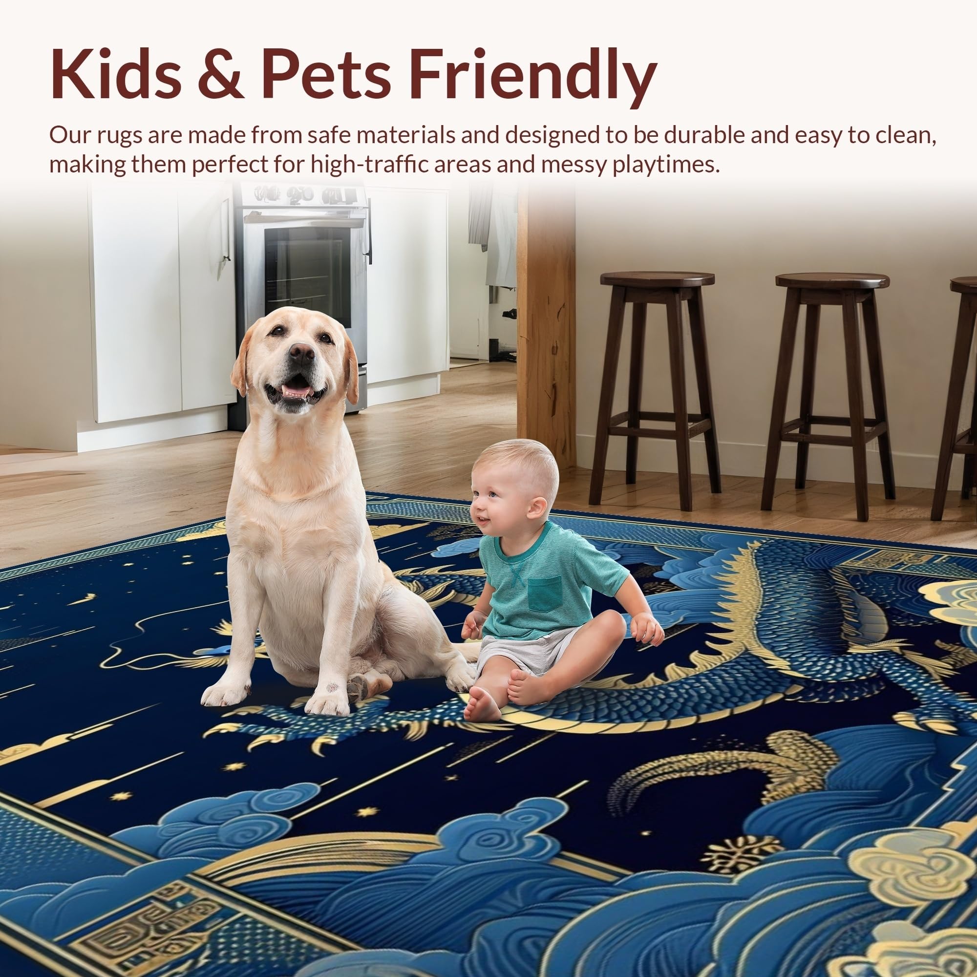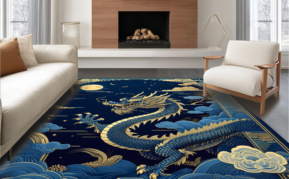 Ultra Soft Area Rug, Non Slip, Stain Resistant, Washable Area Rugs for Living Room, Bedroom, Elegant Fantasy Wildlife Pattern(Blue) Overview: