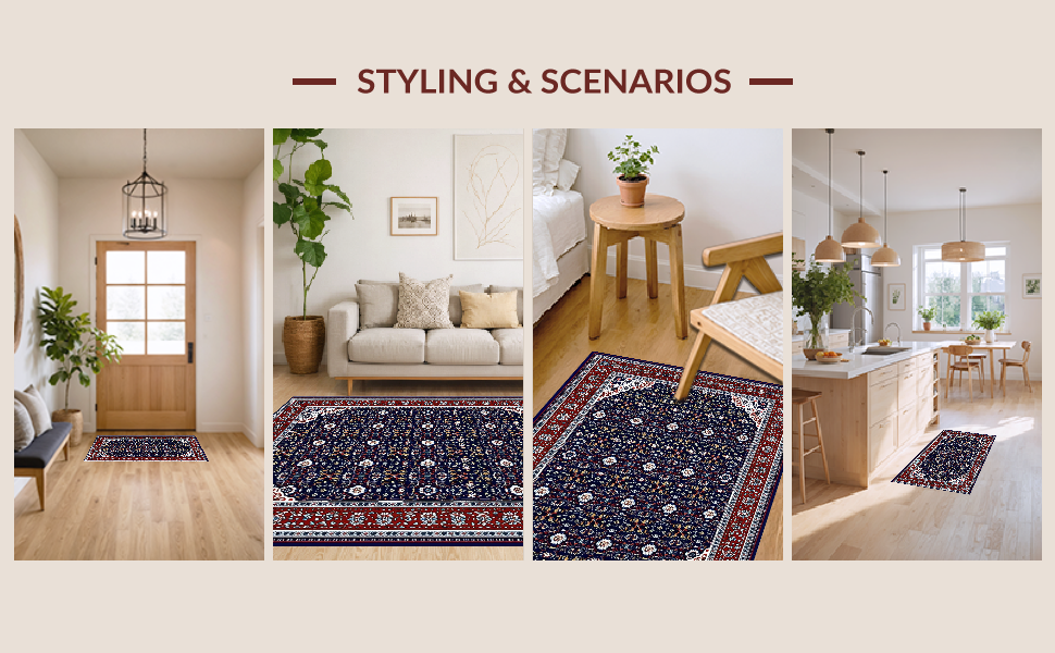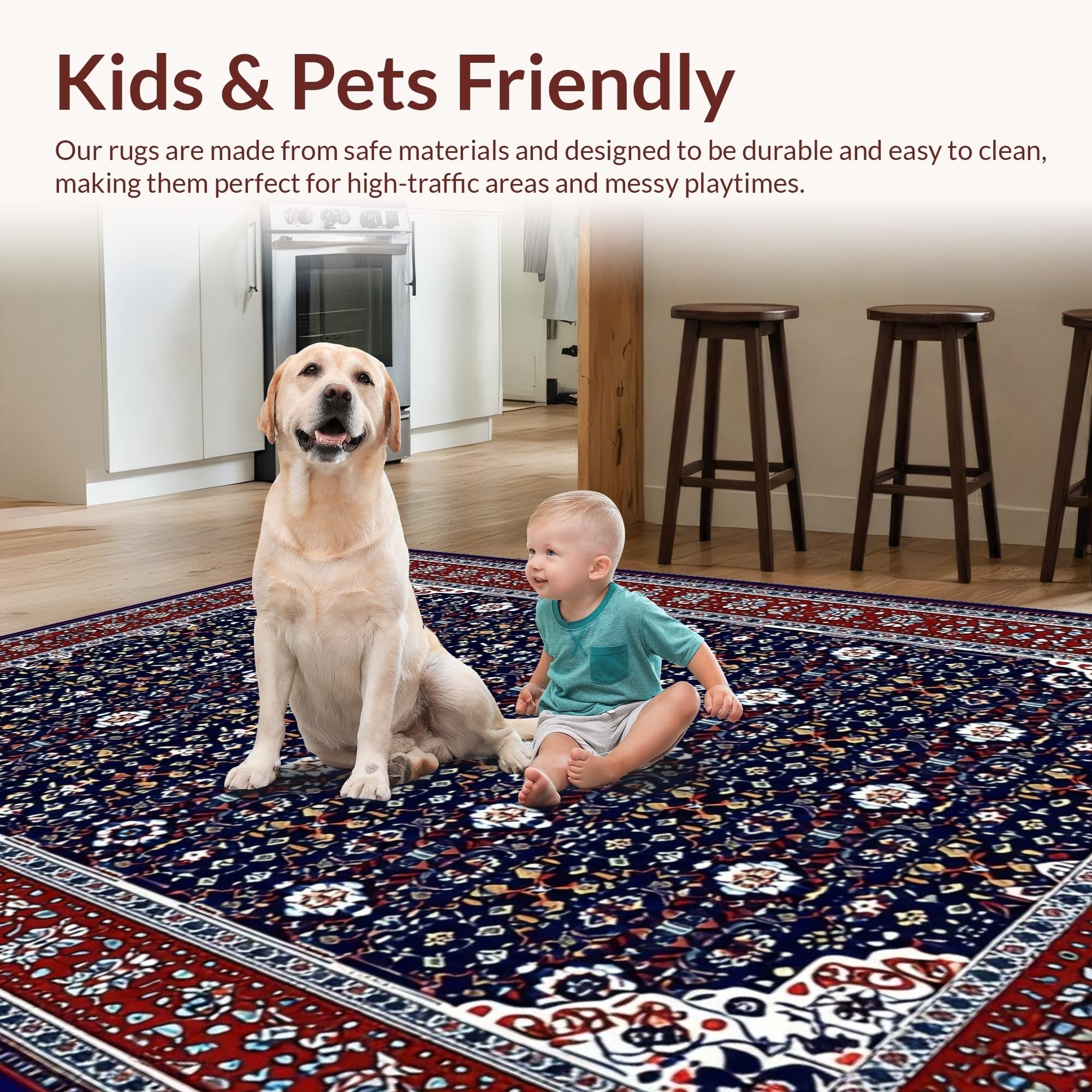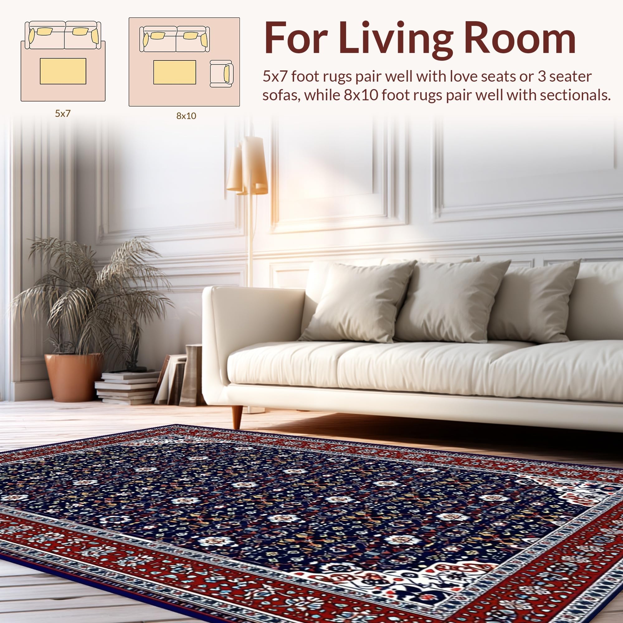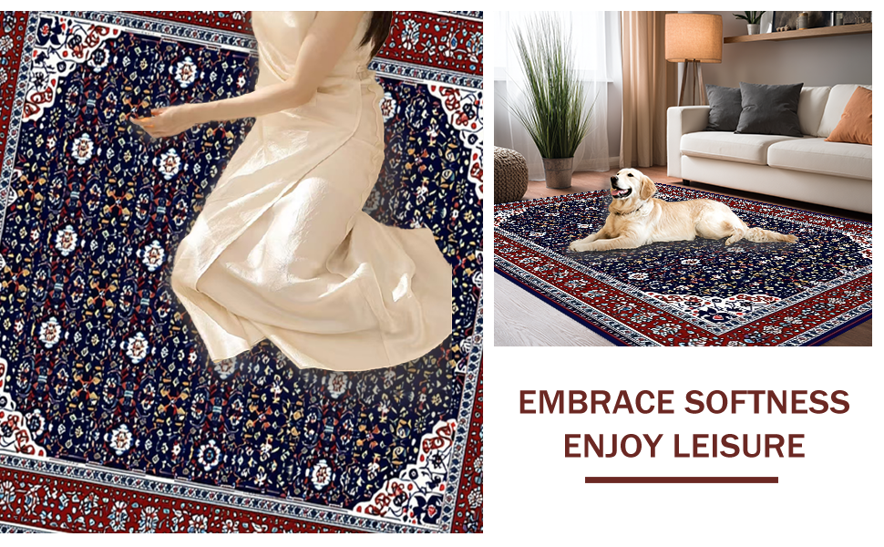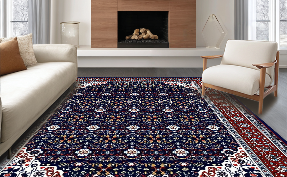 Ultra Soft Area Rug, Non Slip, Stain Resistant, Washable Area Rugs for Living Room, Bedroom, Elegant Floral Blue Aesthetic(Blue) Overview:
