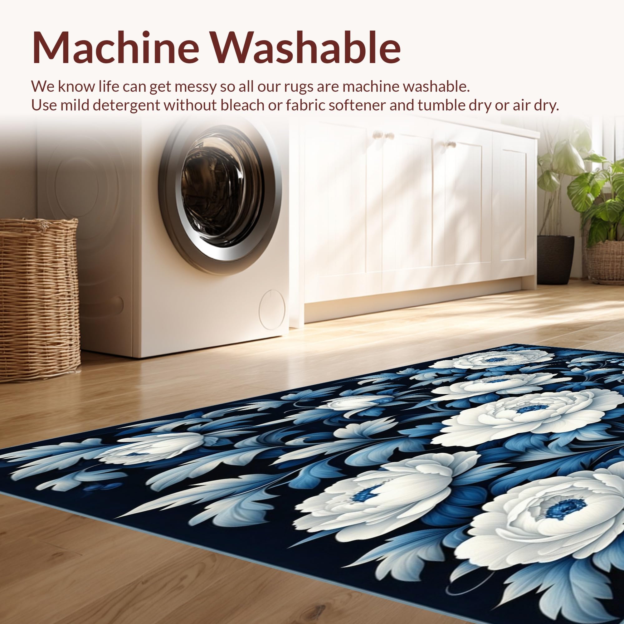 - Machine Washable: Our rugs can be easily thrown in the wash machine.