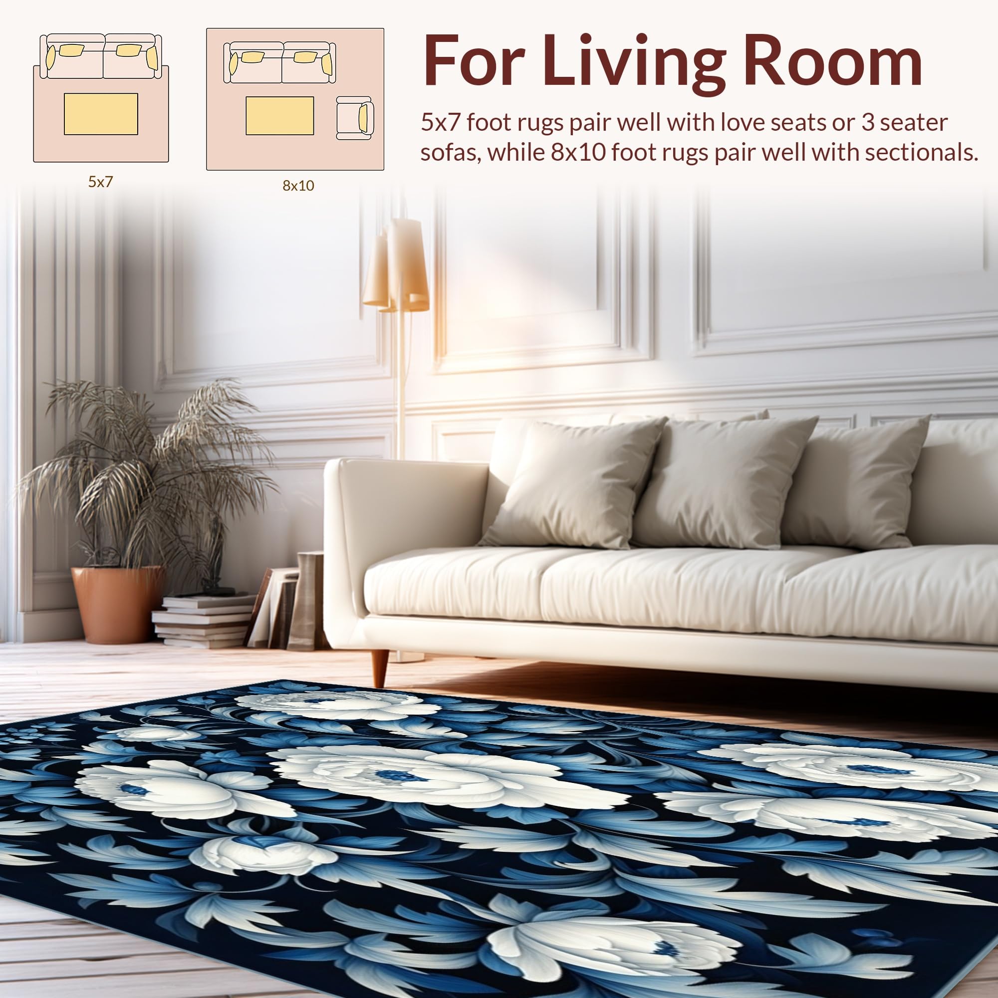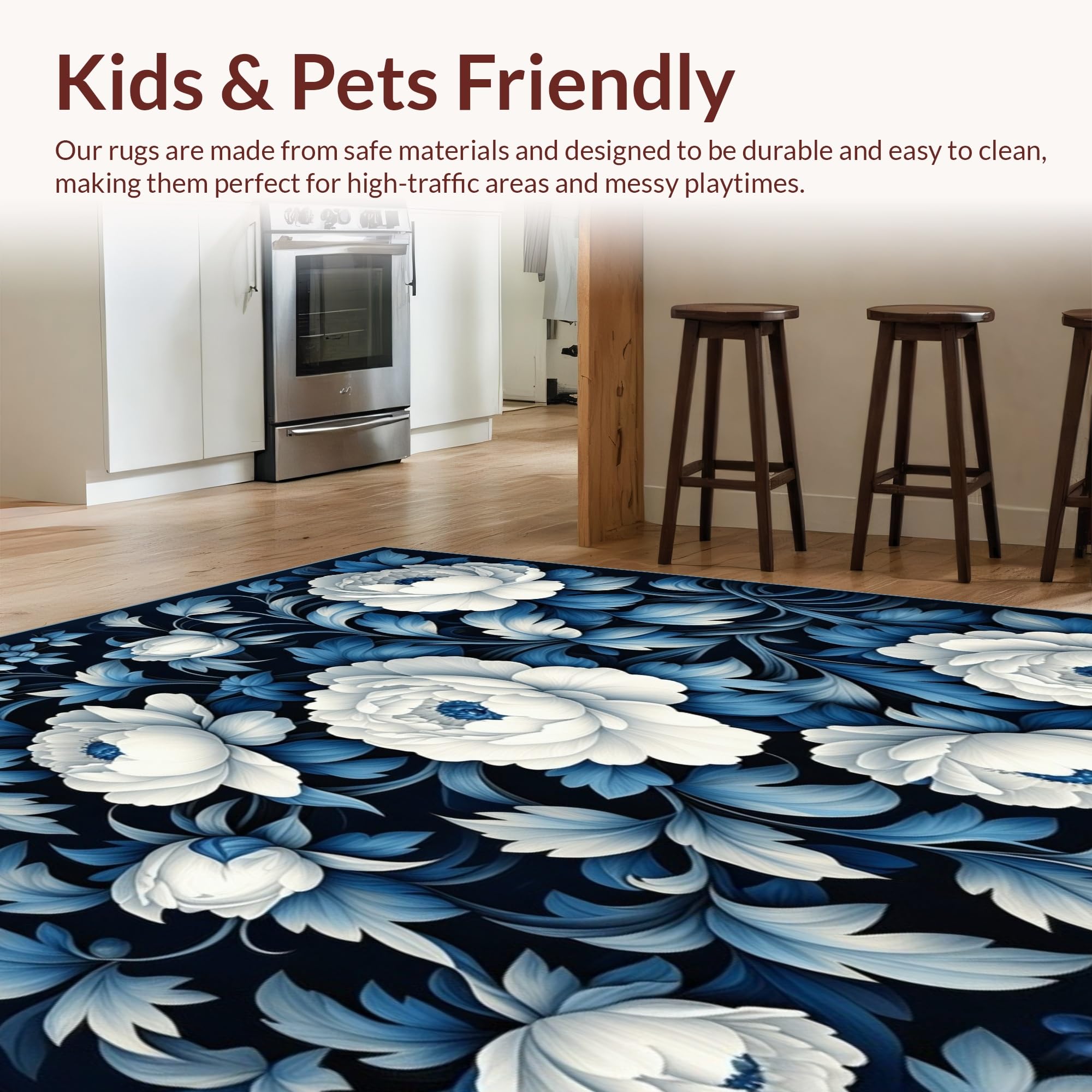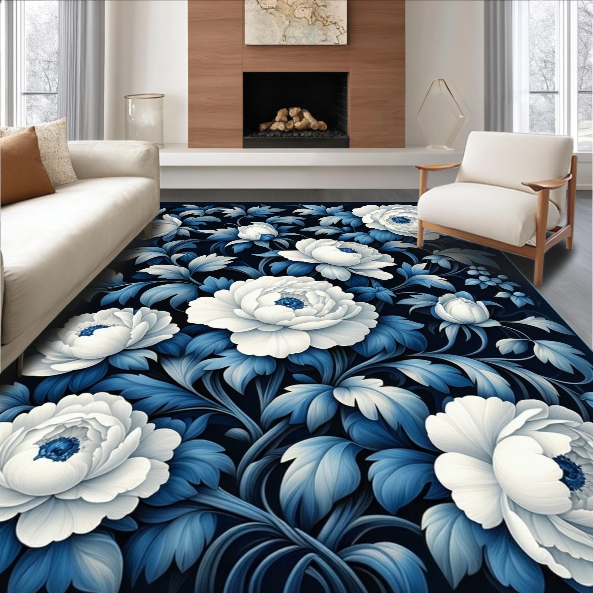 Ultra Soft Area Rug, Non Slip, Stain Resistant, Washable Area Rugs for Living Room, Bedroom, Elegant Floral Carpet Non Slip Floor Rug Modern Home Decor(Blue) Overview: