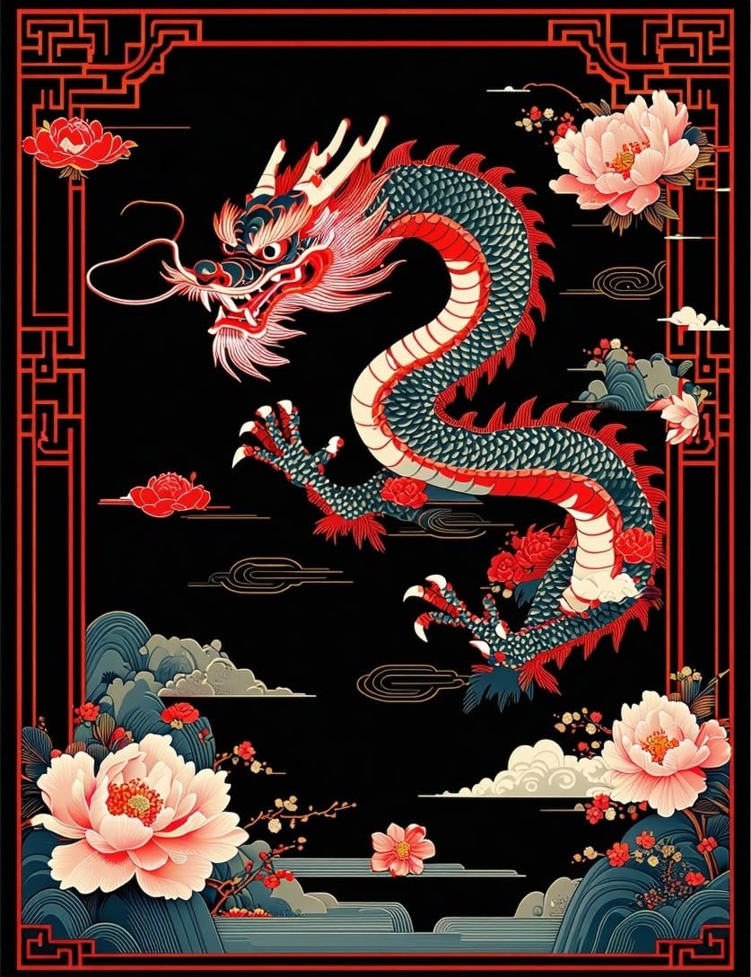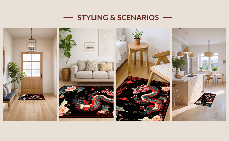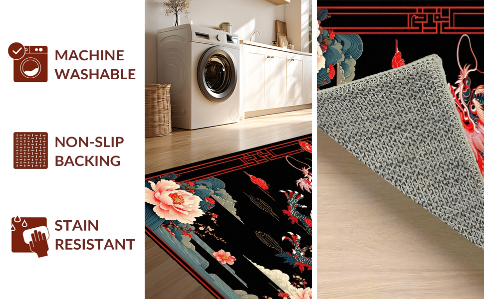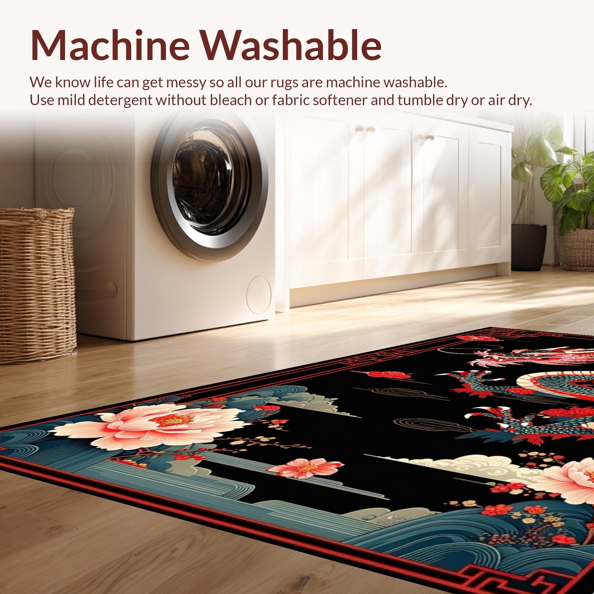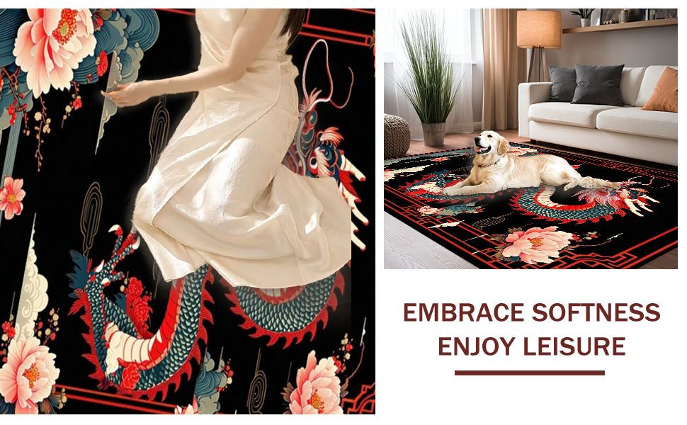 Ultra Soft Area Rug, Non Slip, Stain Resistant, Washable Area Rugs for Living Room, Bedroom, Elegant Floral Dragon Aesthetic(Black) Overview: