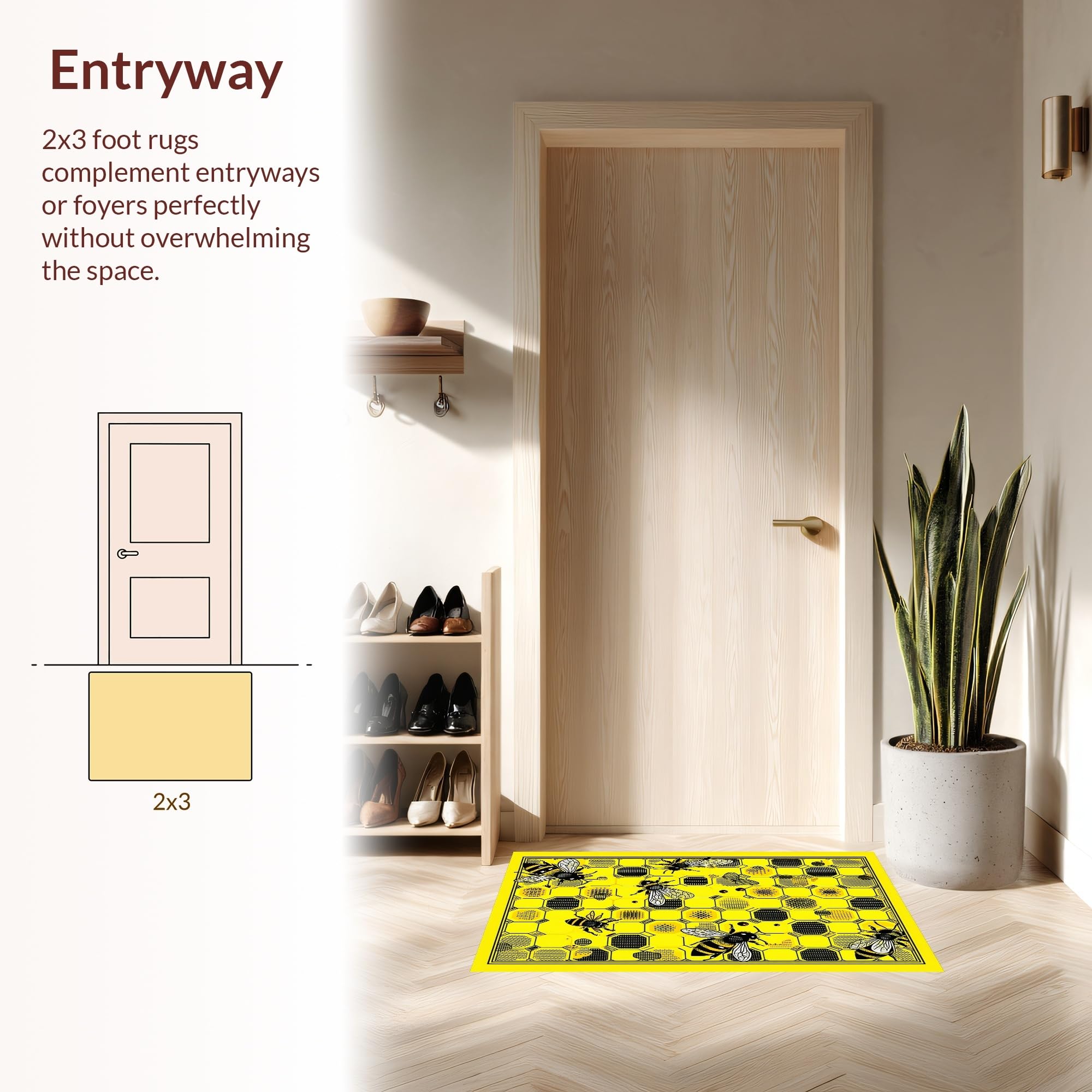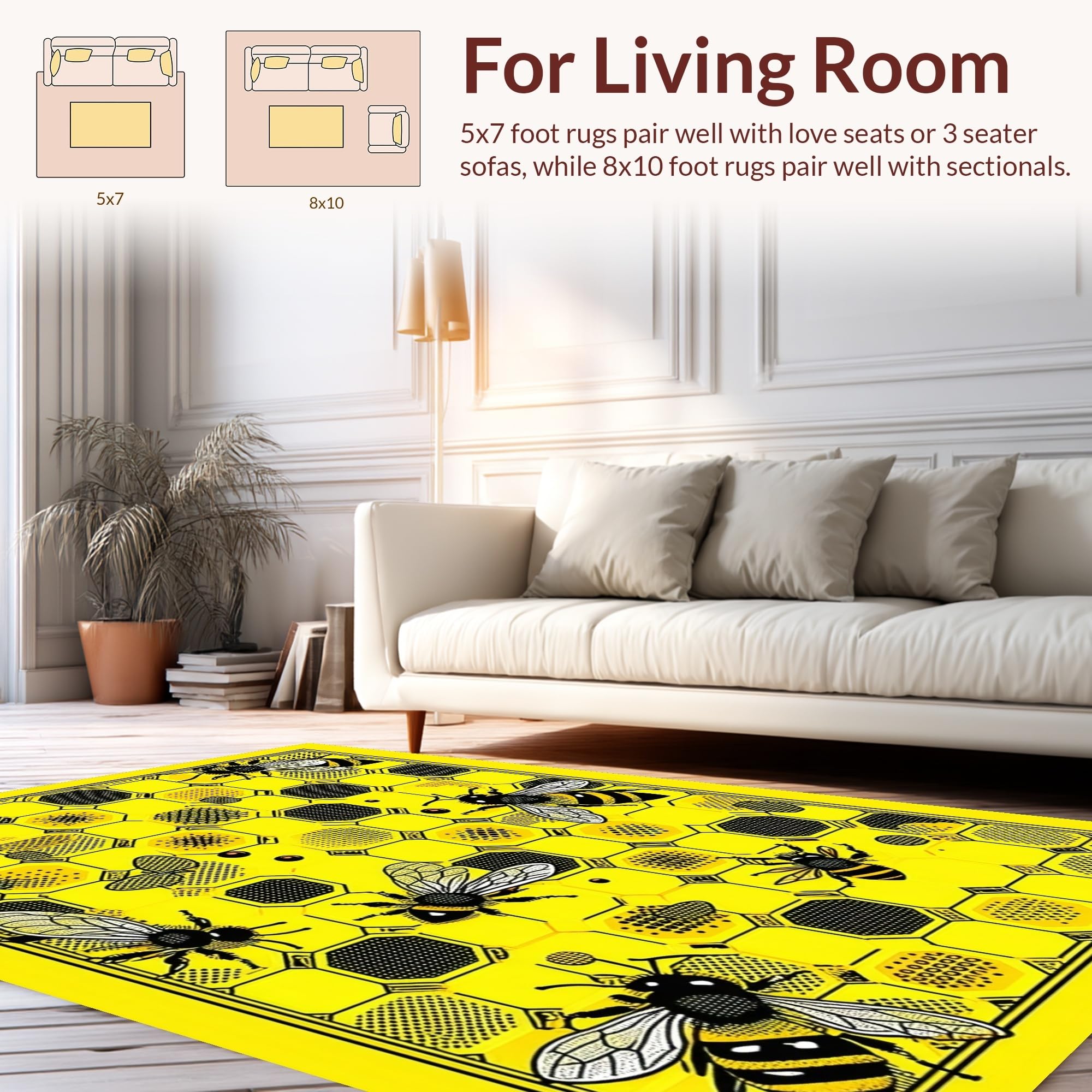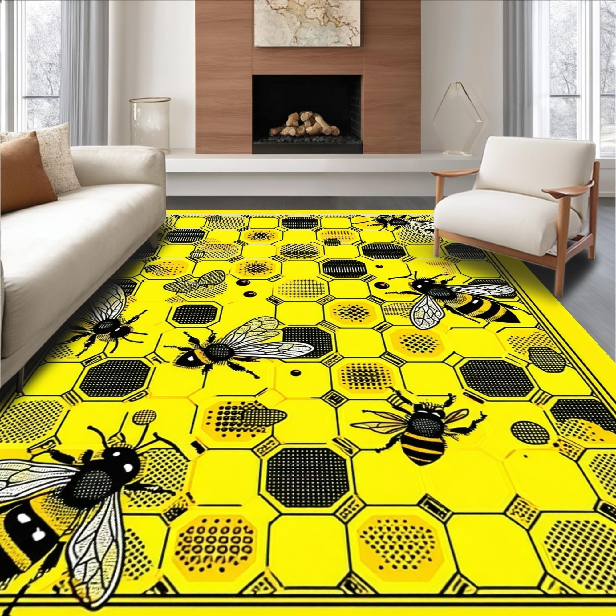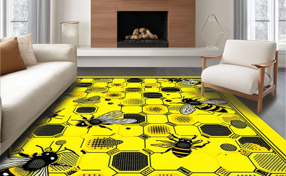 Ultra Soft Area Rug, Non Slip, Stain Resistant, Washable Area Rugs for Living Room, Bedroom, Elegant Floral Hexagonal Arrangement(Yellow) Overview: