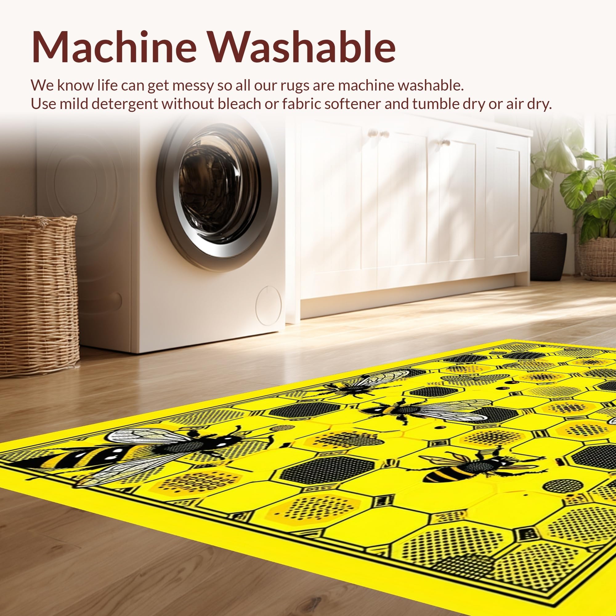 - Machine Washable: Our rugs can be easily thrown in the wash machine.