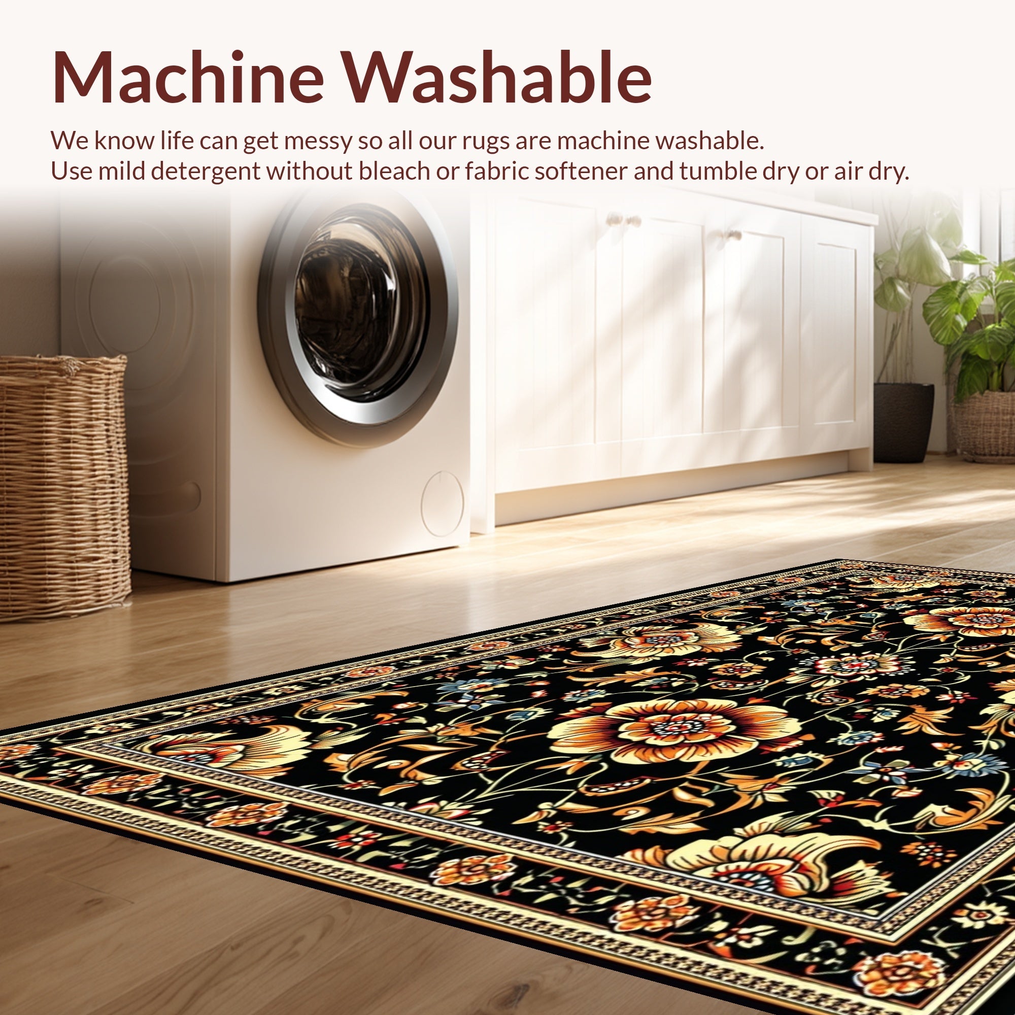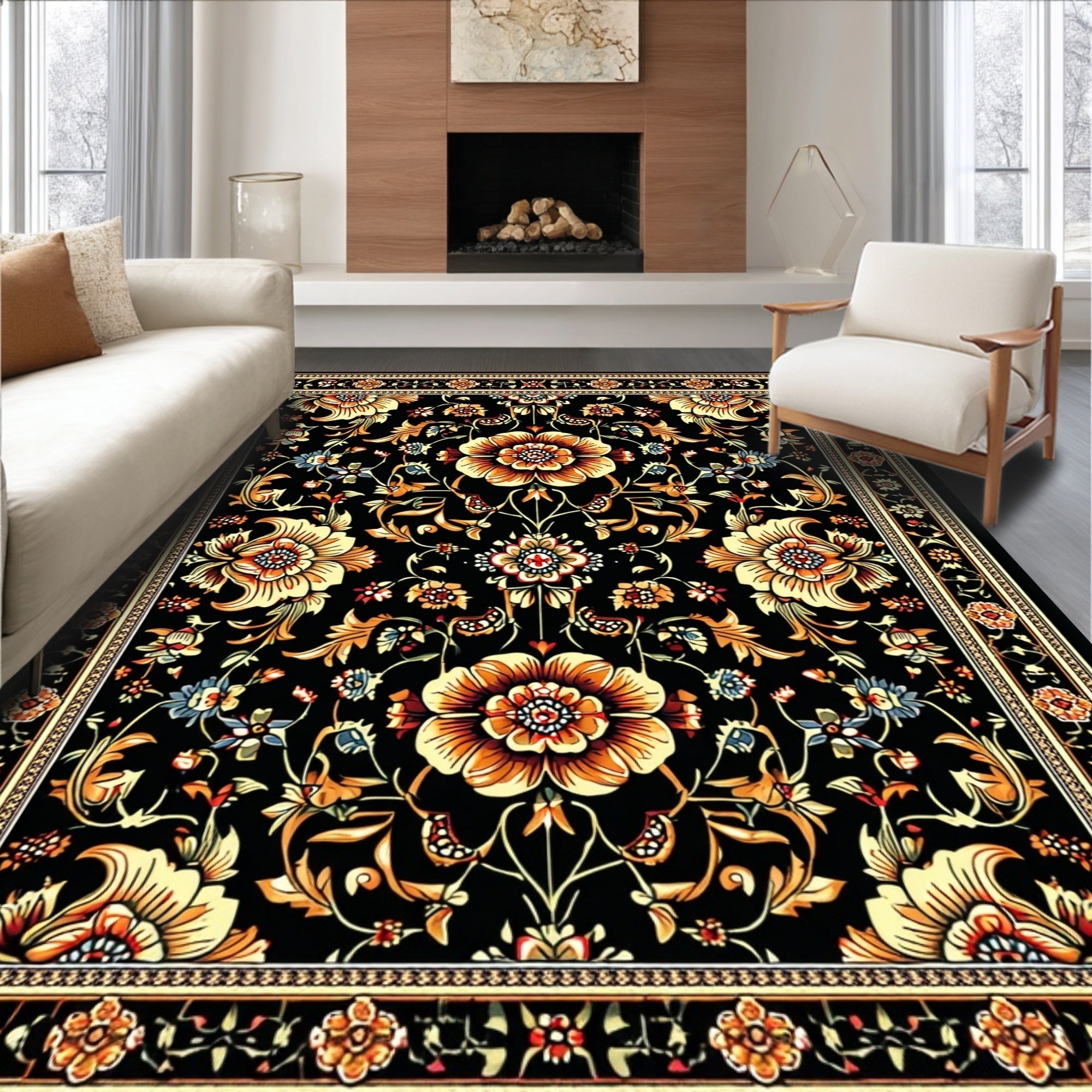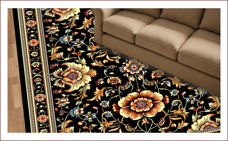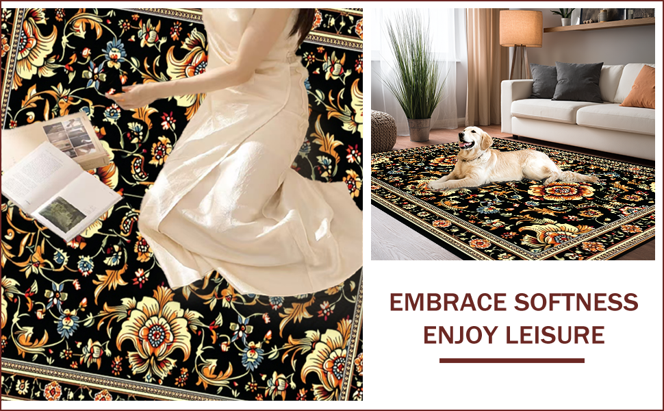 Ultra Soft Area Rug, Non Slip, Stain Resistant, Washable Area Rugs for Living Room, Bedroom, Elegant Floral Non-Slip Living Room Rug(Black) Overview: