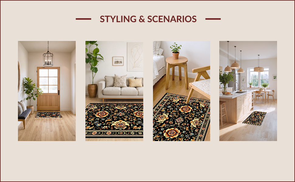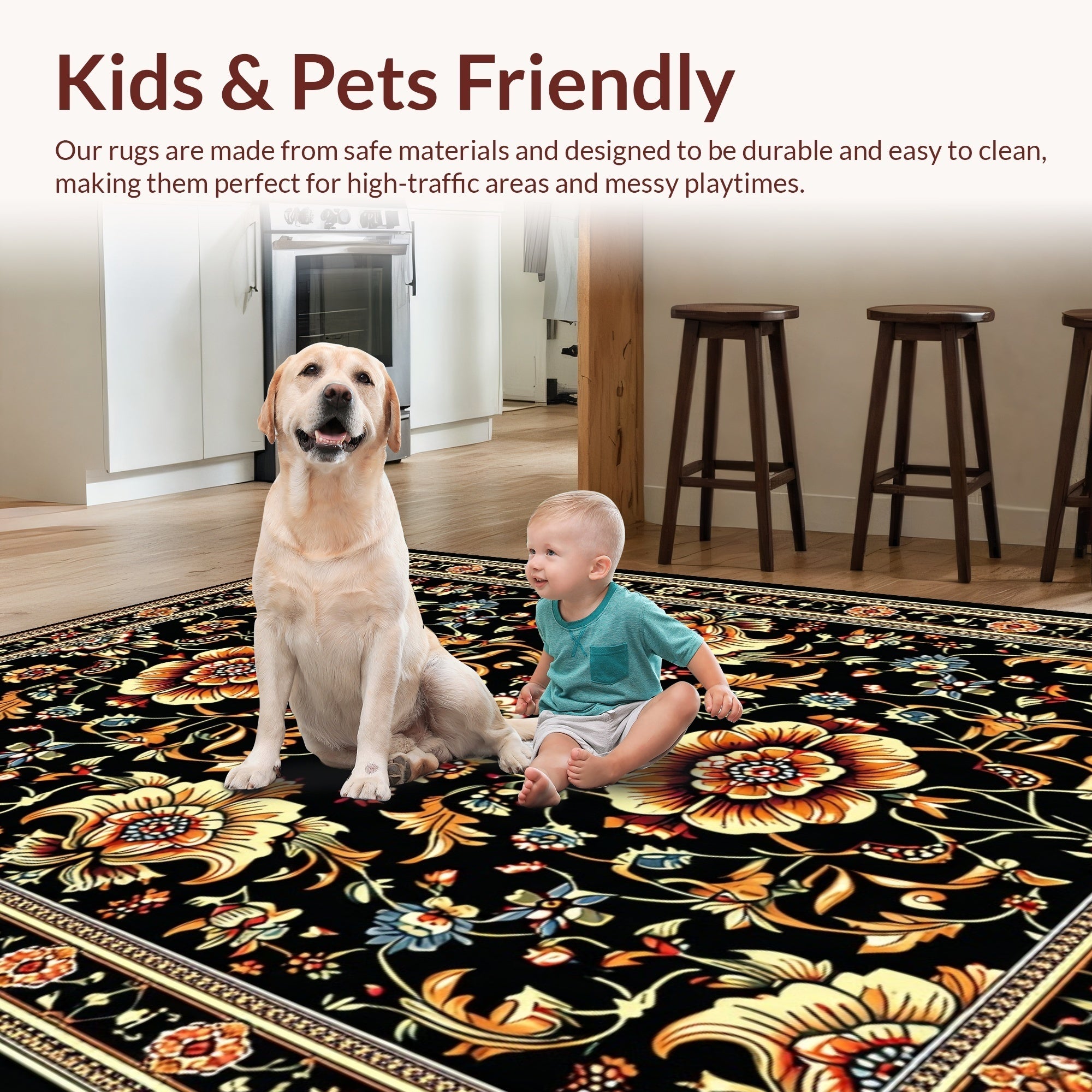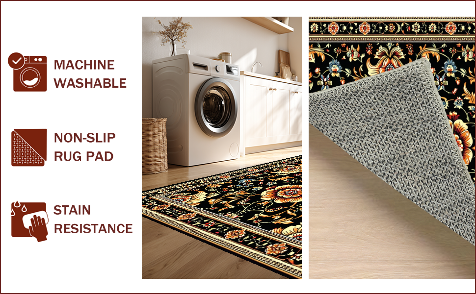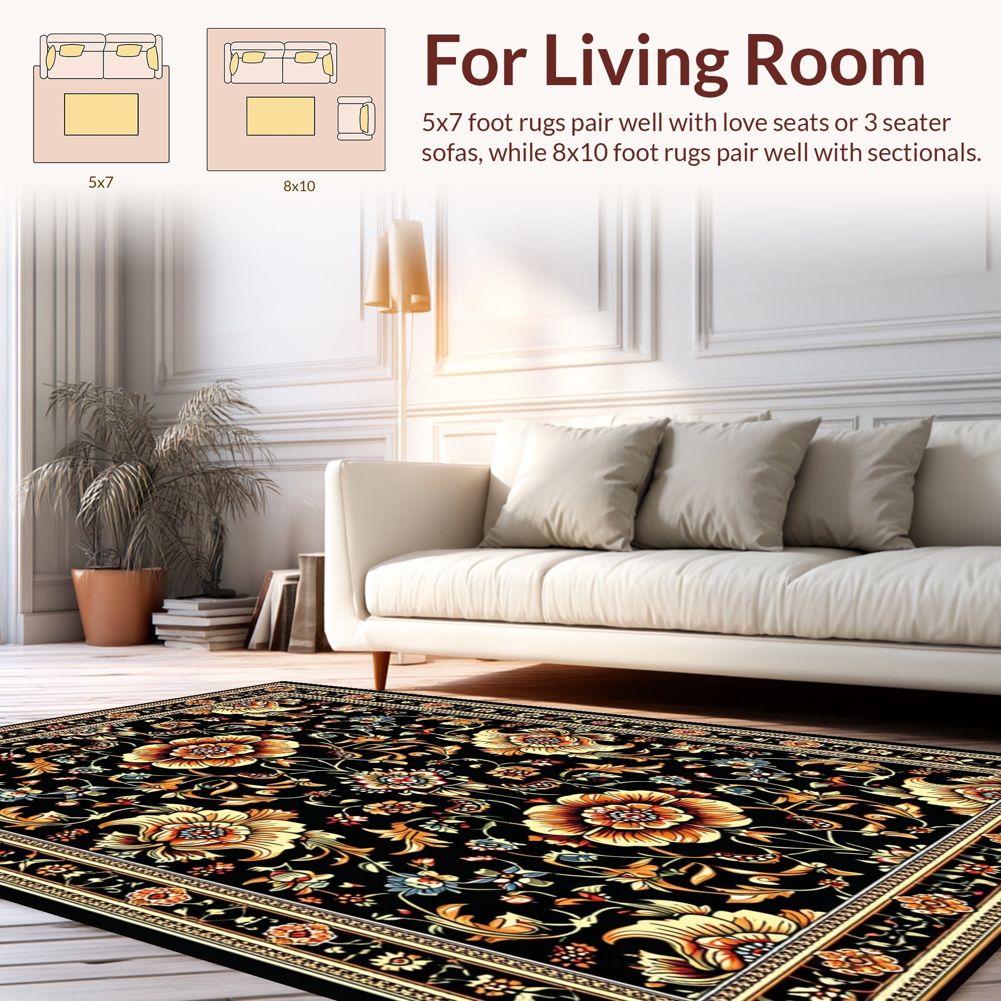 Ultra Soft Area Rug, Non Slip, Stain Resistant, Washable Area Rugs for Living Room, Bedroom, Elegant Floral Non-Slip Living Room Rug(Black) Overview: