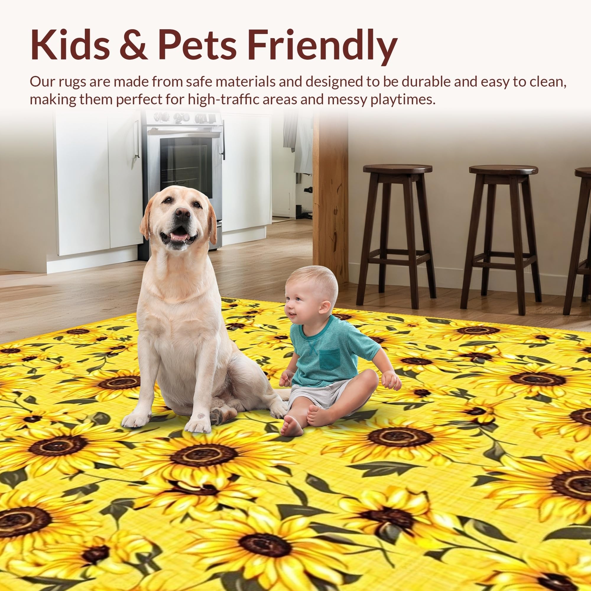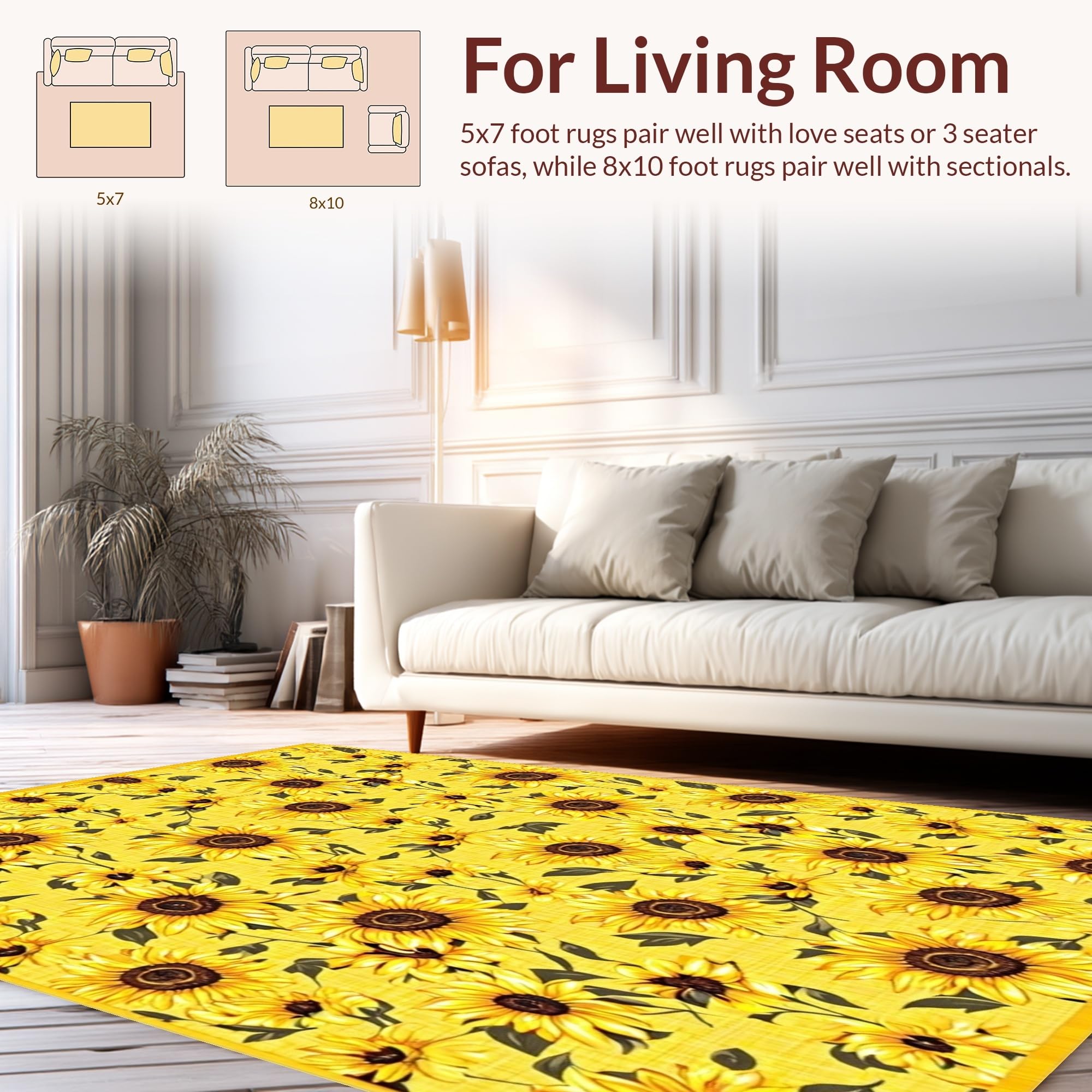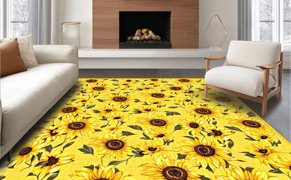 Ultra Soft Area Rug, Non Slip, Stain Resistant, Washable Area Rugs for Living Room, Bedroom, Elegant Floral Rustic Design Concept(Yellow) Overview: