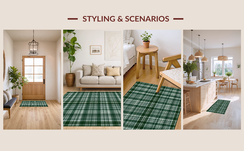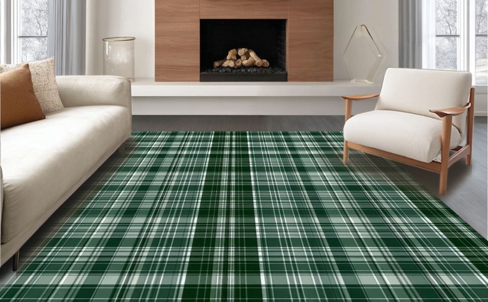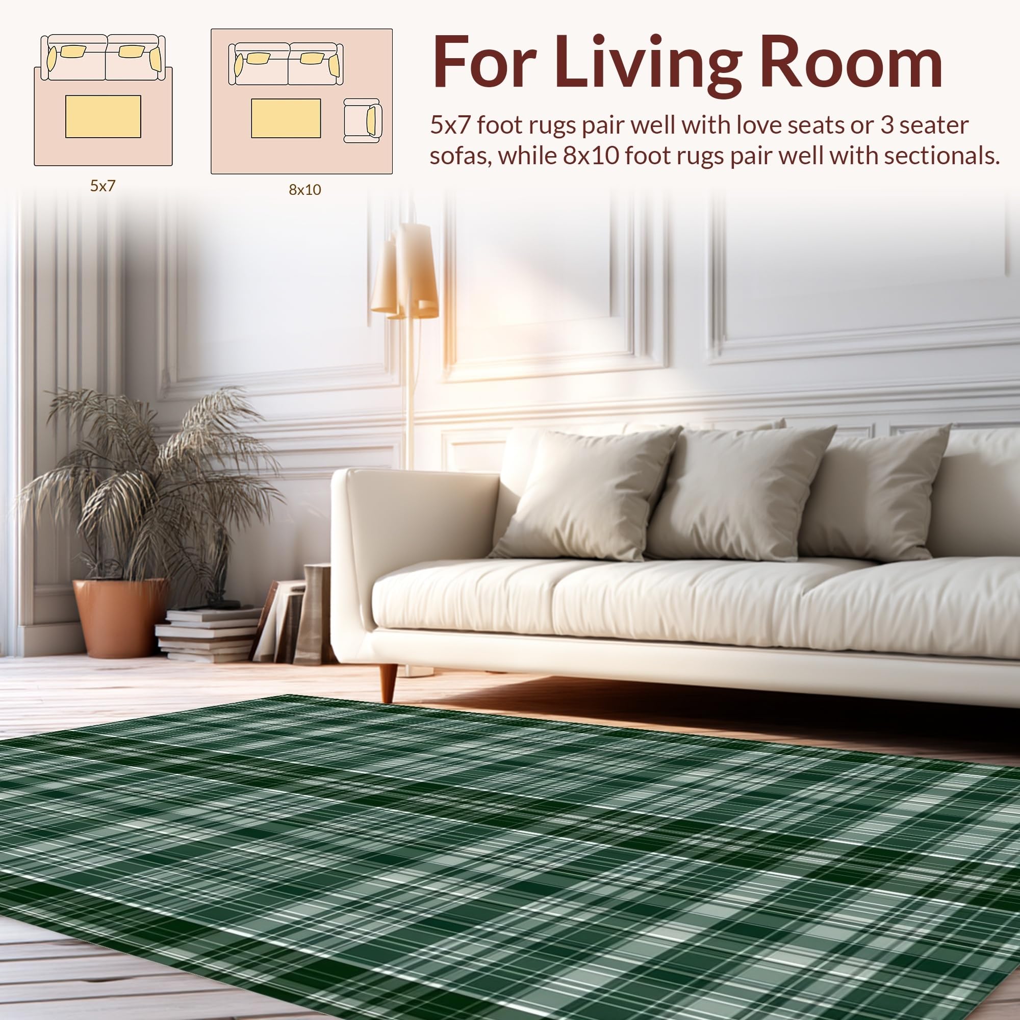 Ultra Soft Area Rug, Non Slip, Stain Resistant, Washable Area Rugs for Living Room, Bedroom, Elegant Forest Green Striped Texture(Green) Overview: