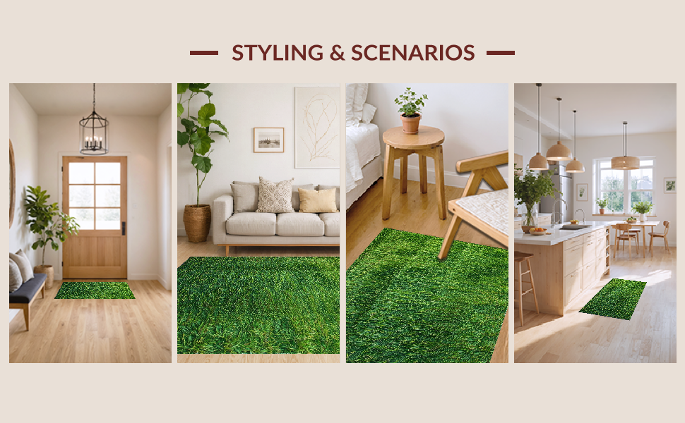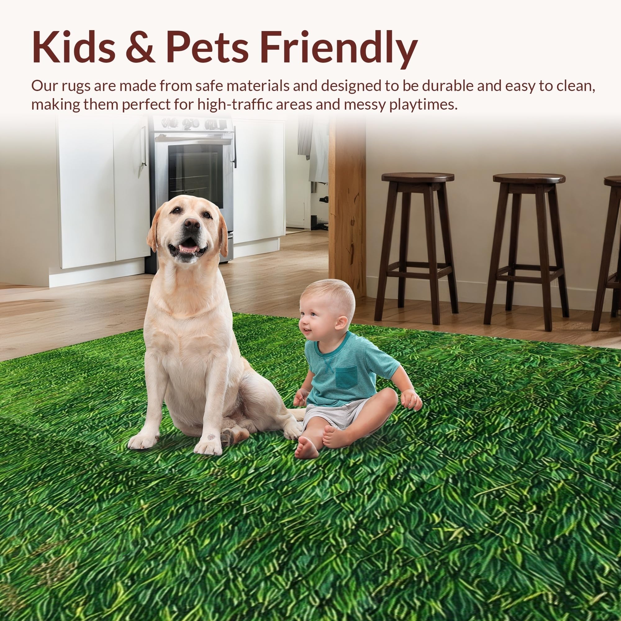 Ultra Soft Area Rug, Non Slip, Stain Resistant, Washable Area Rugs for Living Room, Bedroom, Elegant Four-Tone Natural Landscape(Green) Overview: