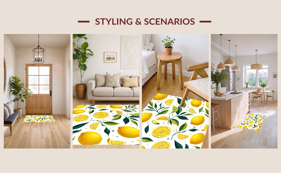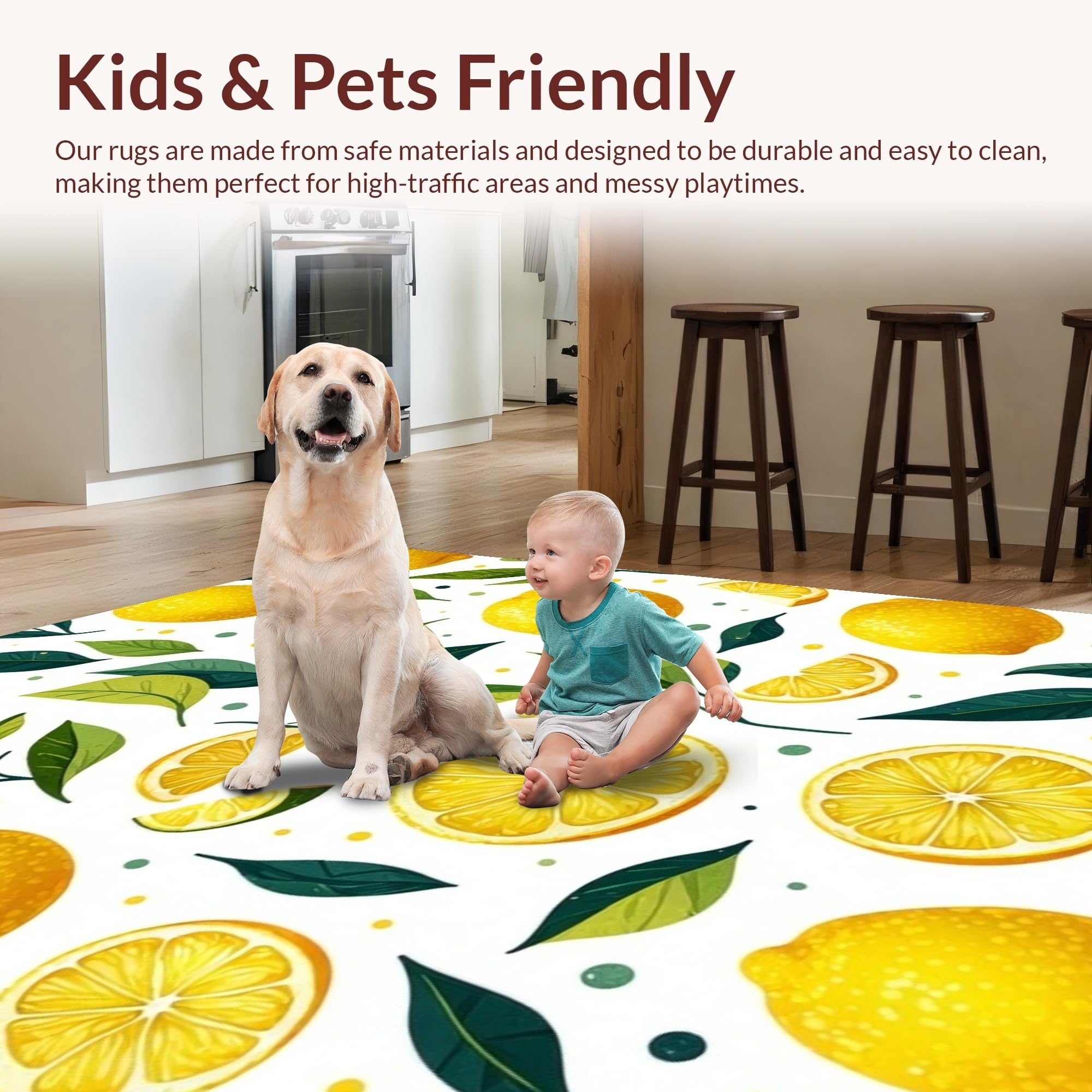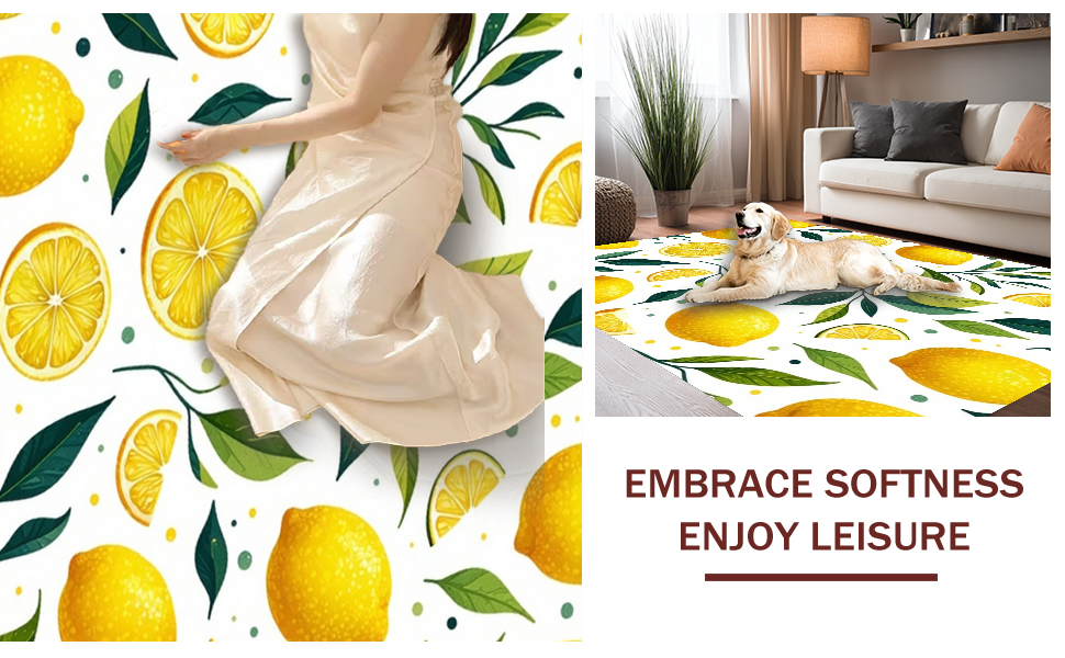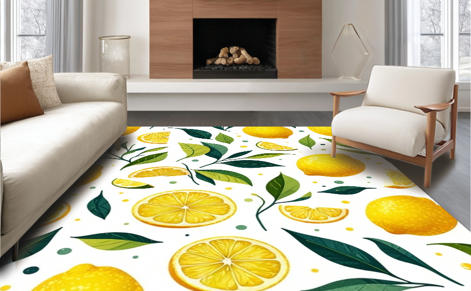 Ultra Soft Area Rug, Non Slip, Stain Resistant, Washable Area Rugs for Living Room, Bedroom, Elegant Fresh Citrus Arrangement(Yellow) Overview: