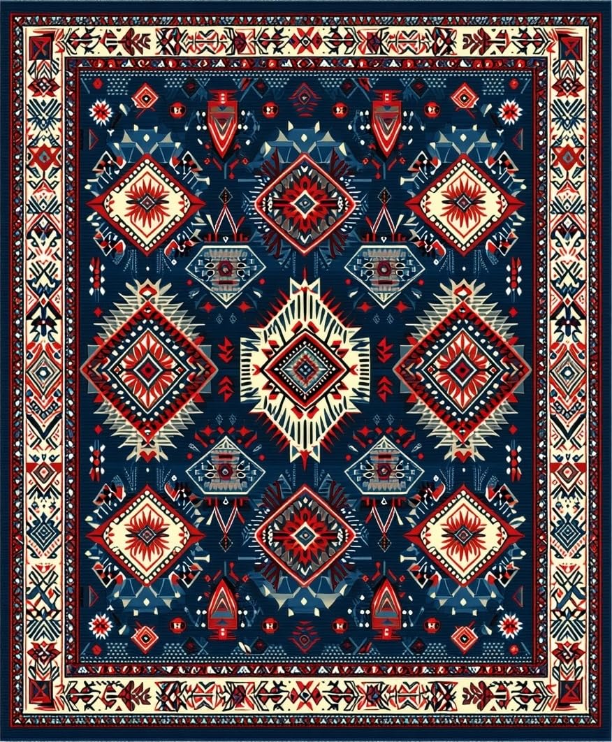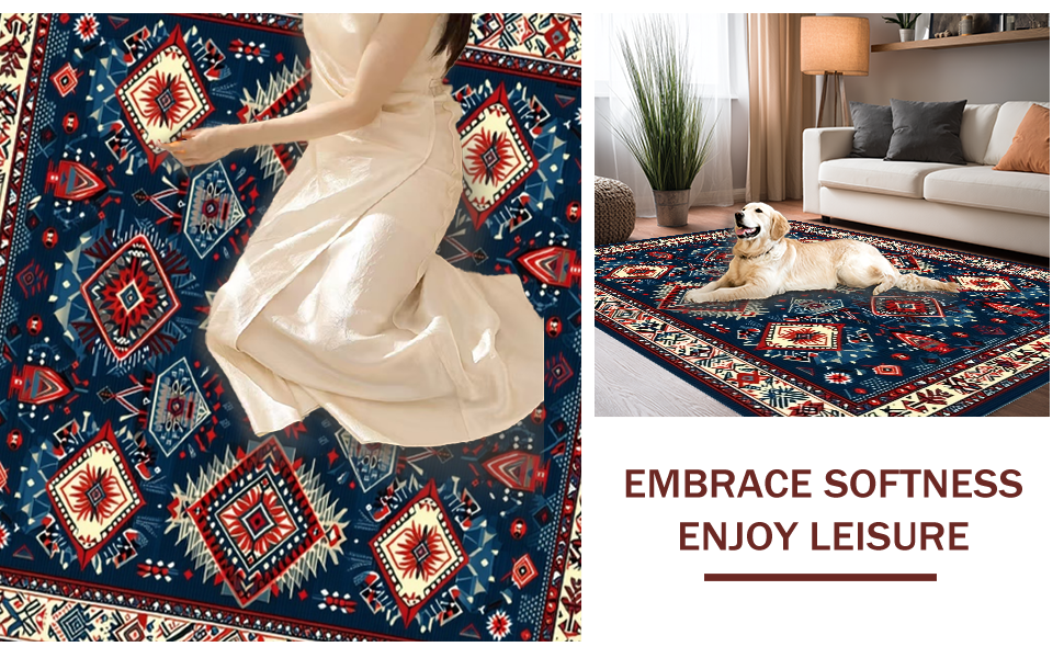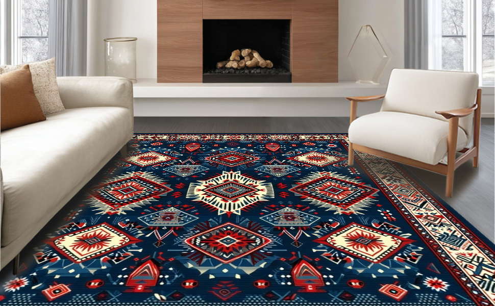 Ultra Soft Area Rug, Non Slip, Stain Resistant, Washable Area Rugs for Living Room, Bedroom, Elegant Fringe Textured Motif(Blue) Overview: