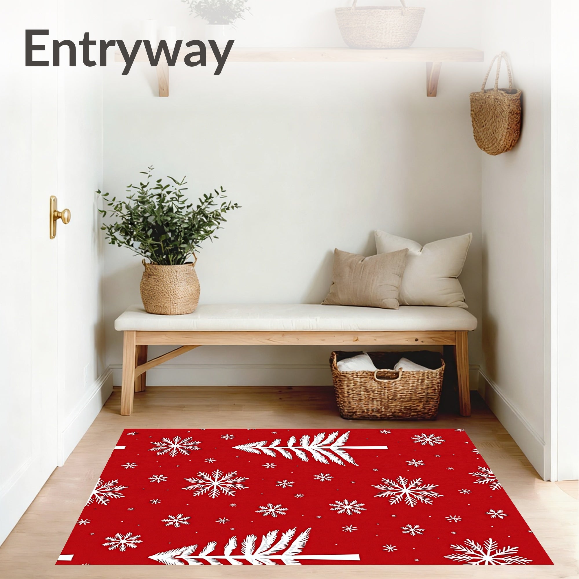Flatwoven High Traffic Area Rug, Elegant Frosty Pinewood Celebration Design, Non Slip, Stain Resistant, Washable Area Rugs for Living Room, Bedroom (Red) Overview: