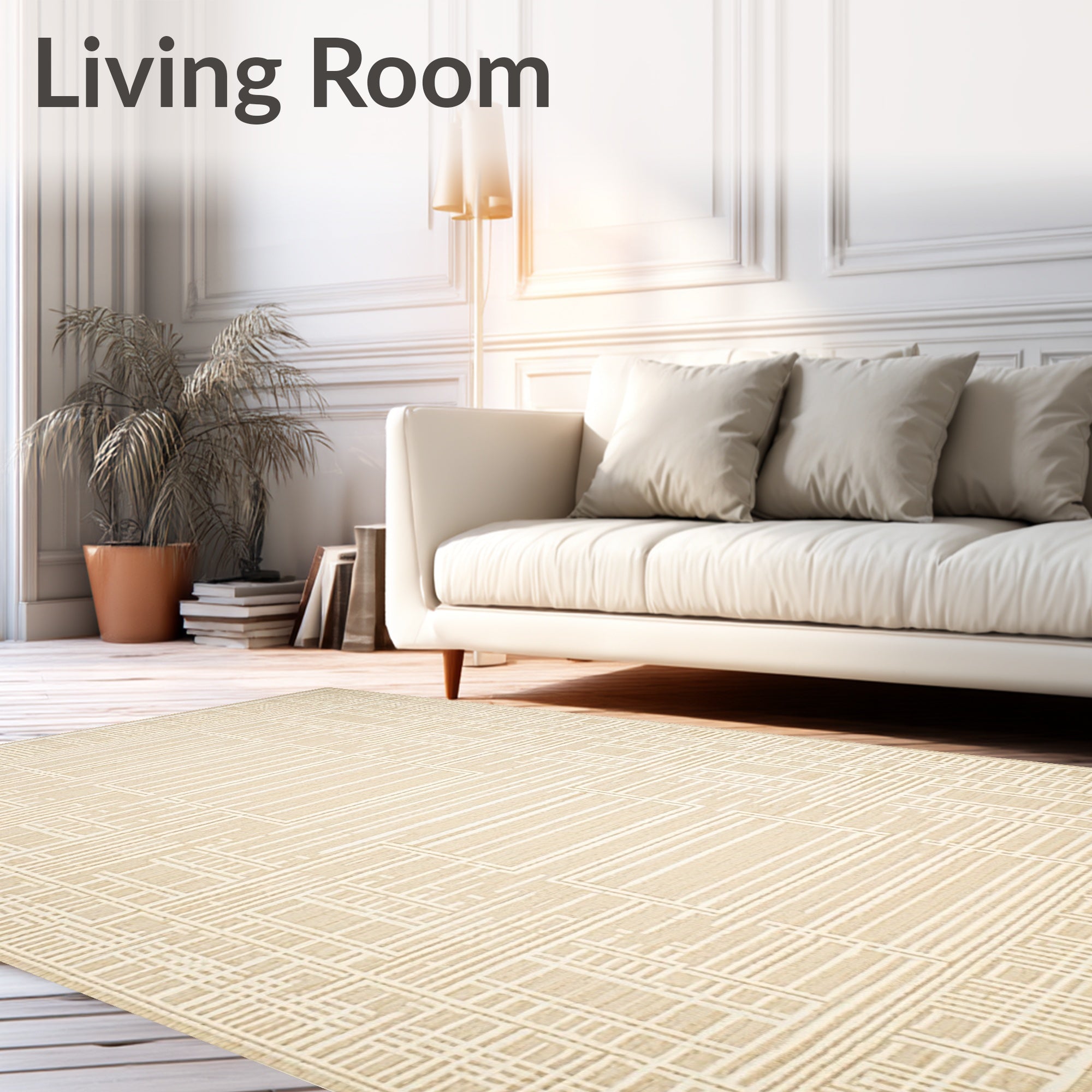 Ultra Soft Area Rug, Non Slip, Stain Resistant, Washable Area Rugs for Living Room, Bedroom, Elegant Geometric Area Modern Beige(Beige) Overview: