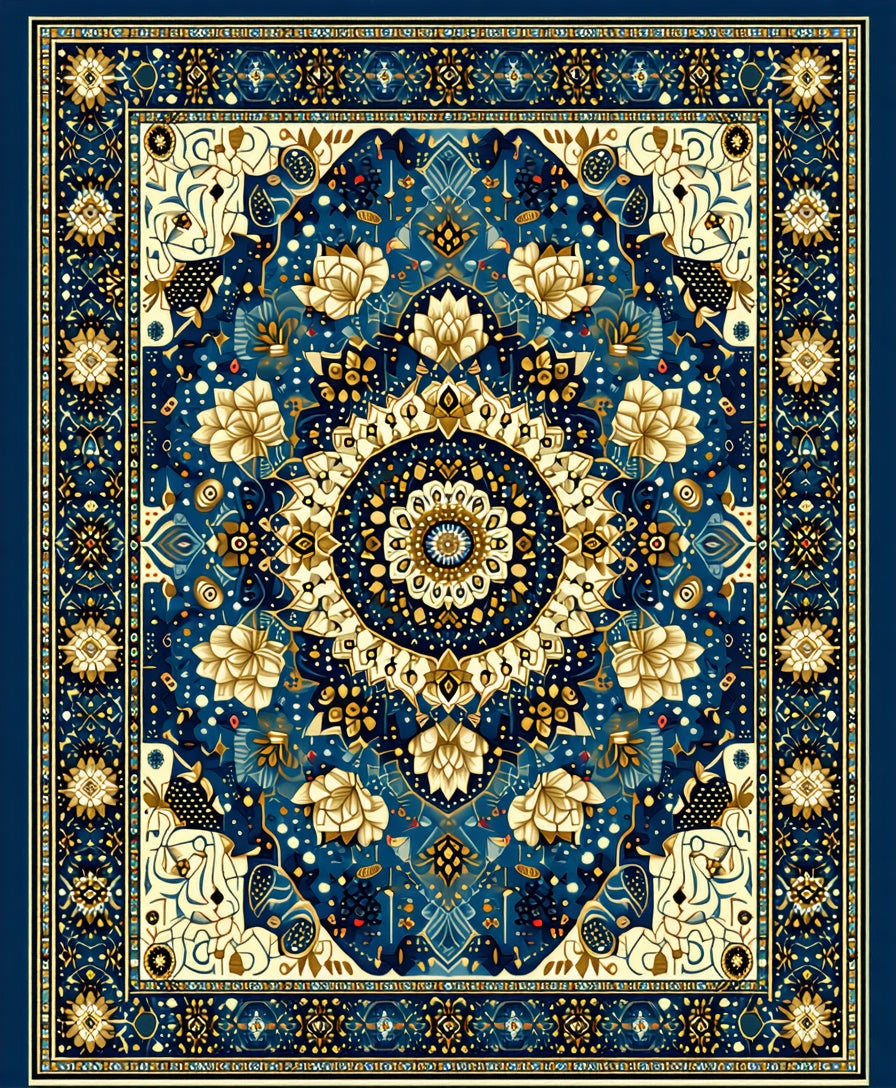 Elegant Geometric Area with Intricate Design in Blue and Gold(Blue)