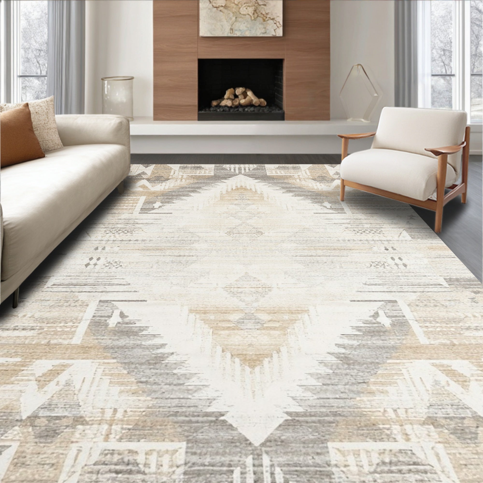 Ultra Soft Area Rug, Non Slip, Stain Resistant, Washable Area Rugs for Living Room, Bedroom, Elegant Geometric Beige Area with Distressed Finish and Unique(Beige) Overview: