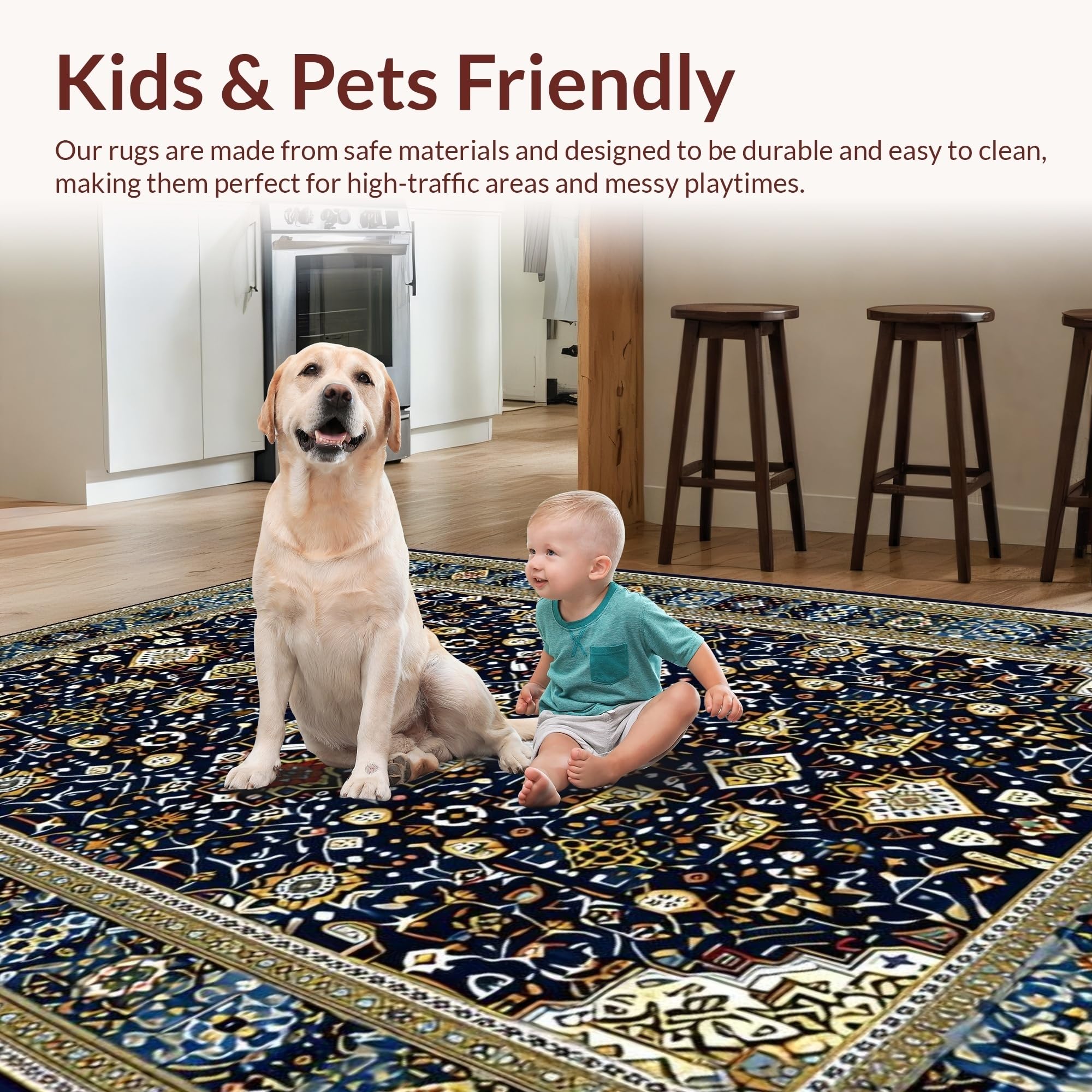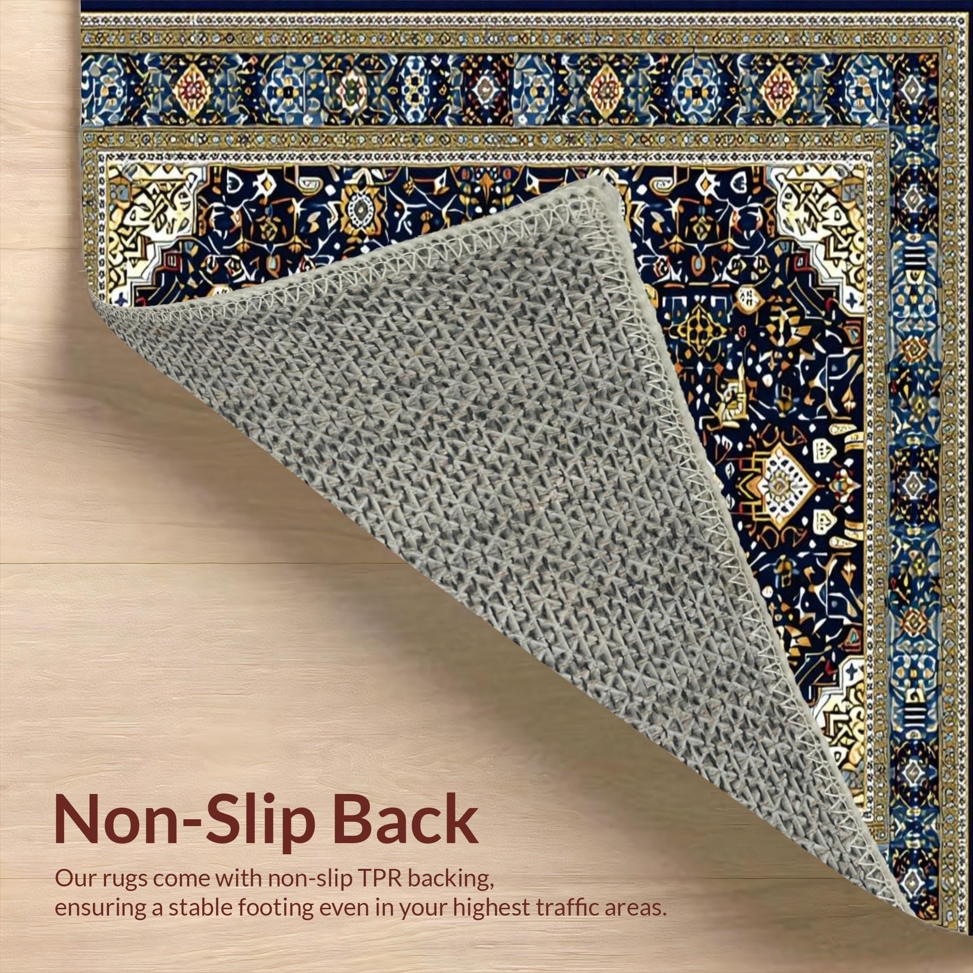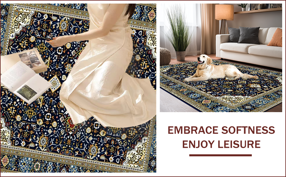 Ultra Soft Area Rug, Non Slip, Stain Resistant, Washable Area Rugs for Living Room, Bedroom, Elegant Geometric Blue Tones(Blue) Overview: