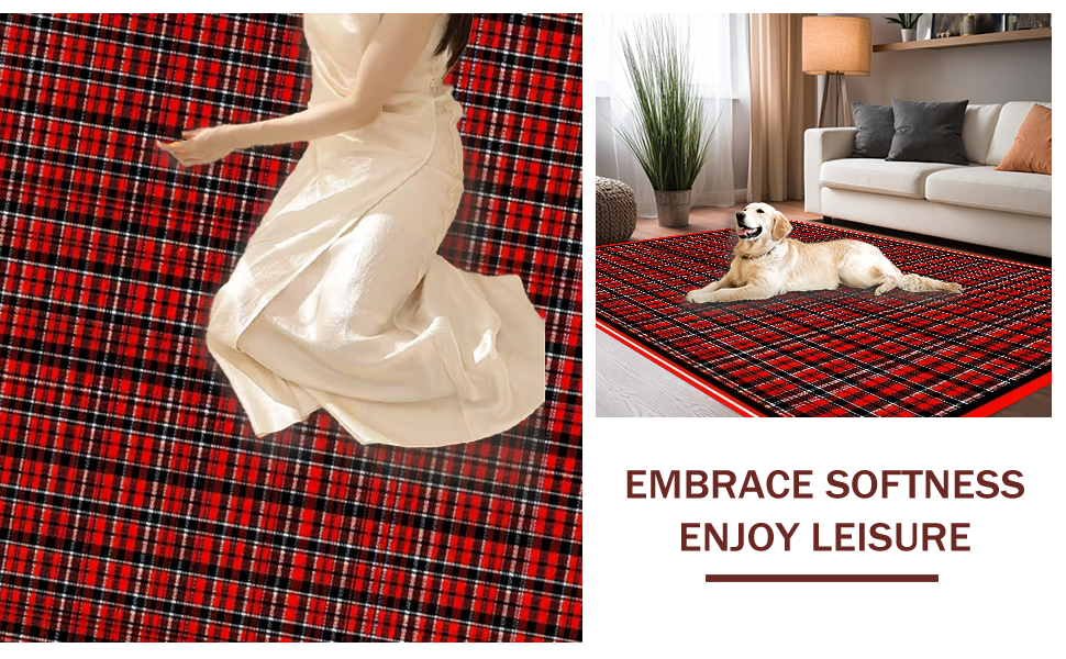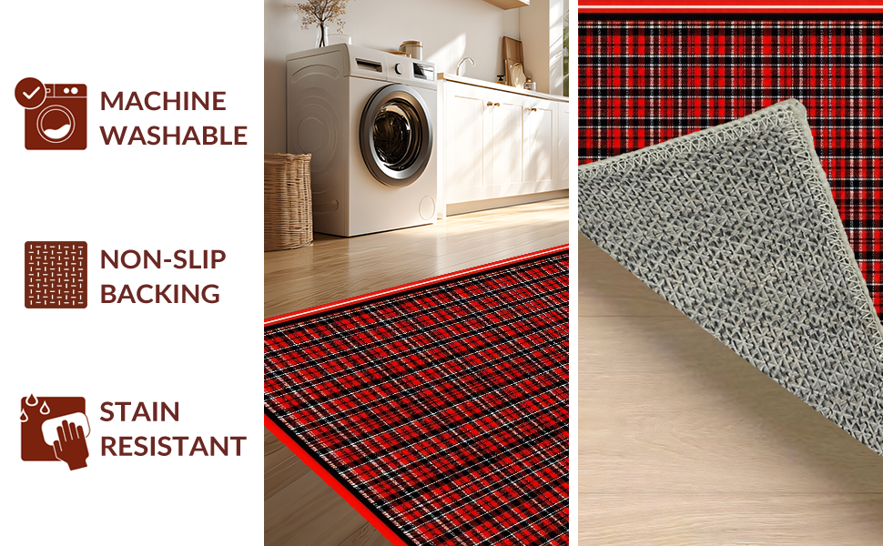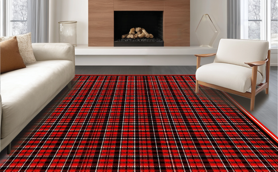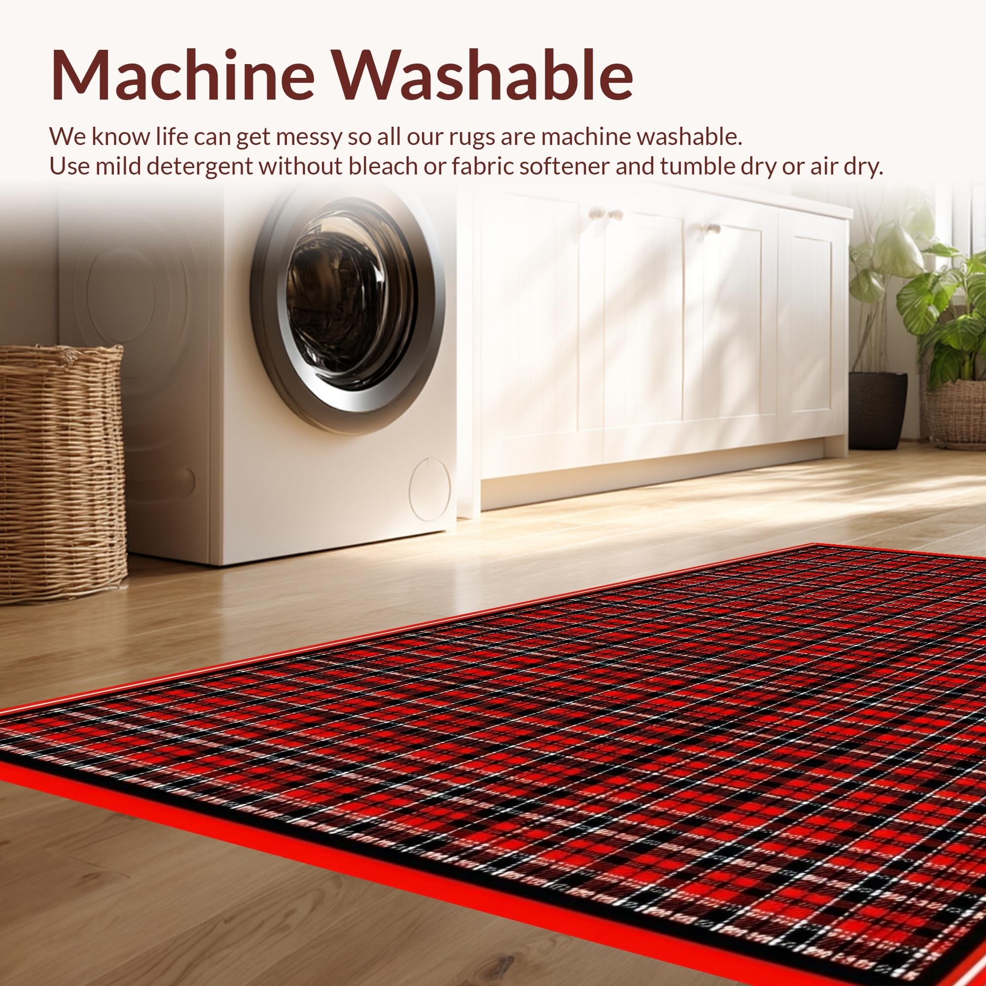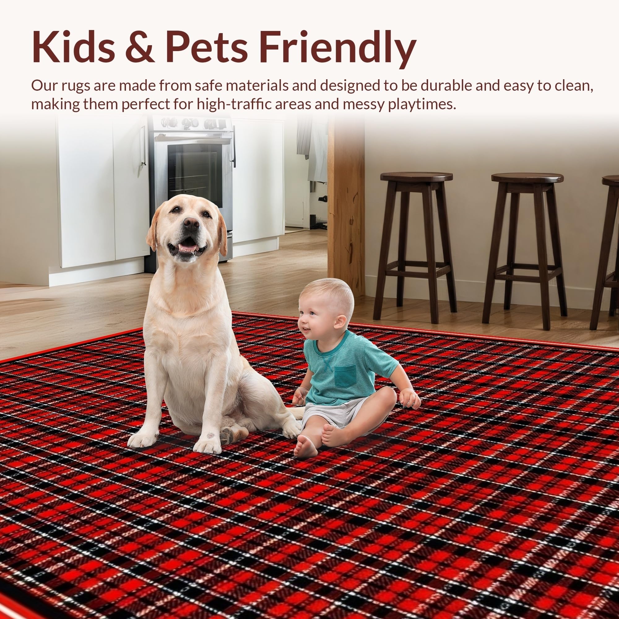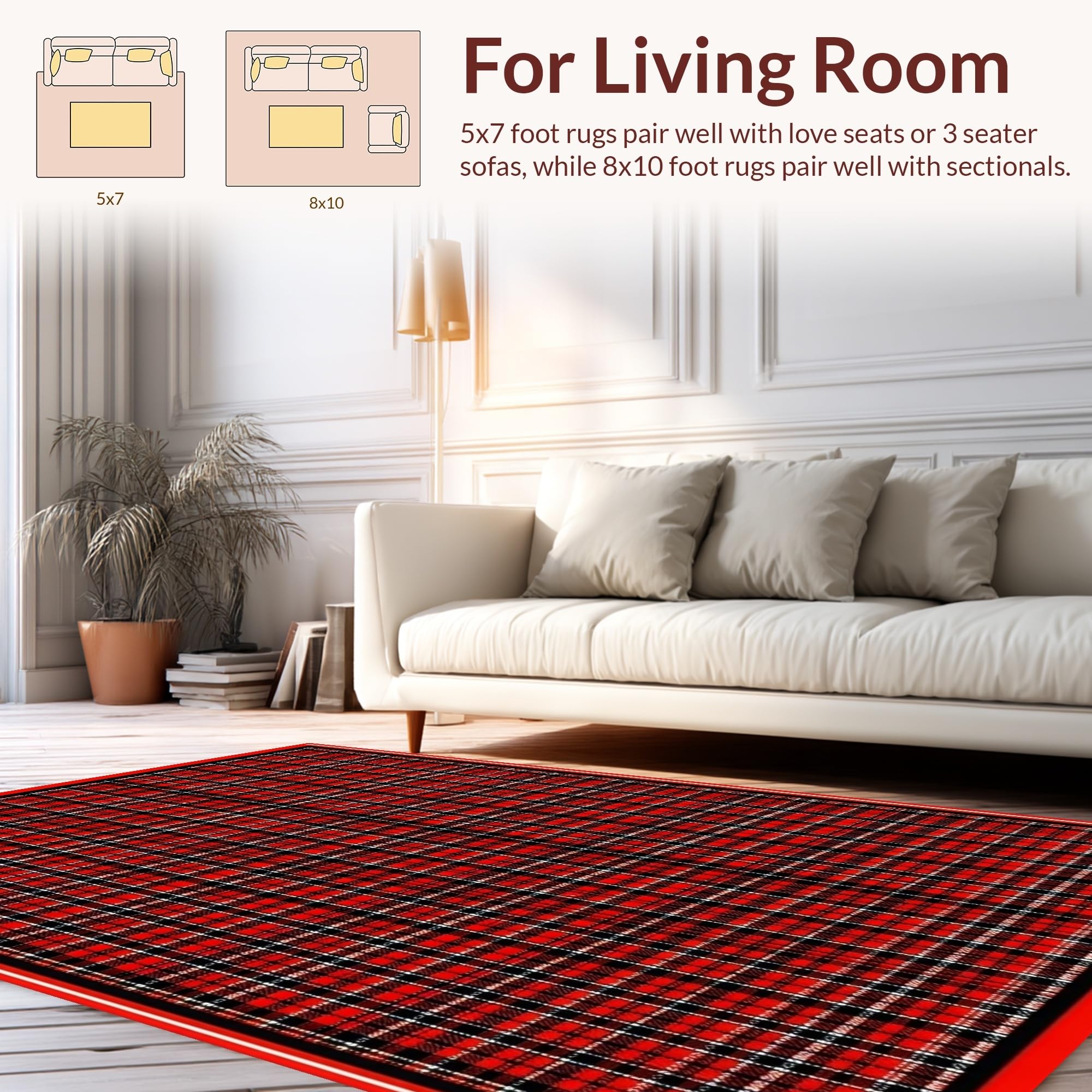 Ultra Soft Area Rug, Non Slip, Stain Resistant, Washable Area Rugs for Living Room, Bedroom, Elegant Geometric Checkers Motif(Red) Overview: