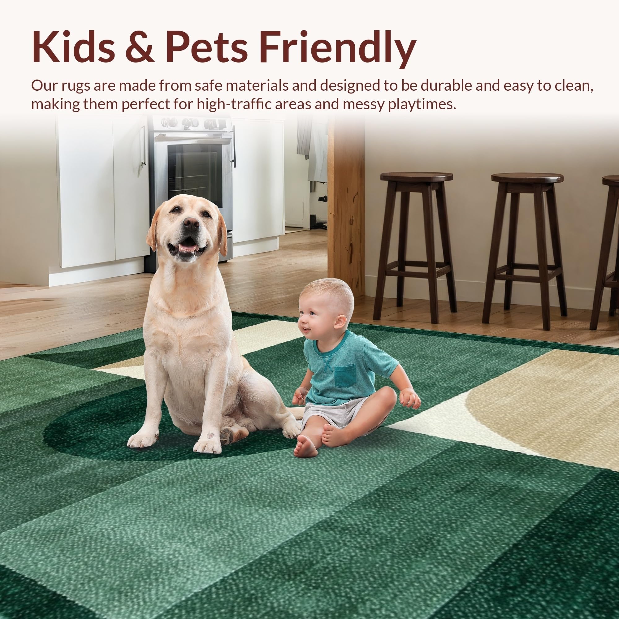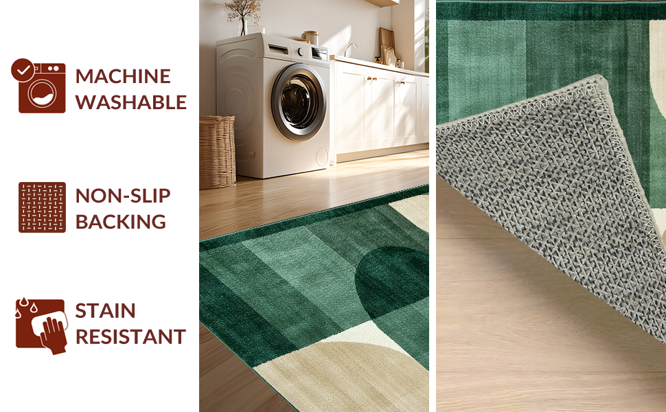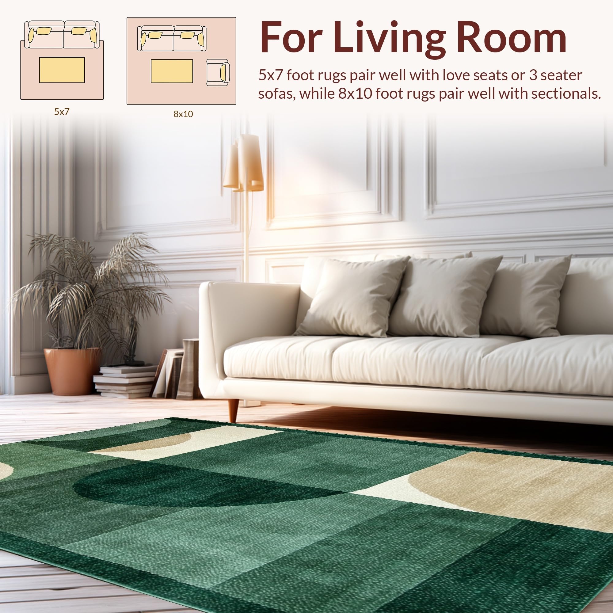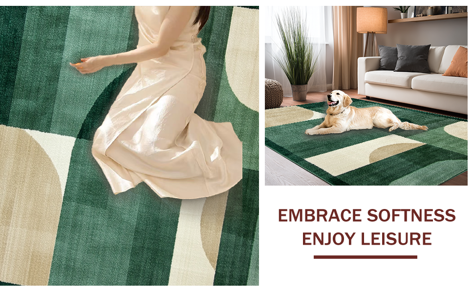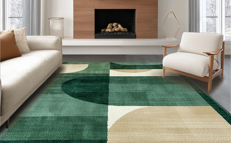 Ultra Soft Area Rug, Non Slip, Stain Resistant, Washable Area Rugs for Living Room, Bedroom, Elegant Geometric Coastal Aesthetic(Green) Overview: