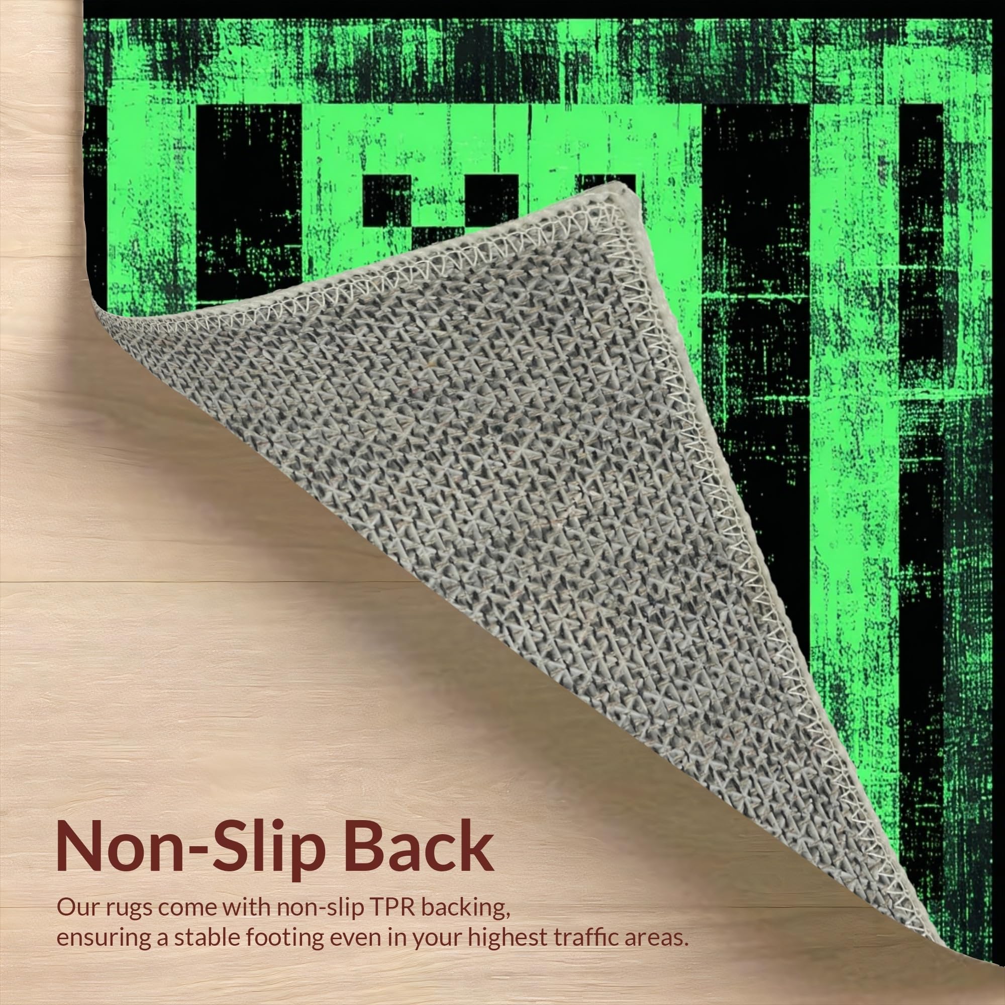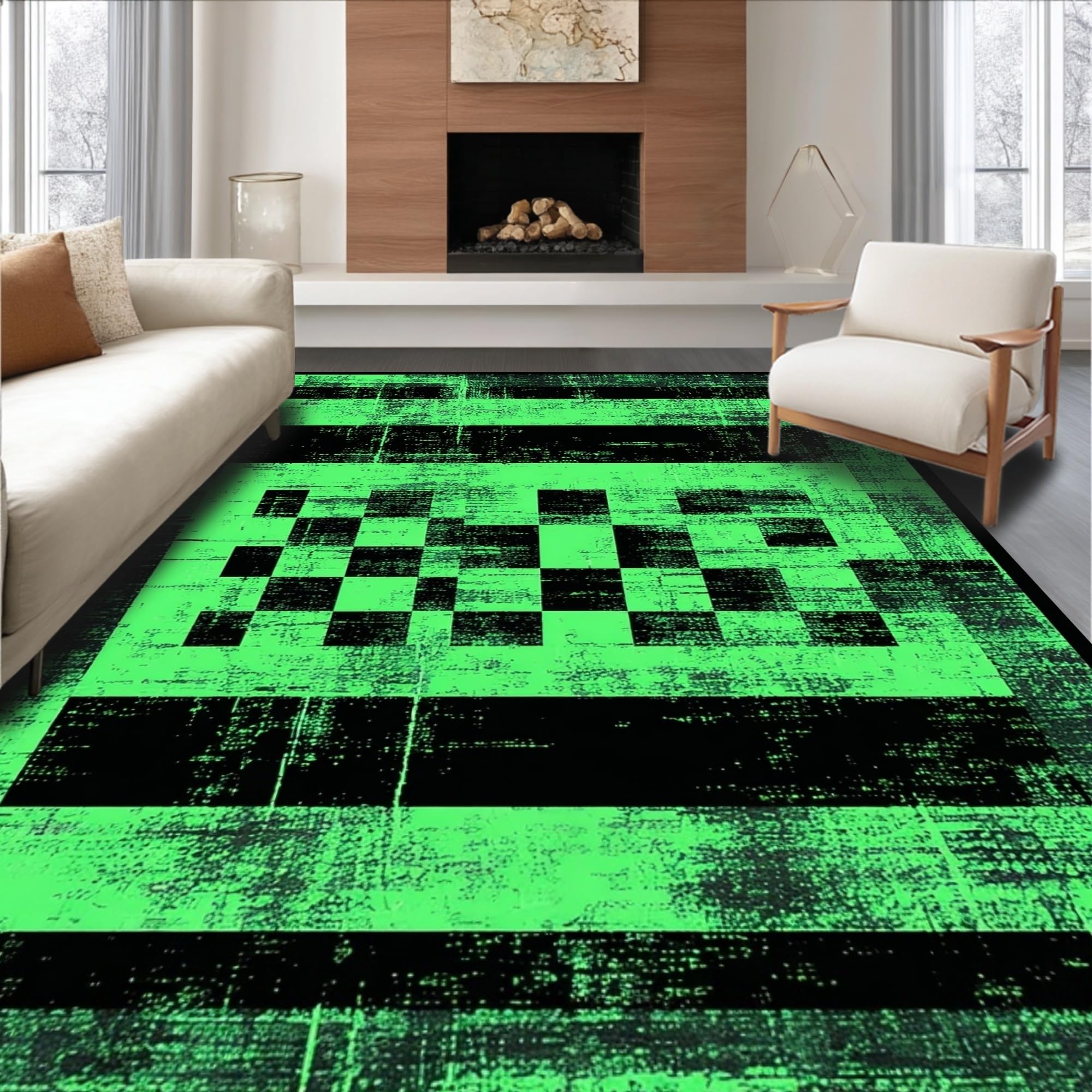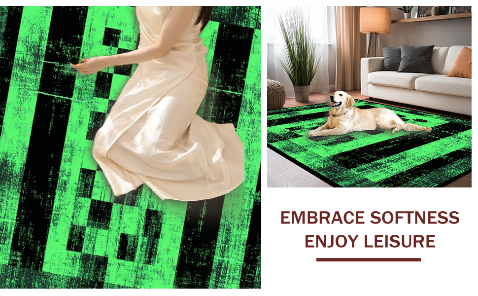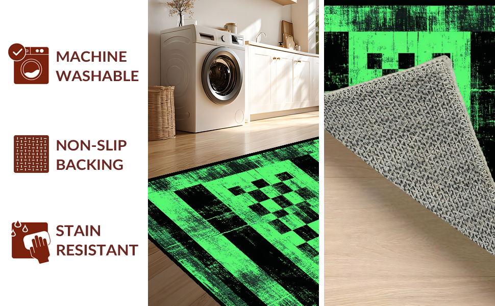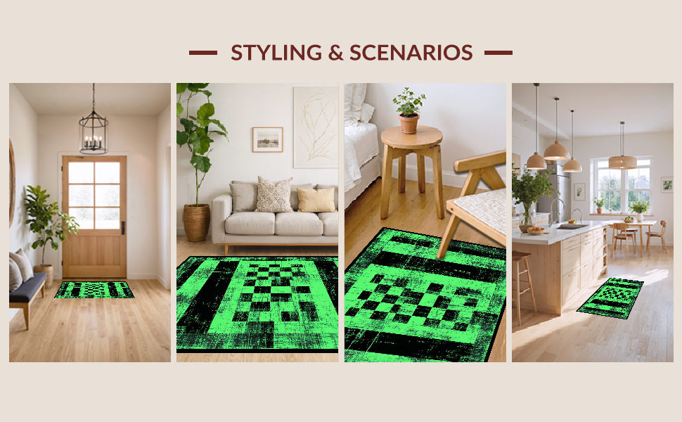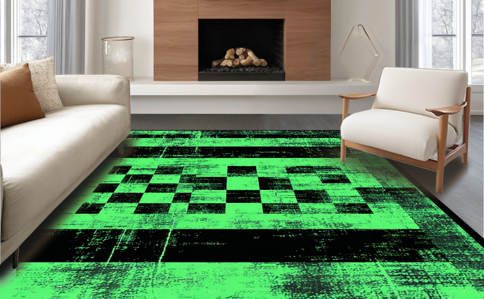 Ultra Soft Area Rug, Non Slip, Stain Resistant, Washable Area Rugs for Living Room, Bedroom, Elegant Geometric Faded Tiled Texture(Green) Overview: