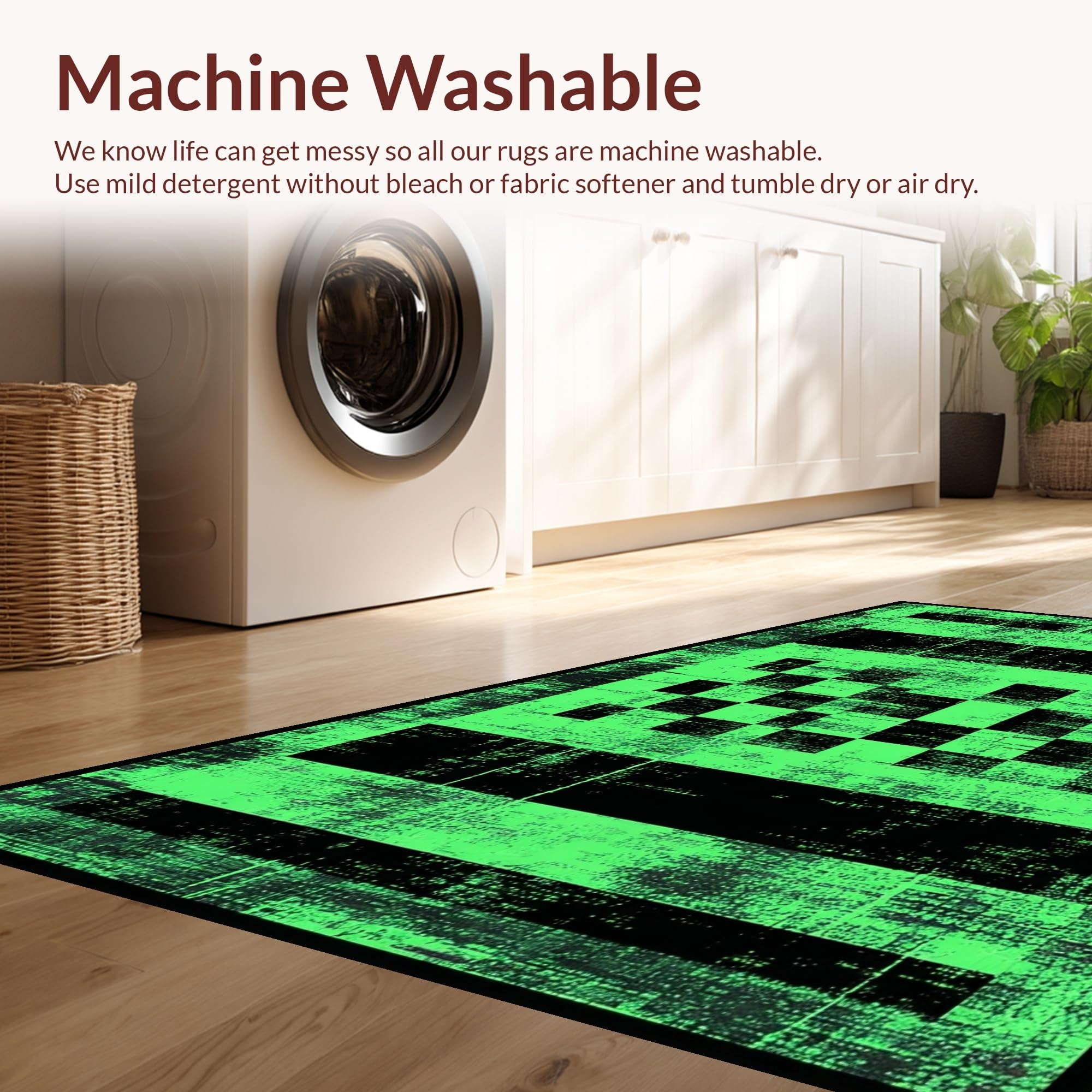 - Machine Washable: Our rugs can be easily thrown in the wash machine.