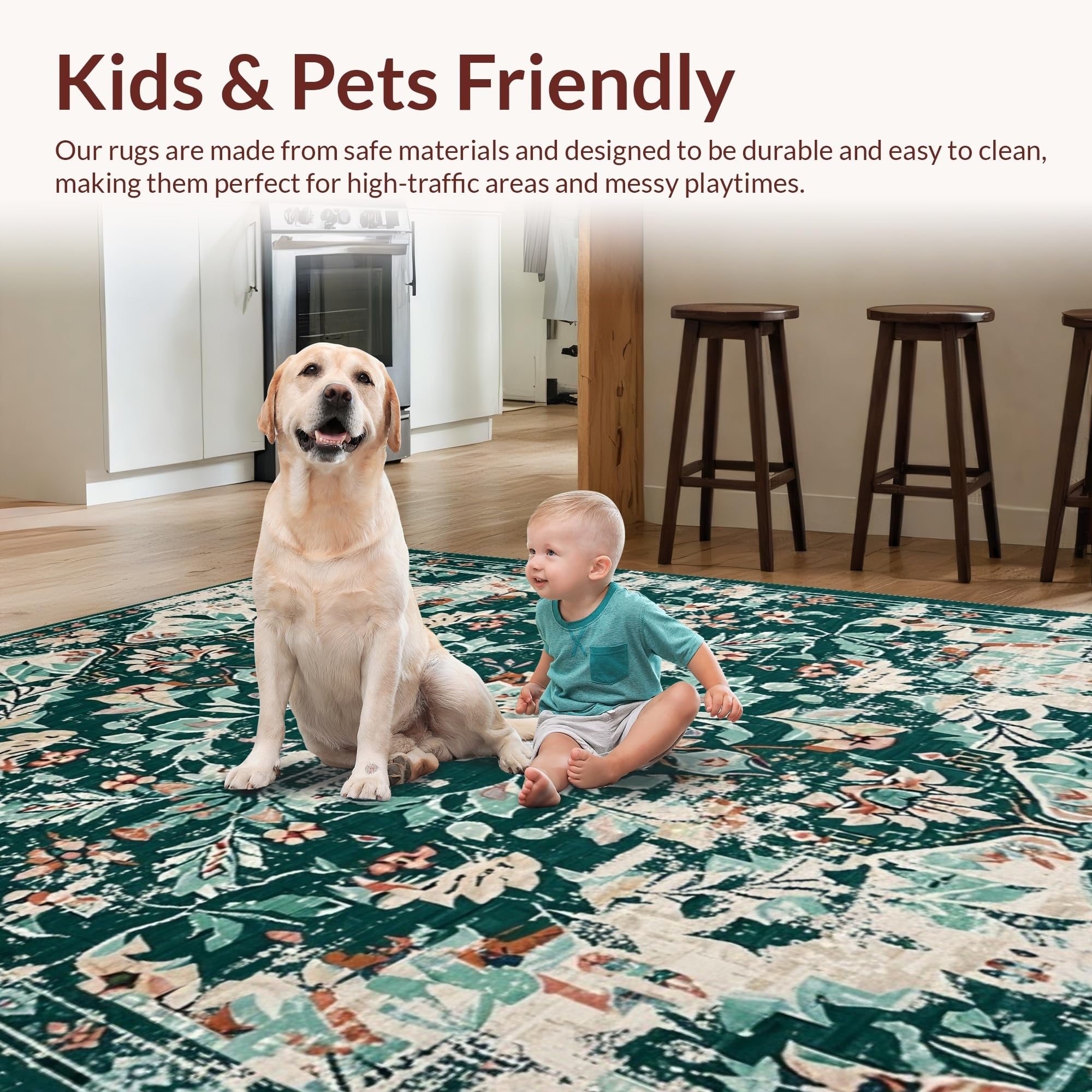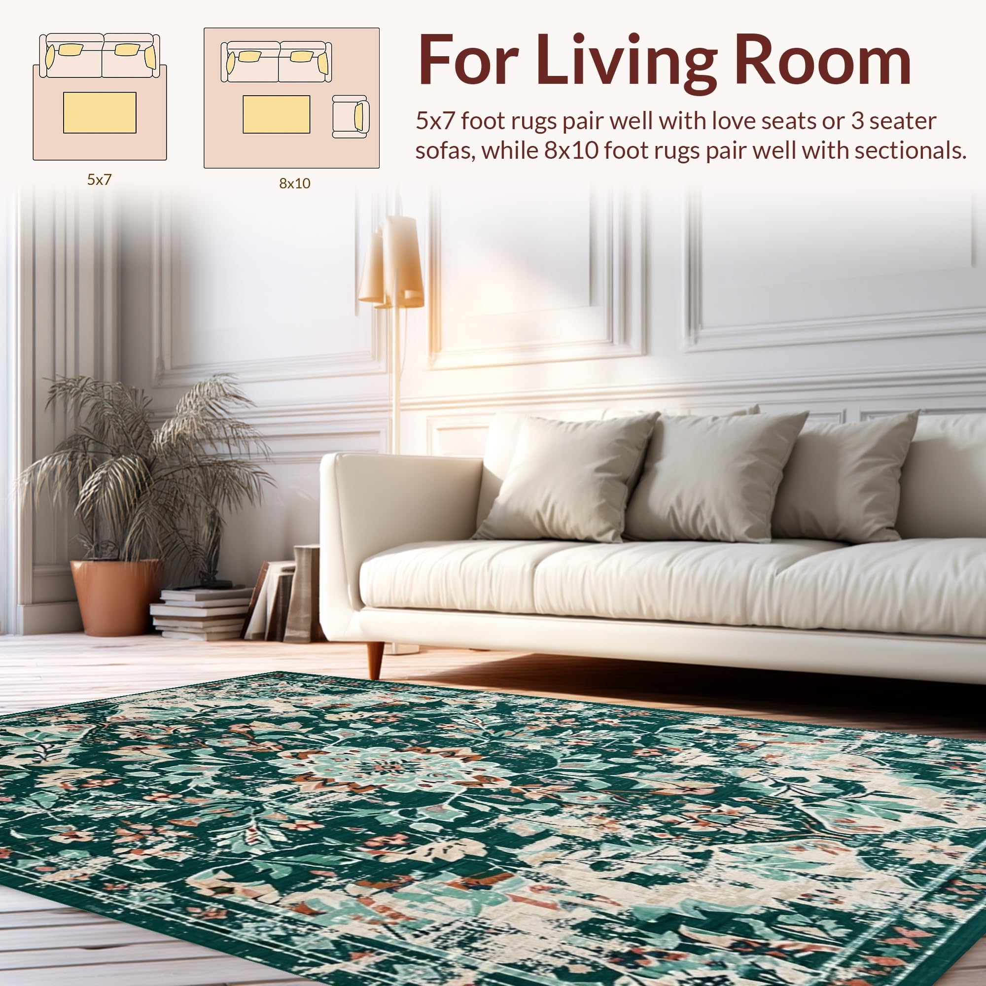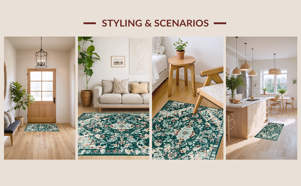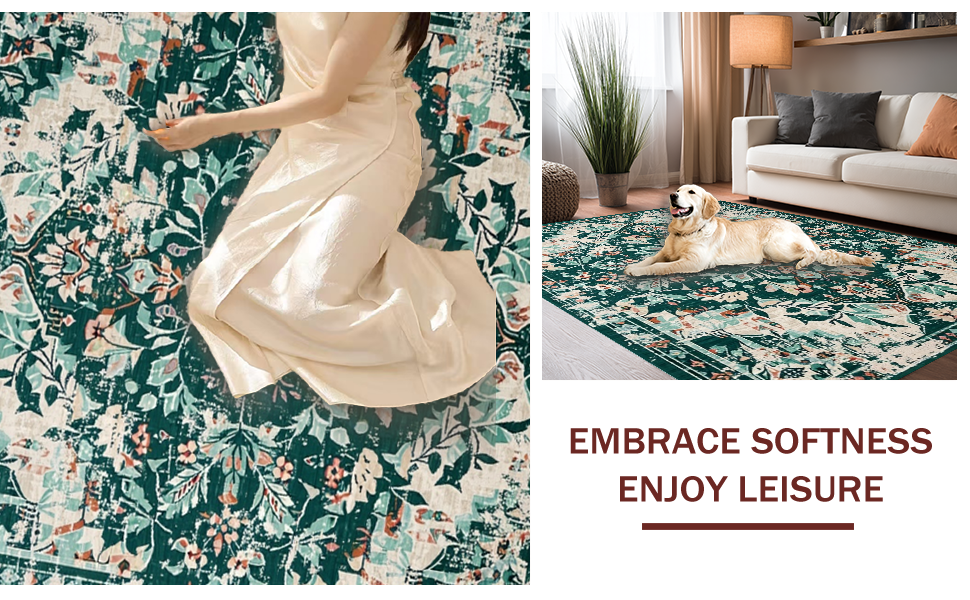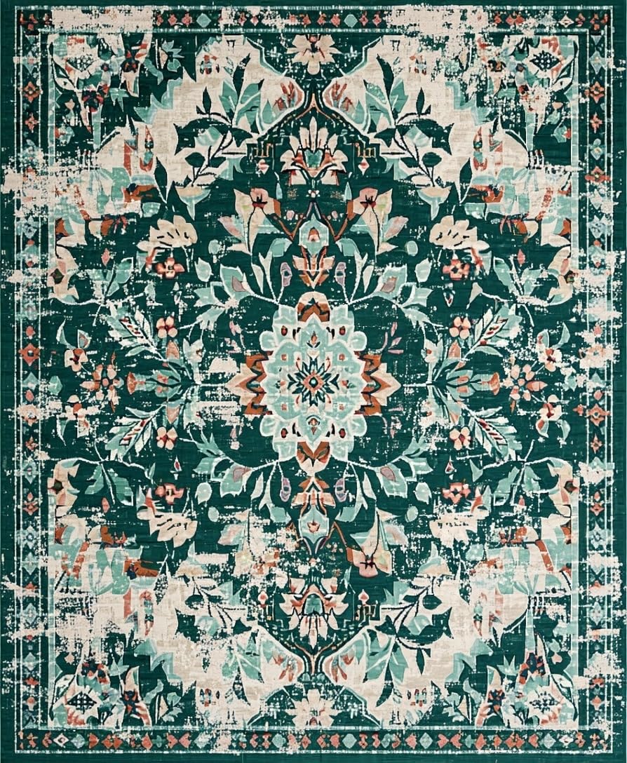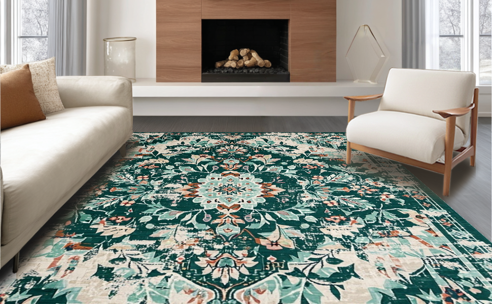 Ultra Soft Area Rug, Non Slip, Stain Resistant, Washable Area Rugs for Living Room, Bedroom, Elegant Geometric Patterned Charm(Green) Overview: