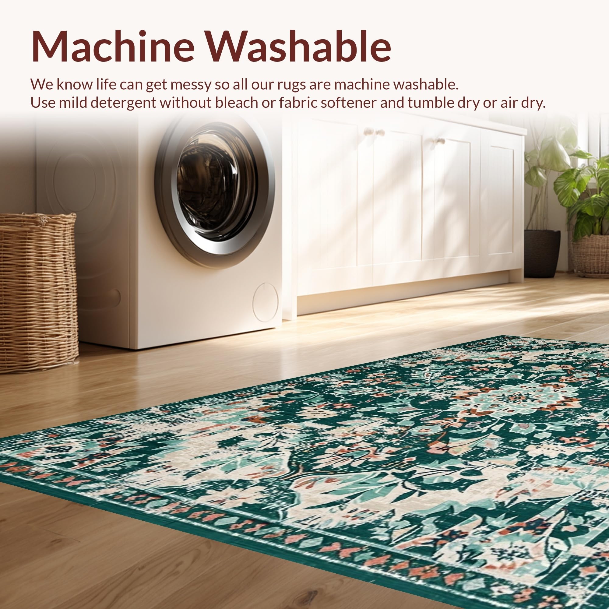 - Machine Washable: Our rugs can be easily thrown in the wash machine.