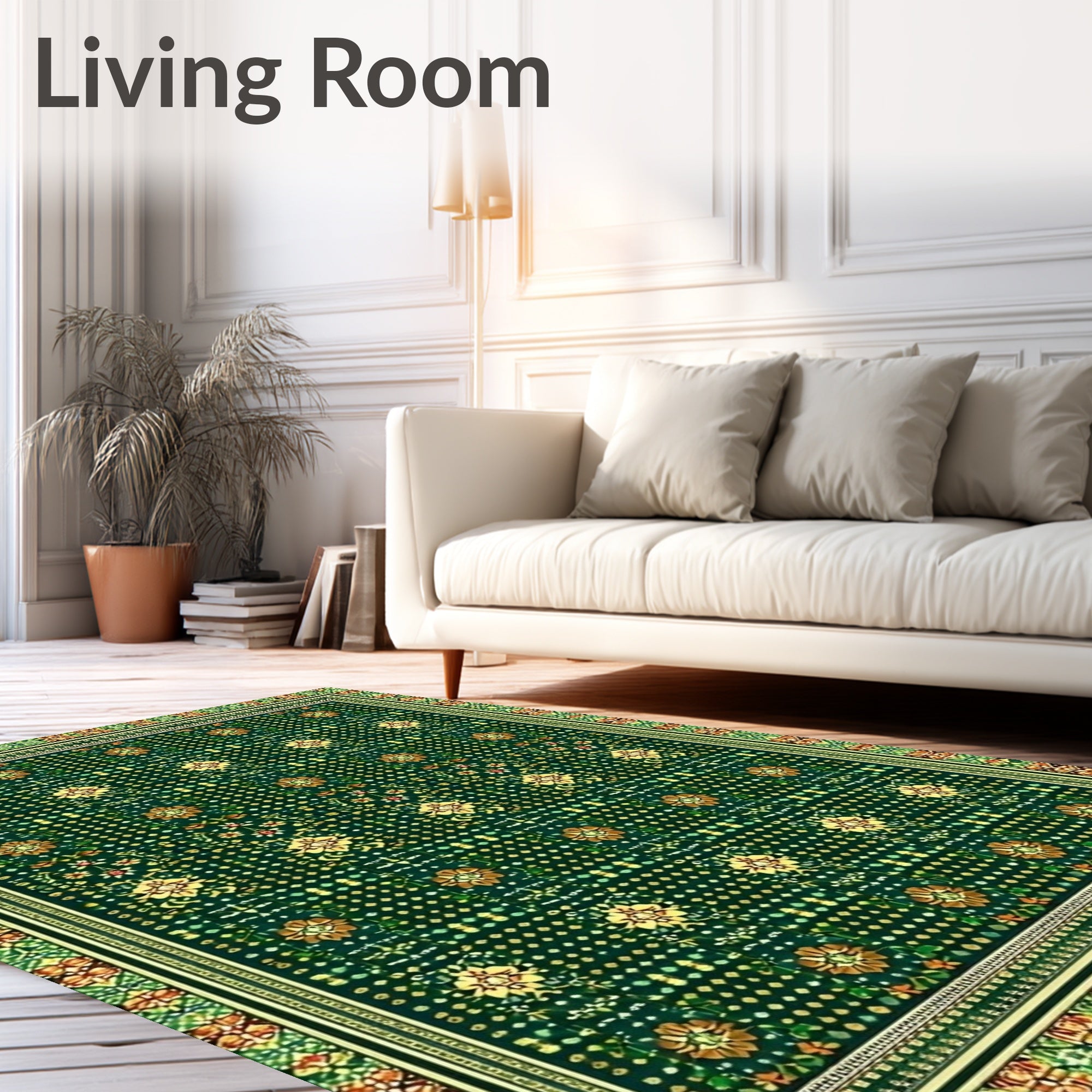 Ultra Soft Area Rug, Non Slip, Stain Resistant, Washable Area Rugs for Living Room, Bedroom, Elegant Geometric Spotted Area with Green and Gold Accents(Green) Overview: