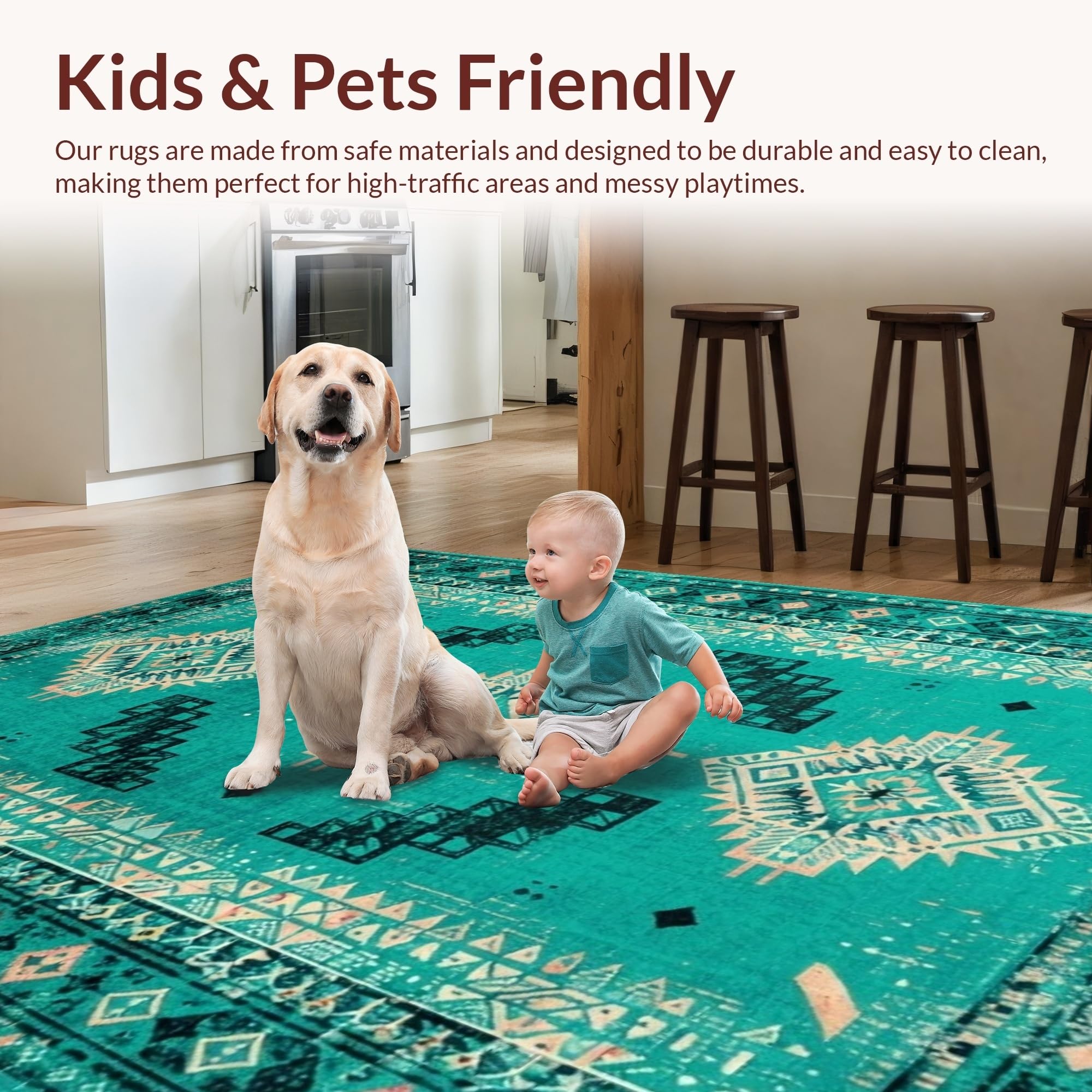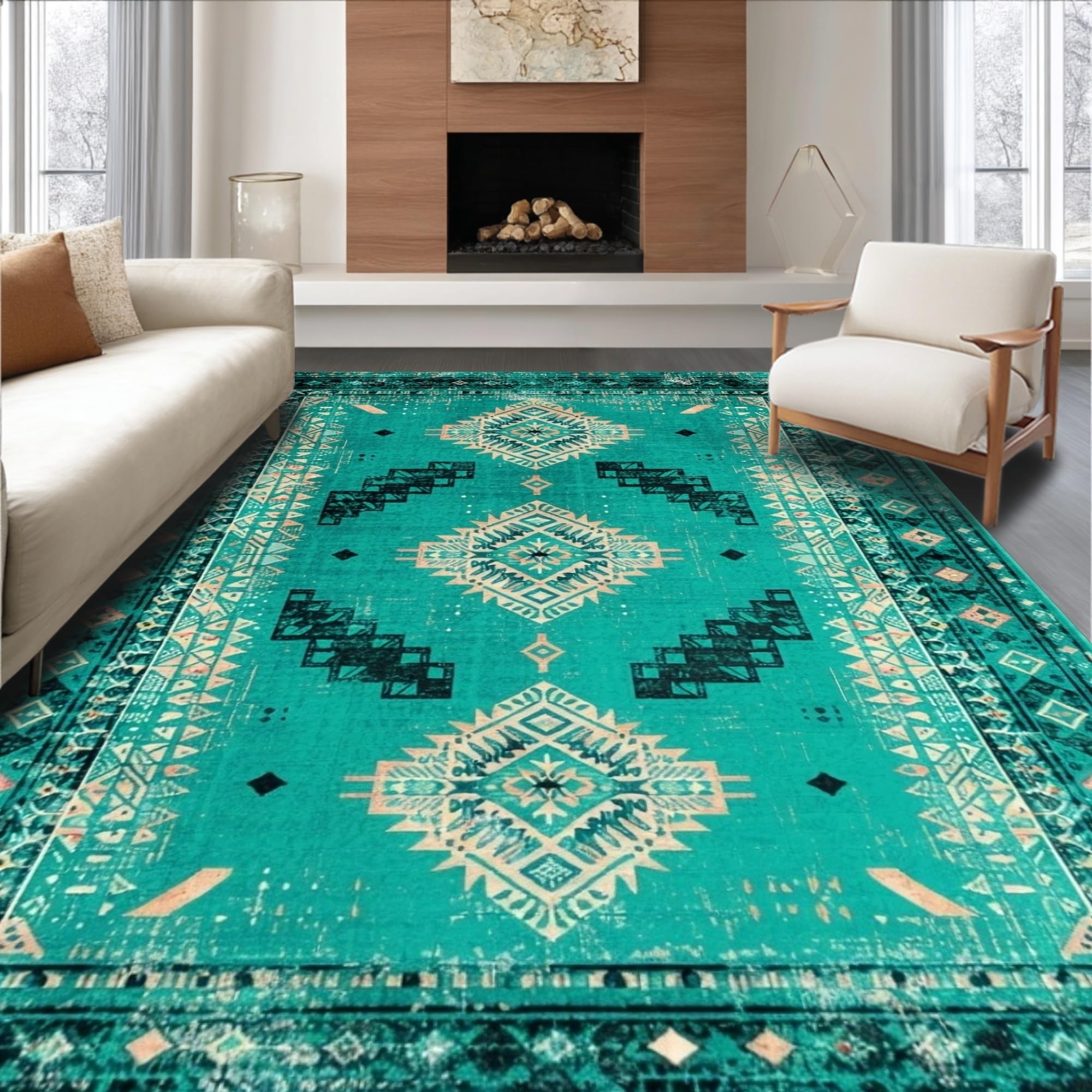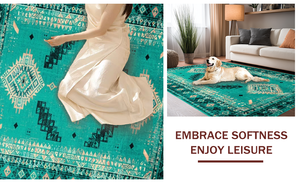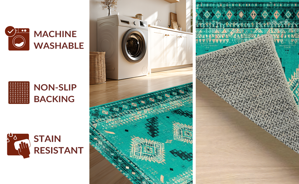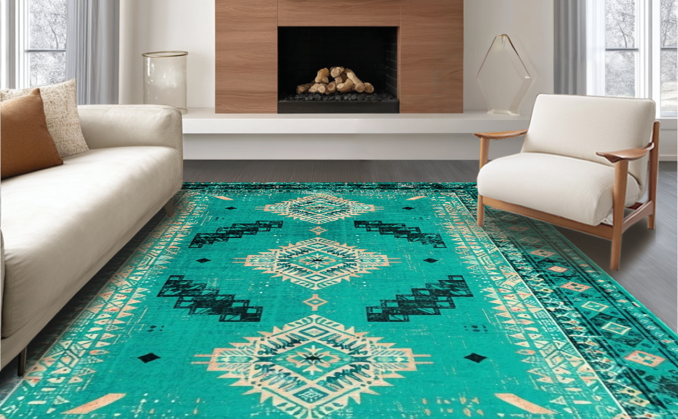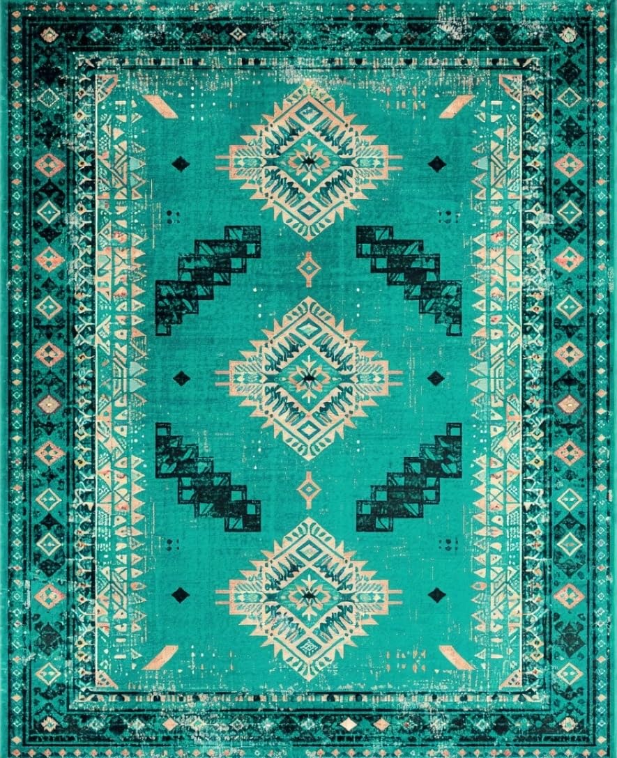 Ultra Soft Area Rug, Non Slip, Stain Resistant, Washable Area Rugs for Living Room, Bedroom, Elegant Geometric Teal Hues(Green) Overview: